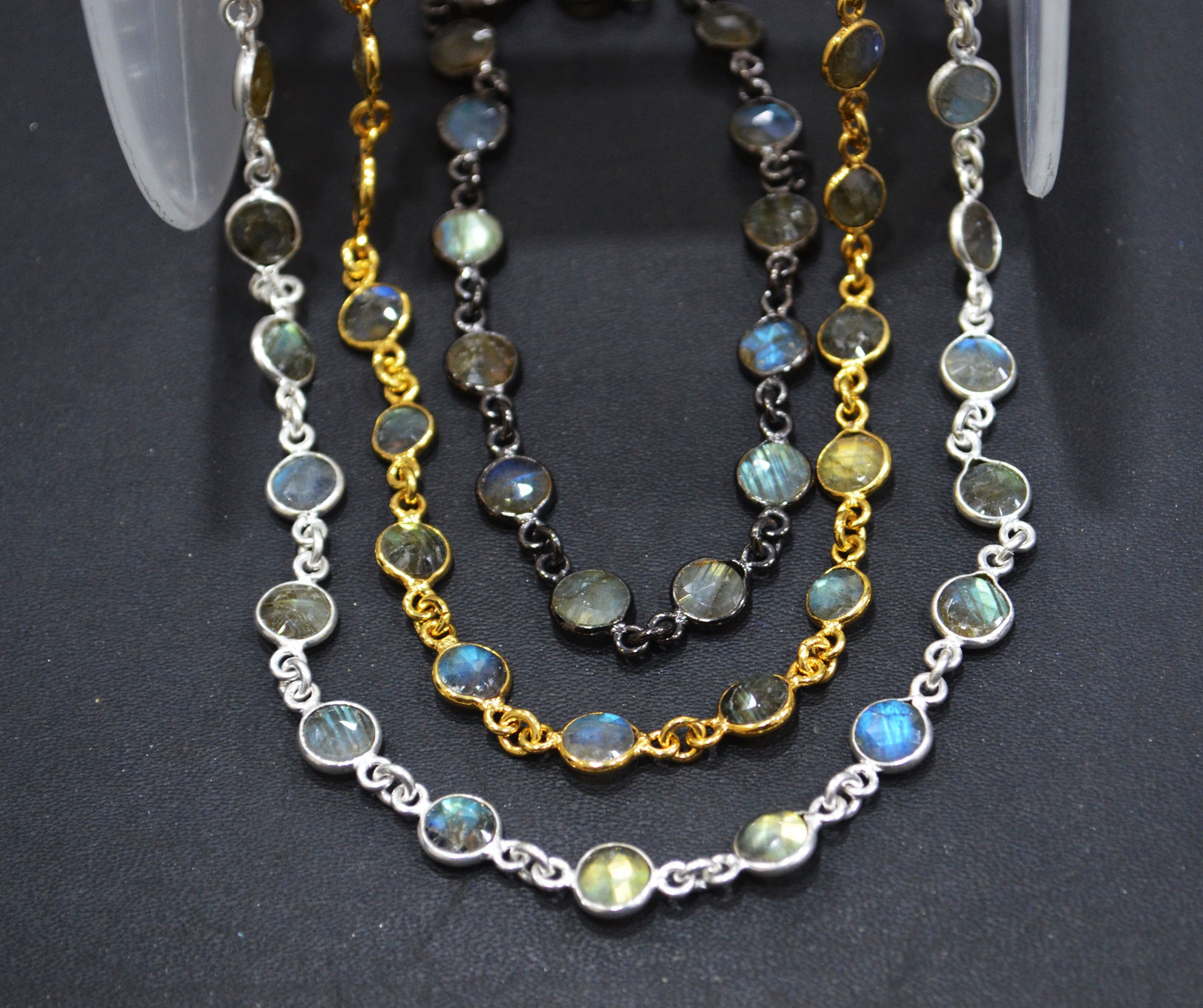 Labradorite Faceted Coin Shape Connector Chain , Labradorite Bezel Link Chain , 6 mm , RB-6285
