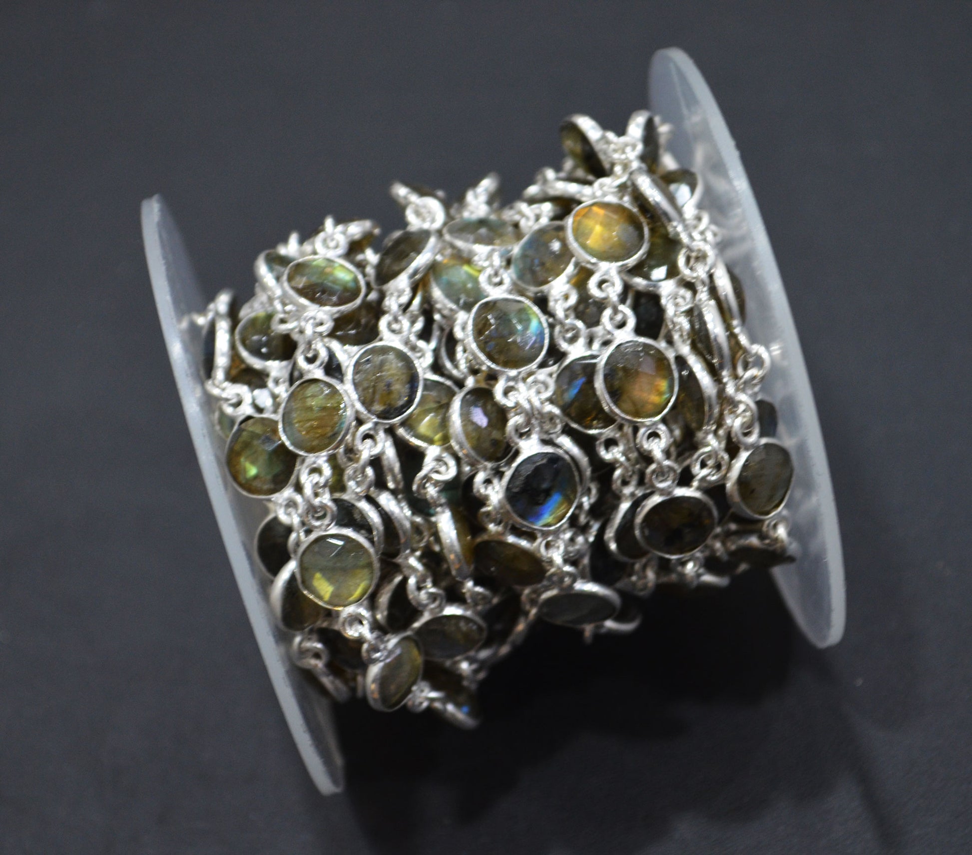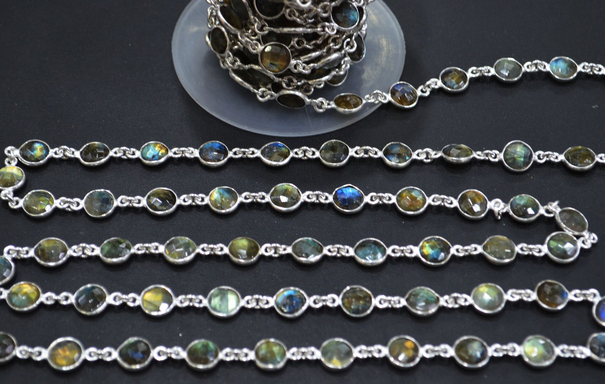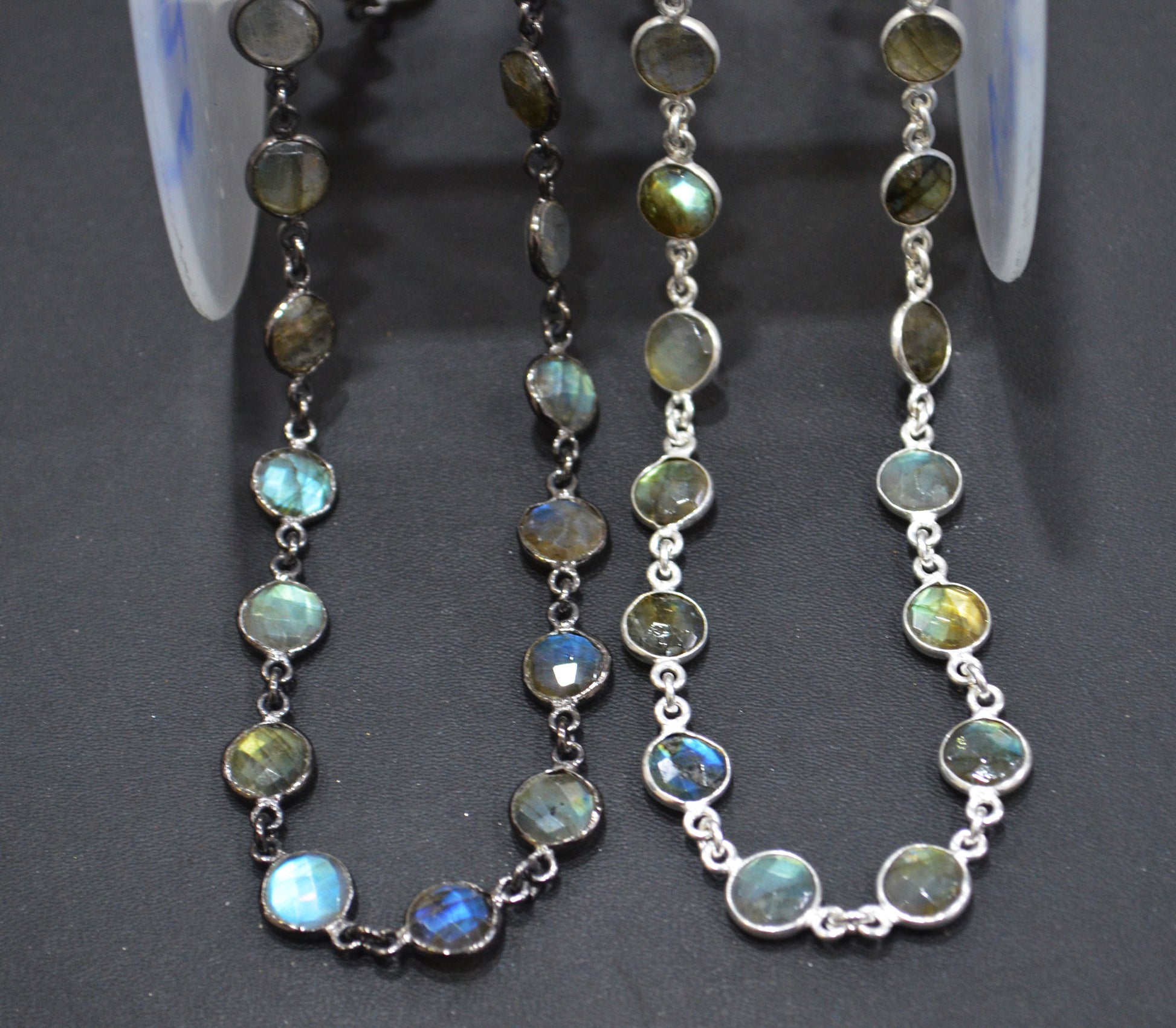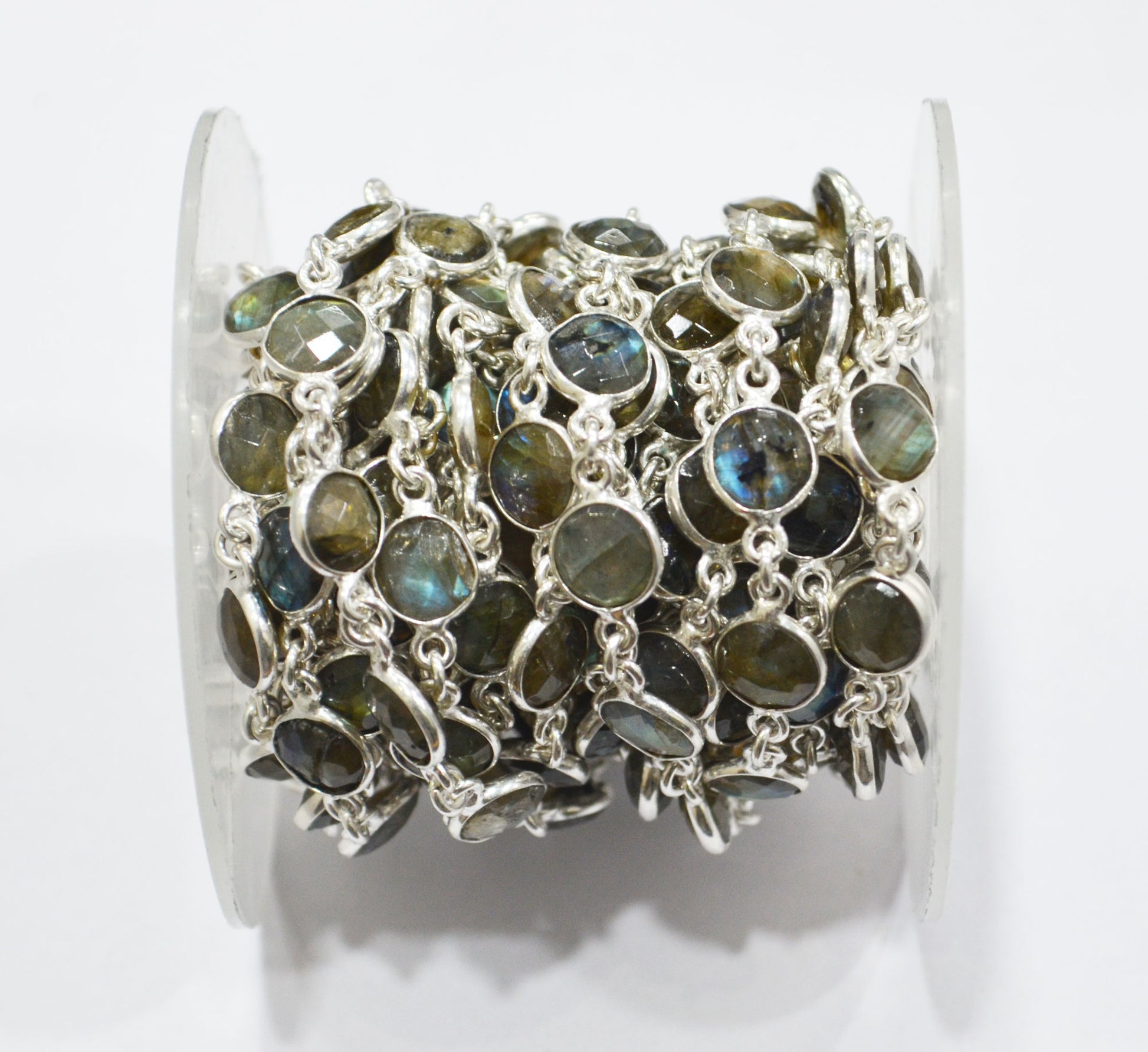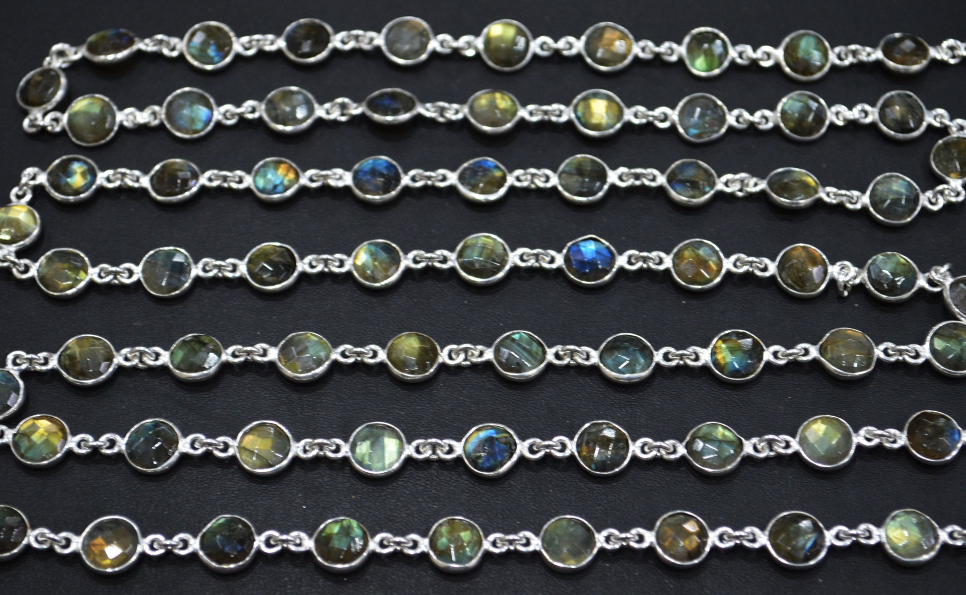 Labradorite Faceted Coin Shape Connector Chain , Labradorite Bezel Link Chain , 8 mm , RB-6284
