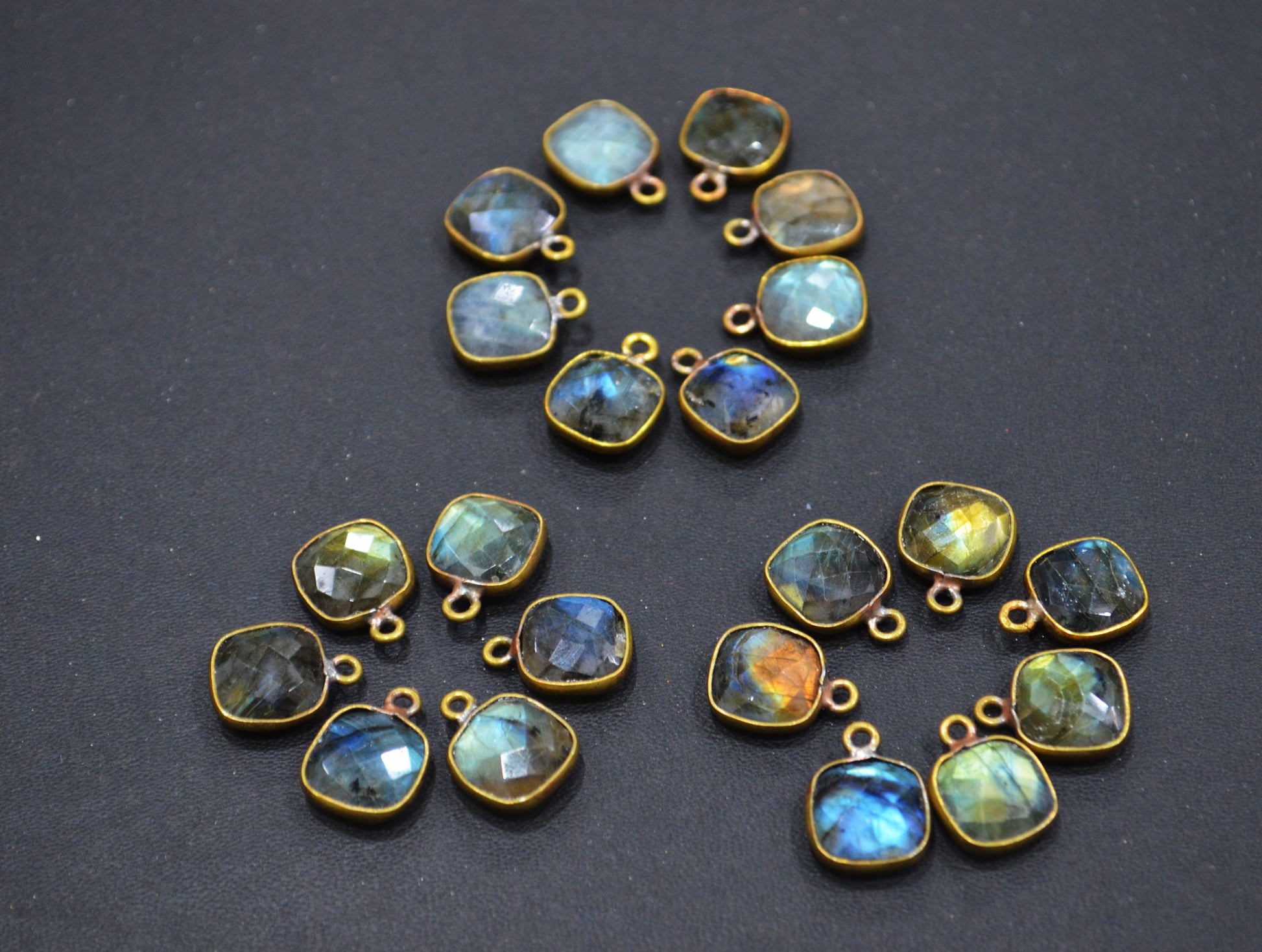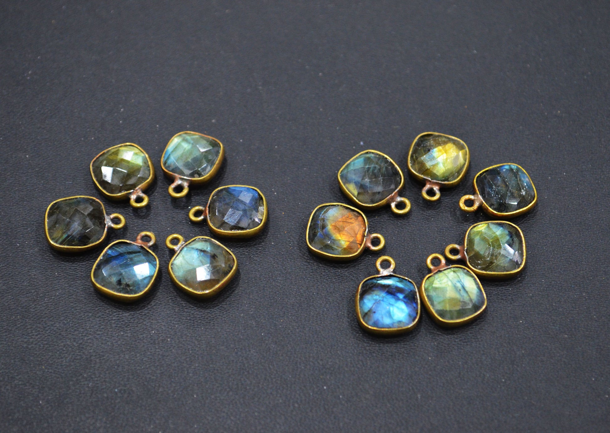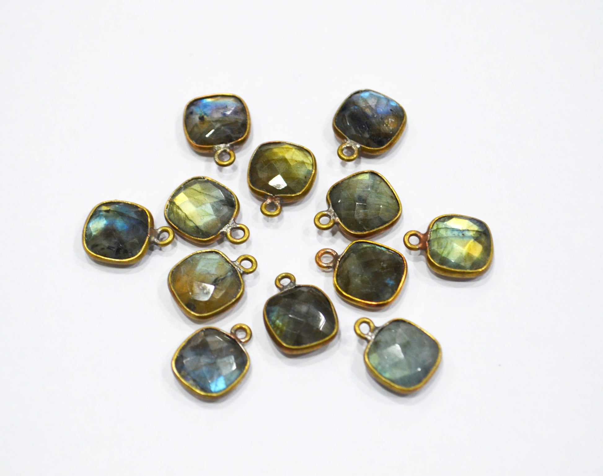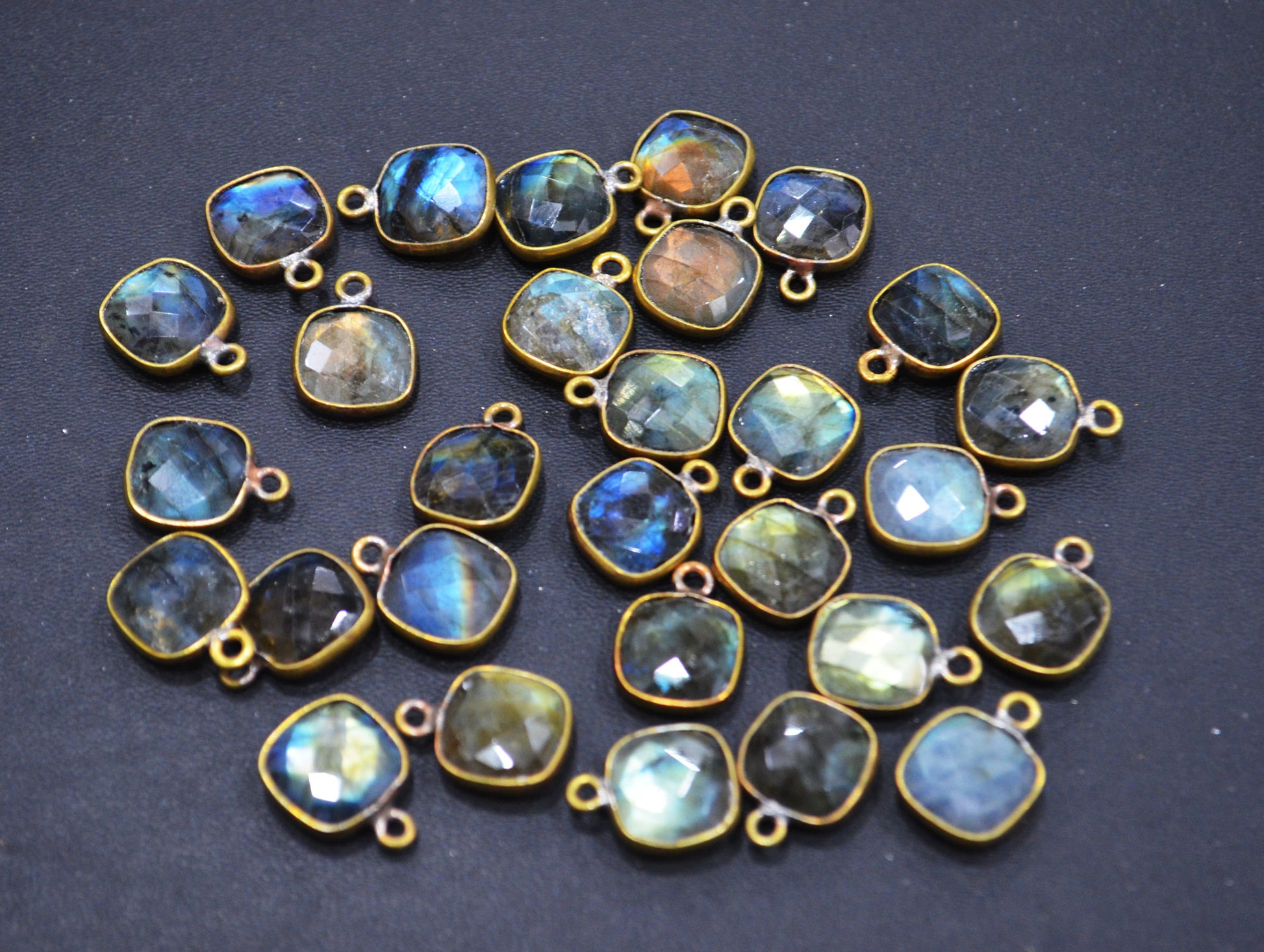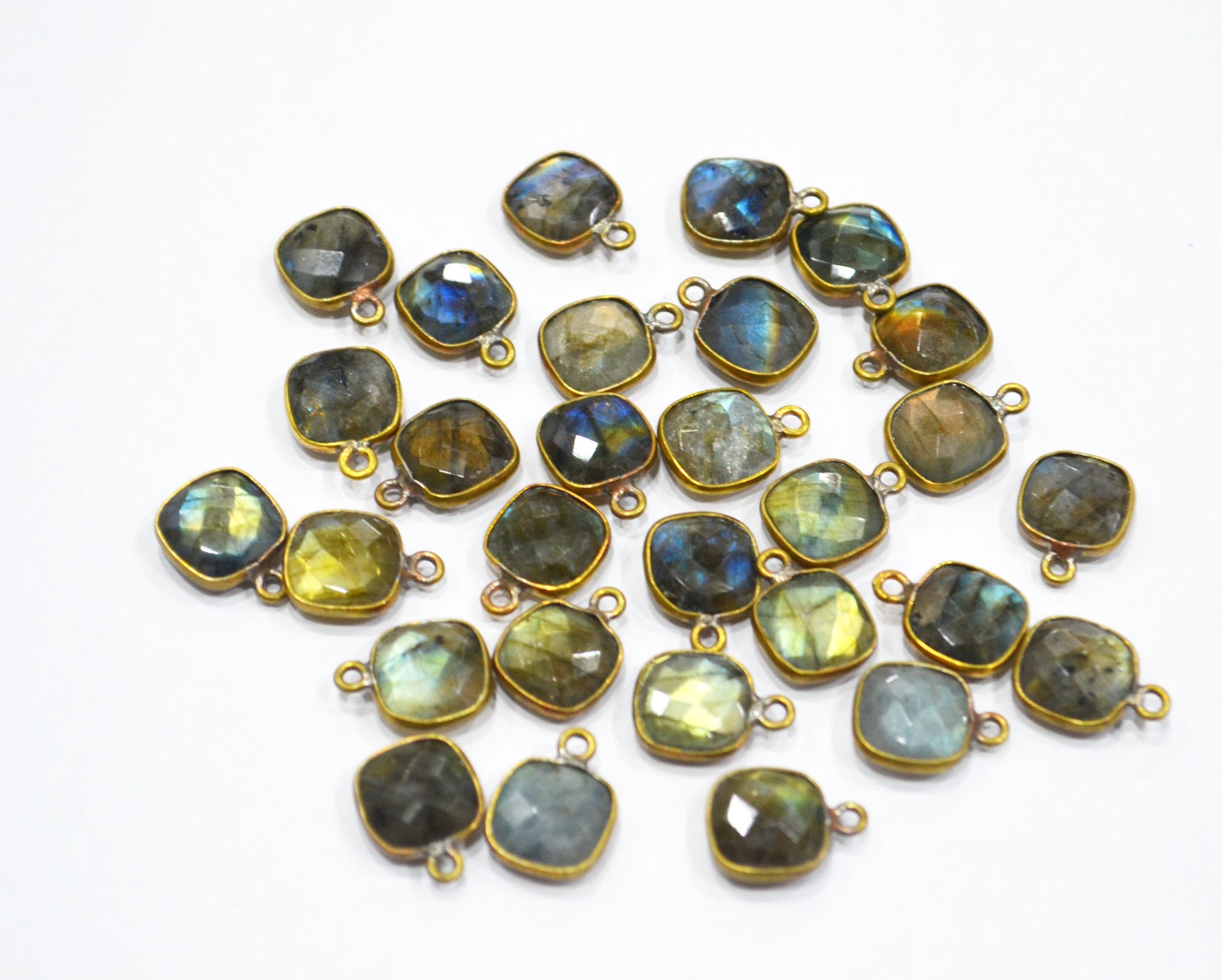 Labradorite Faceted Cushion Shape Connector , Labradorite Single Bail Bezel Connector , Sold By Piece , 11 mm , RB-6409