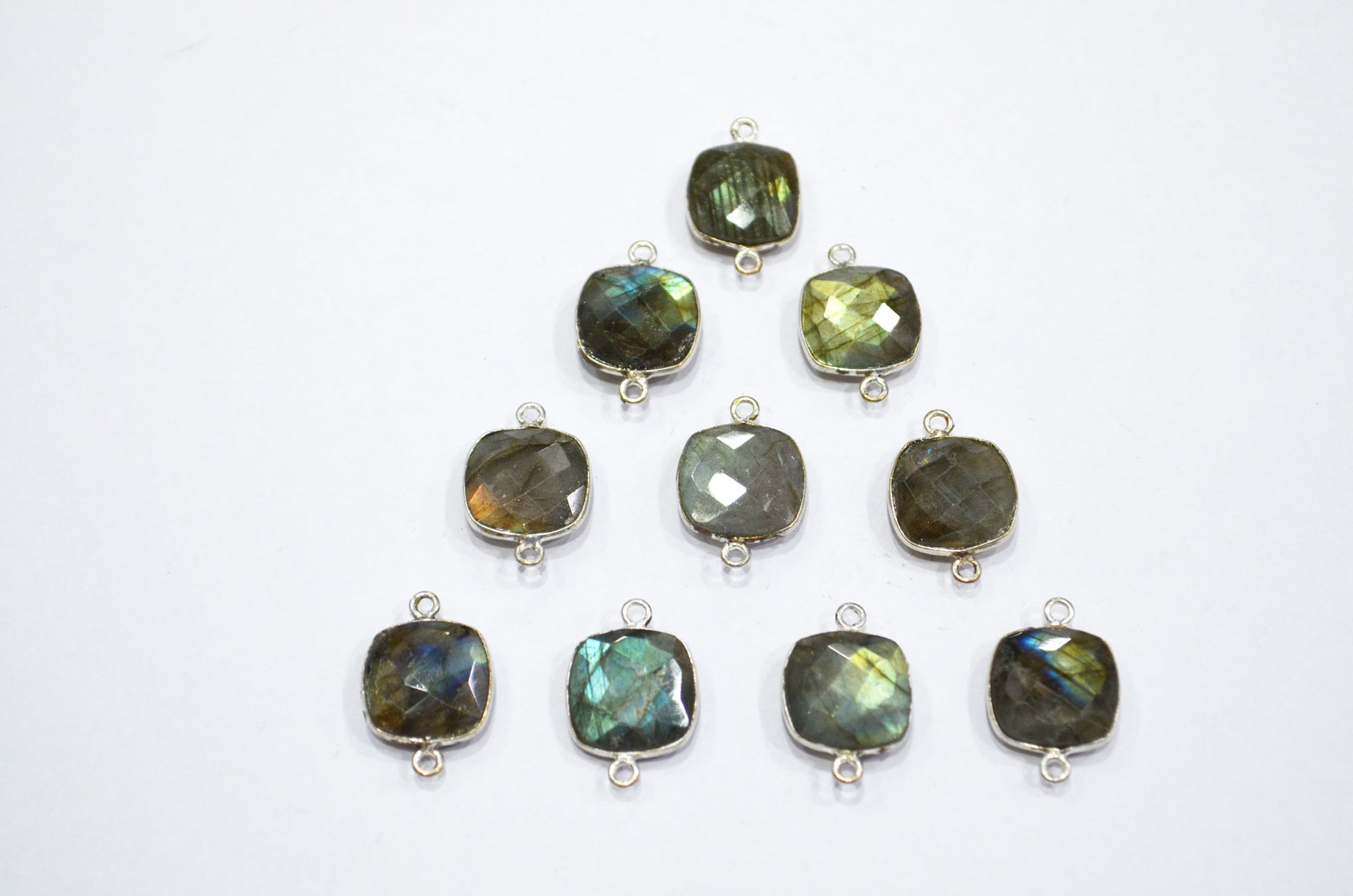Labradorite Faceted Cushion Shape Connector , Sold By Piece , 12 - 14 mm , RB-5419