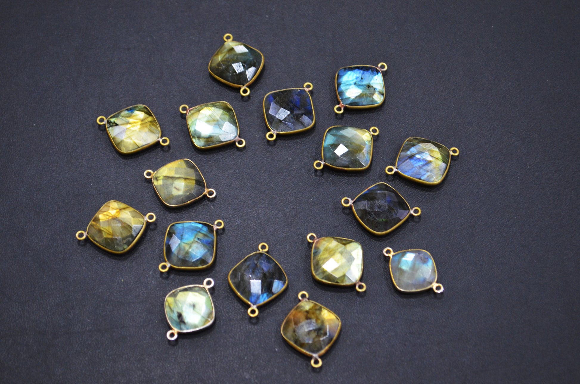 Labradorite Faceted Cushion Shape Connector , Sold By Piece , 15 mm , RB-5410