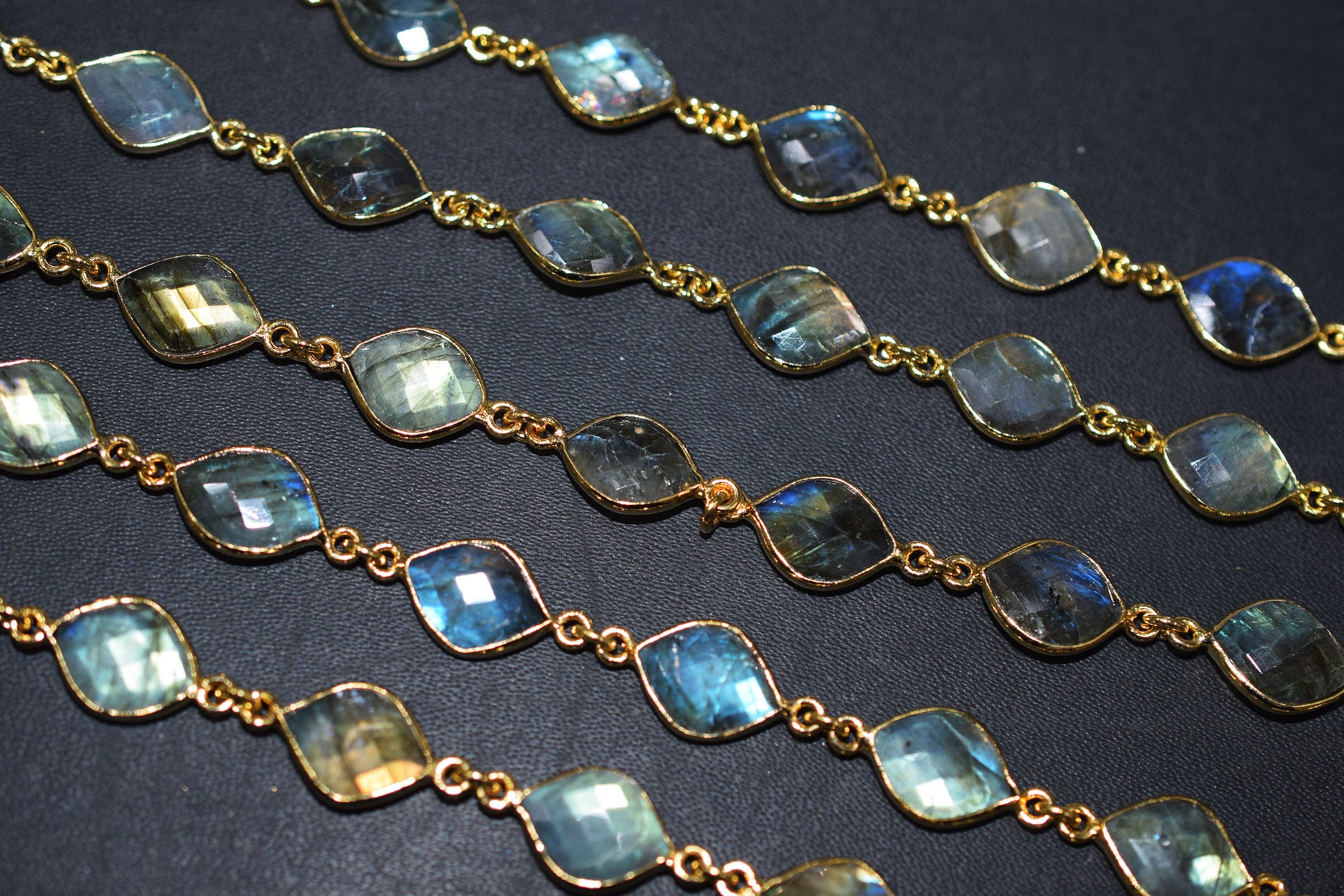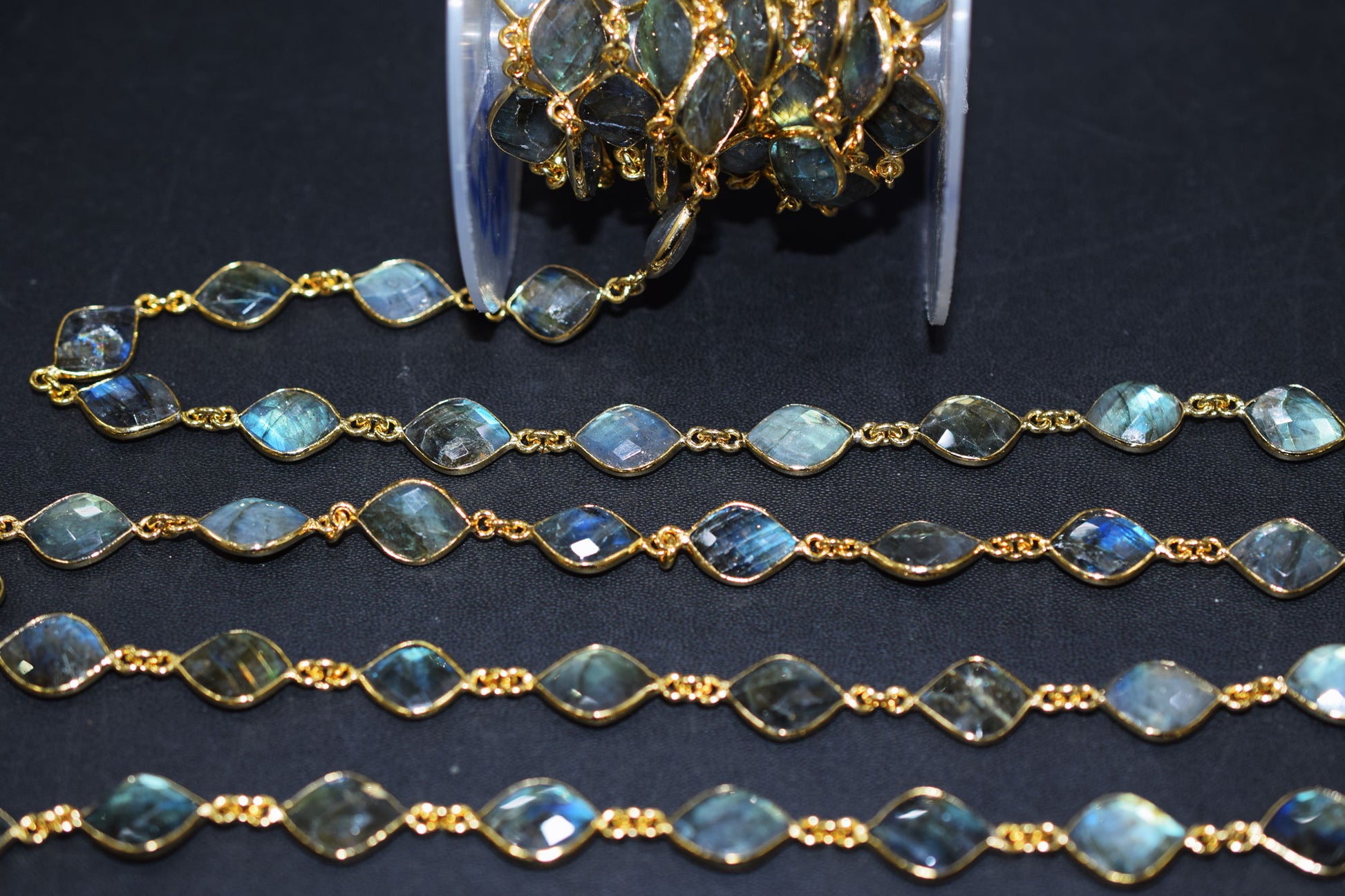 Labradorite Faceted Fancy Flat Dew Drops Shape Connector Chain , Labradorite Bezel Link Chain , 14 - 16 mm , RB-6531