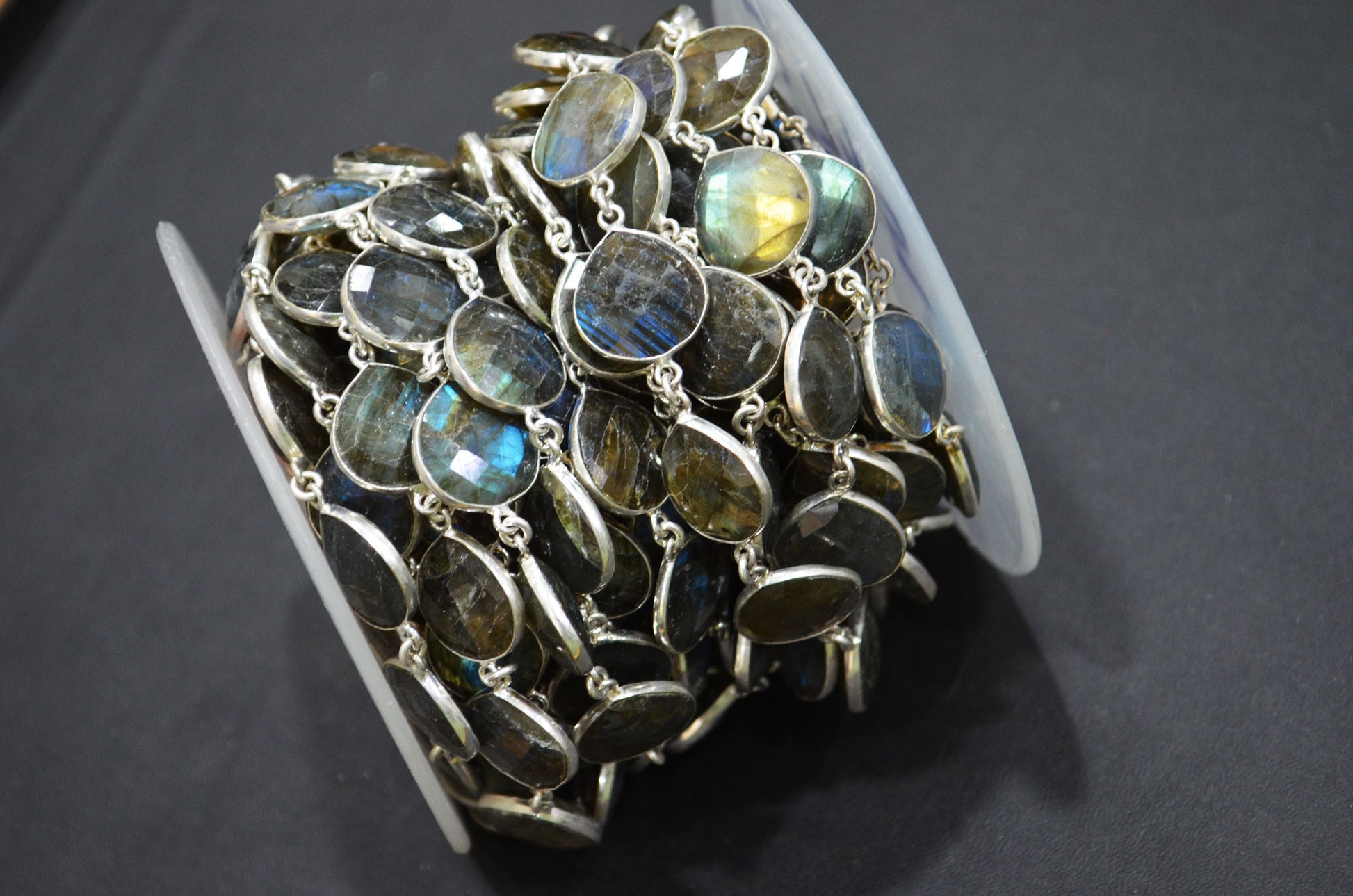 Labradorite Faceted Heart Shape Connector Chain , Labradorite Bezel Link Chain , 15 - 16 mm , RB-5745