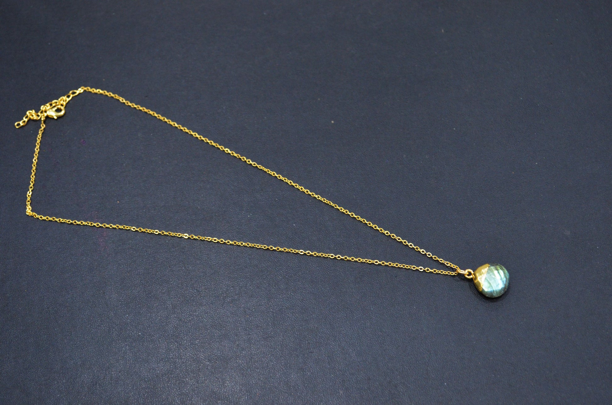 Labradorite Faceted Heart Shape Pendant With Adjustable Chain And Lobster Lock Necklace , 14 mm , RB-7325
