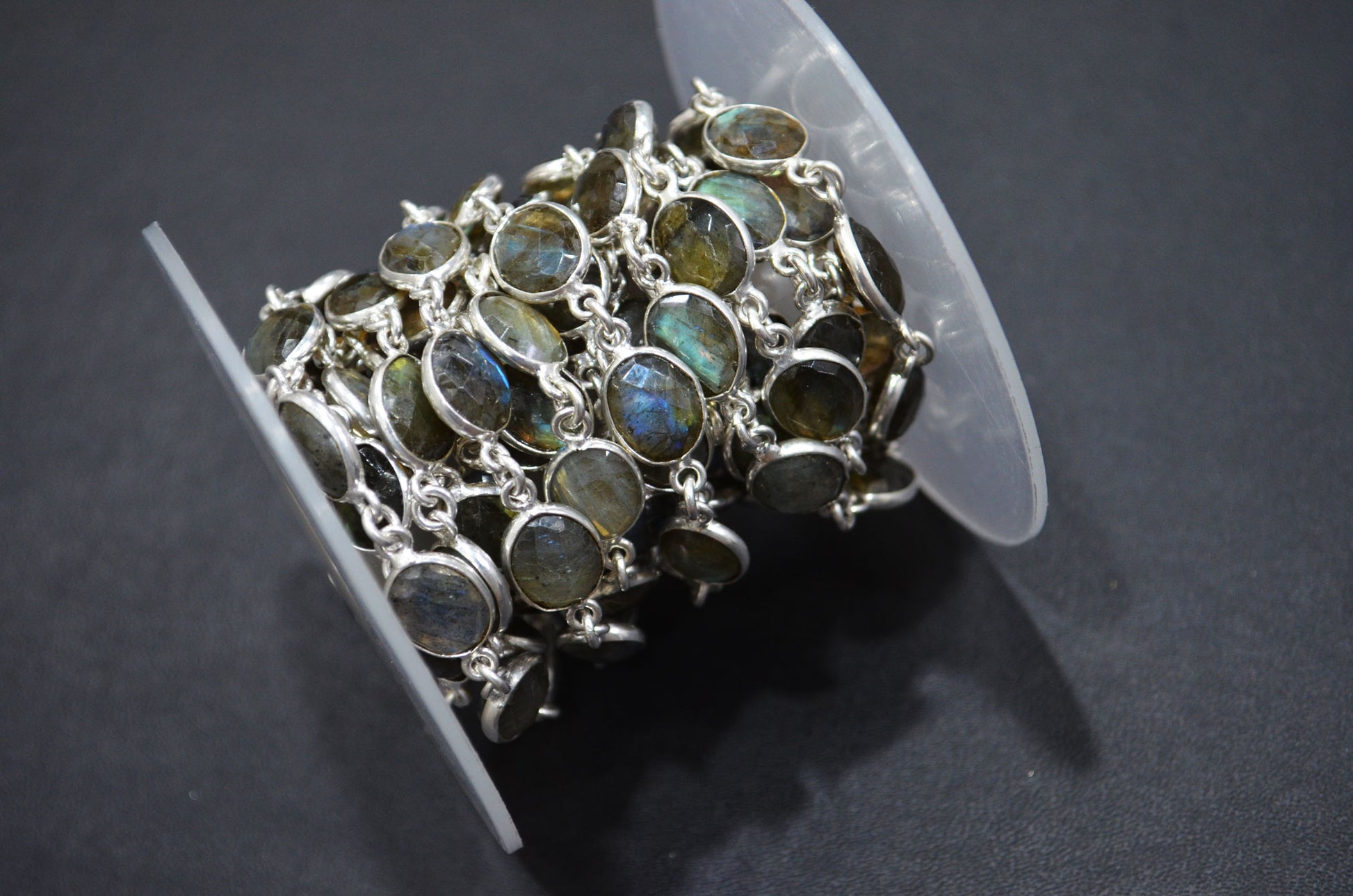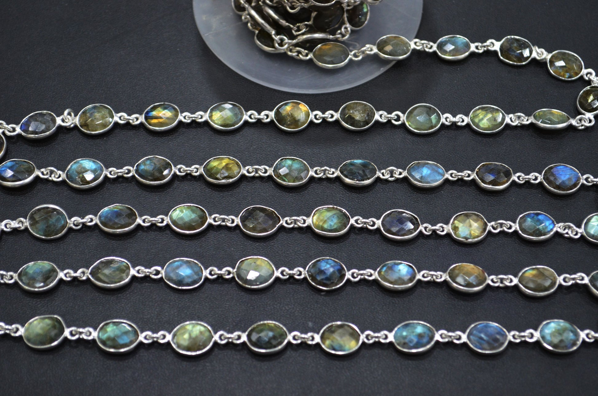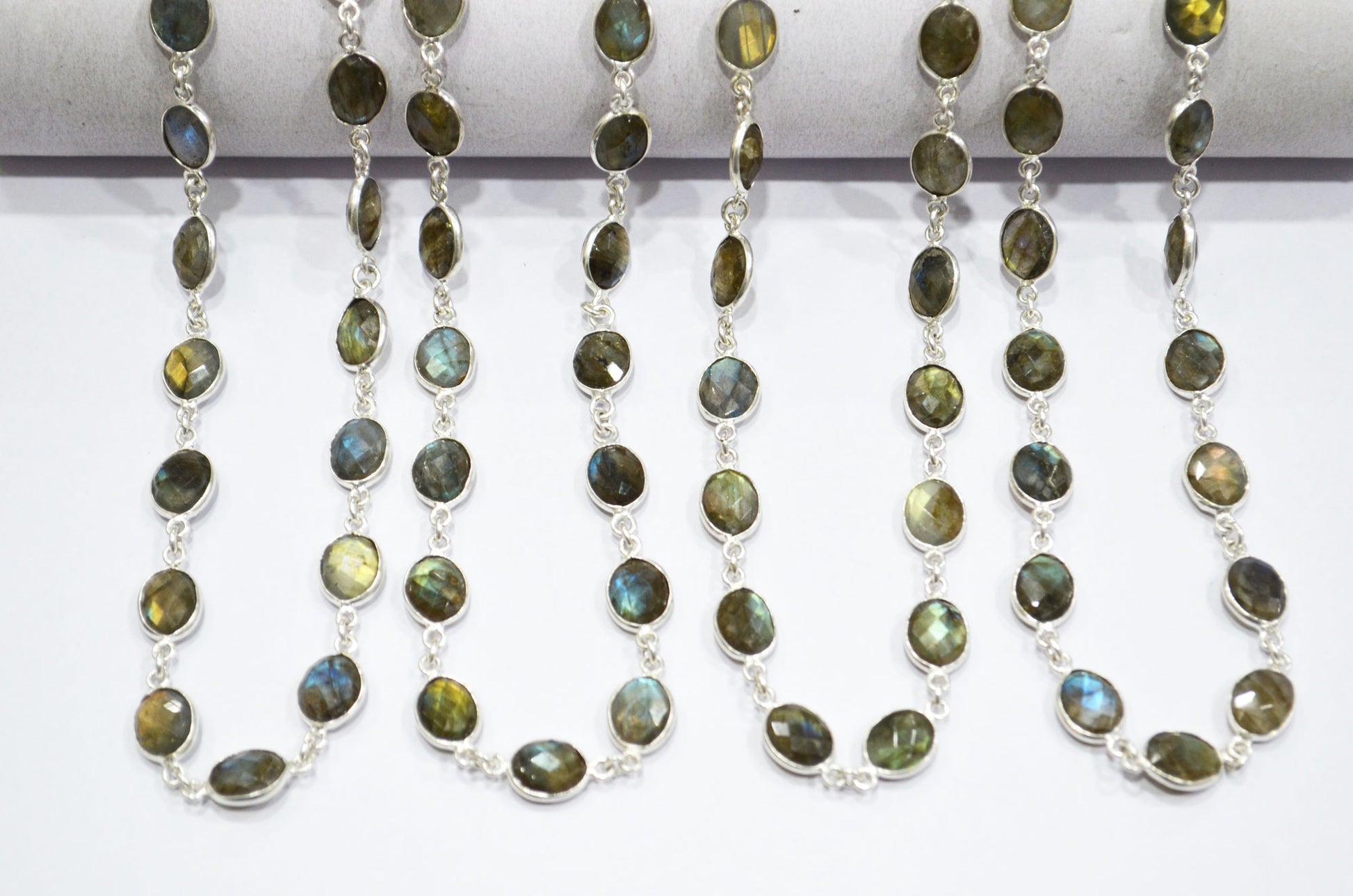 Labradorite Faceted Oval Shape Connector Chain , Labradorite Bezel Link Chain , 8x10 mm , RB-5991