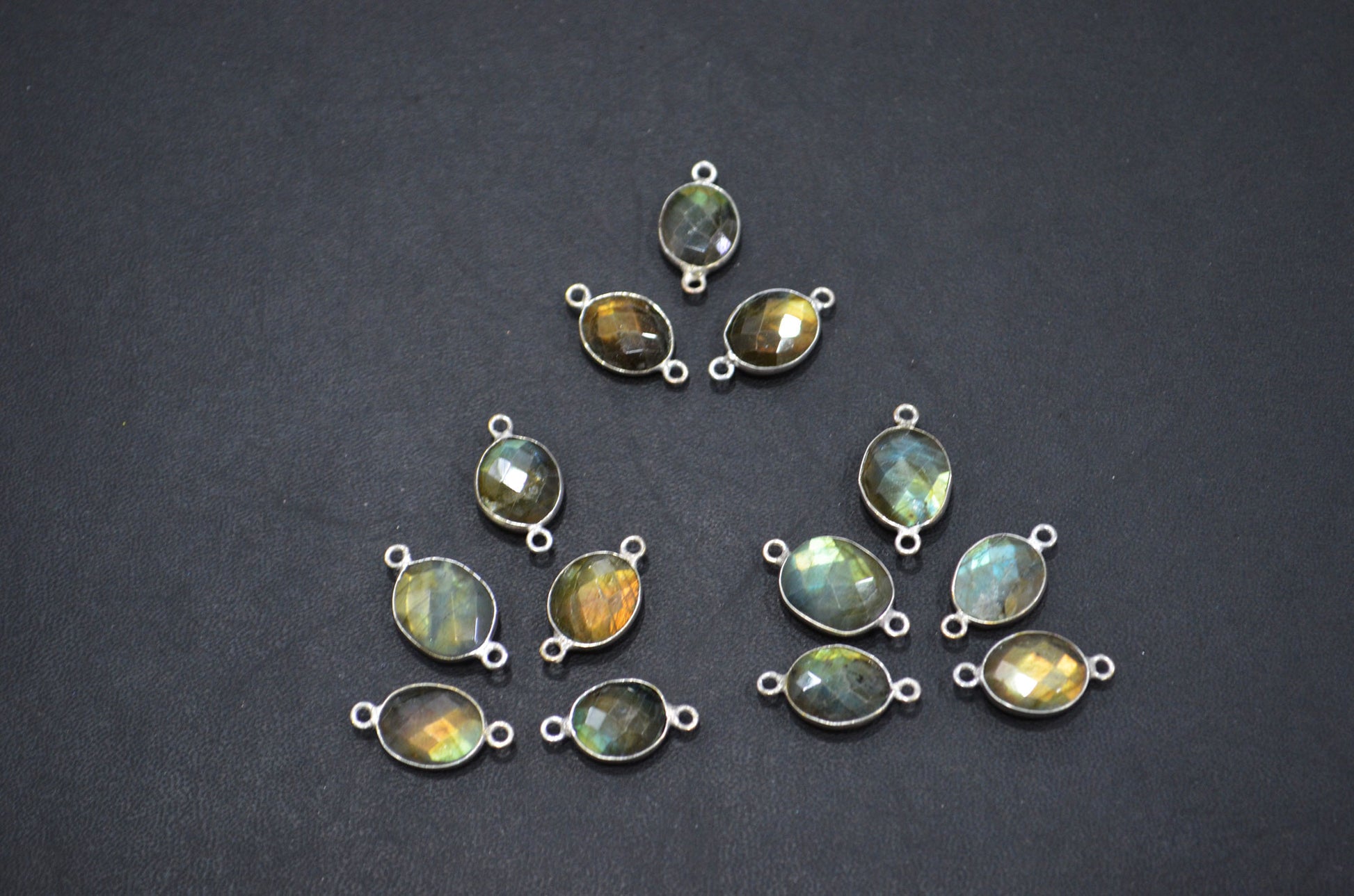 Labradorite Faceted Oval Shape Connector , Sold By Piece , 11 - 13 mm , RB-5420B