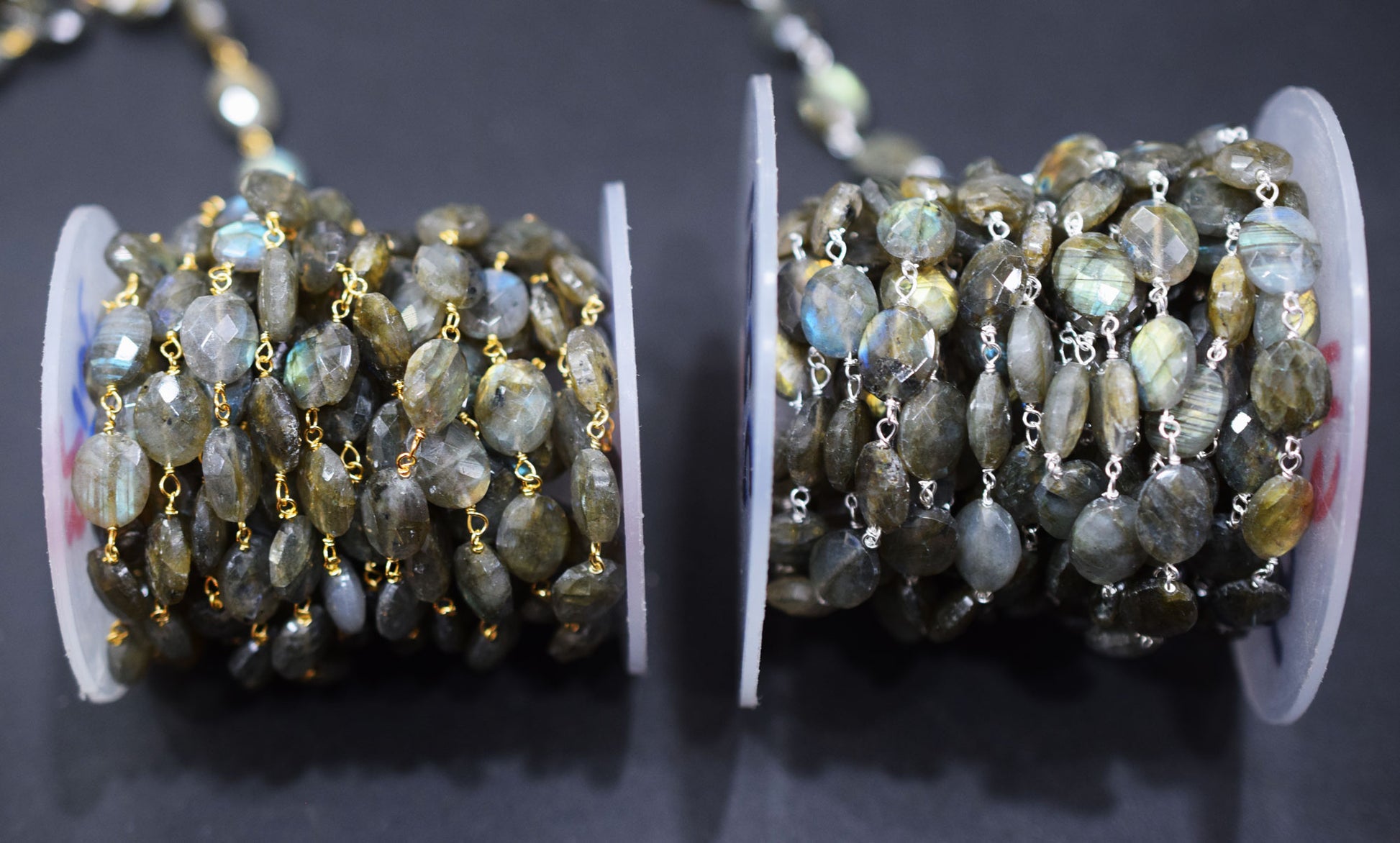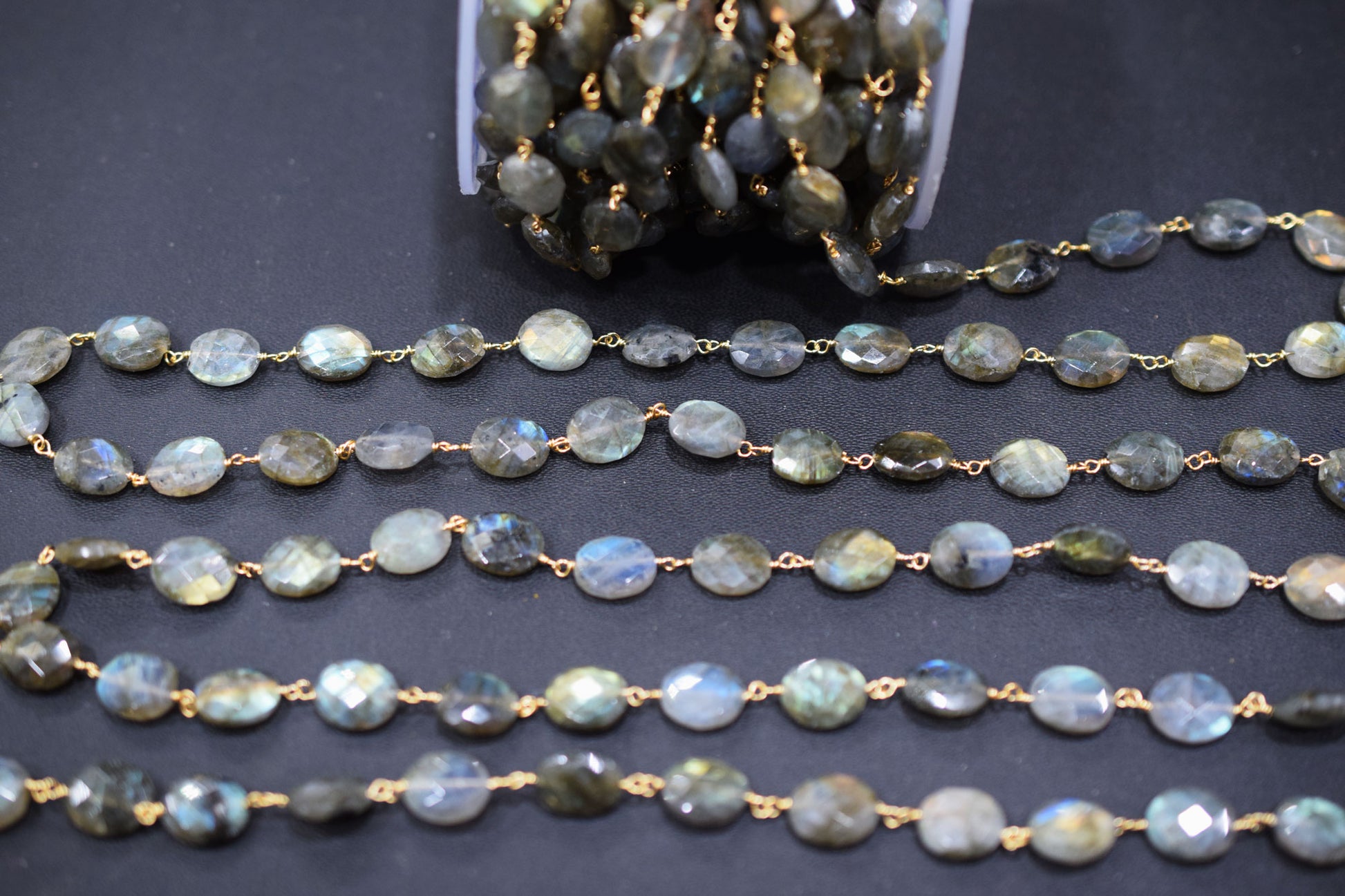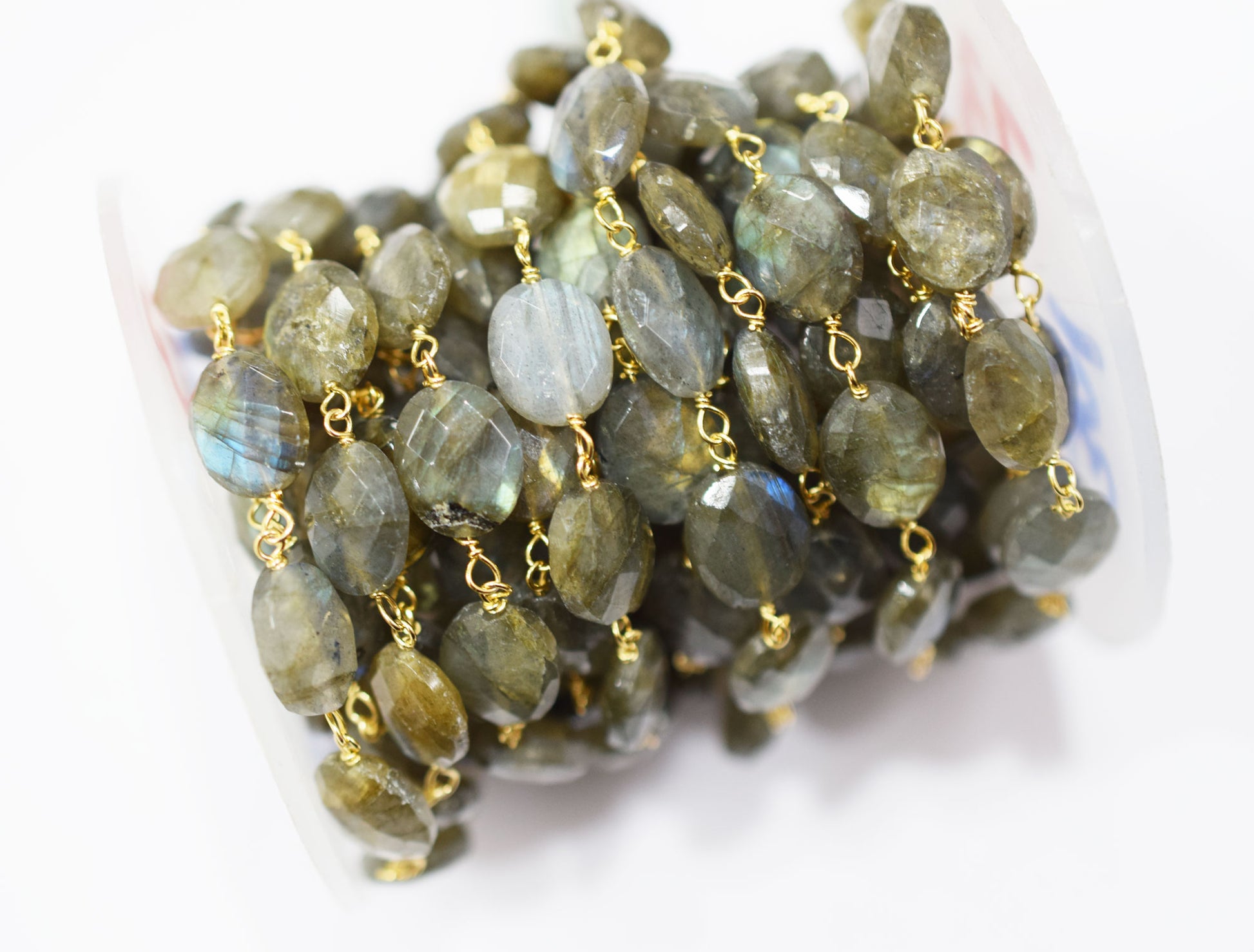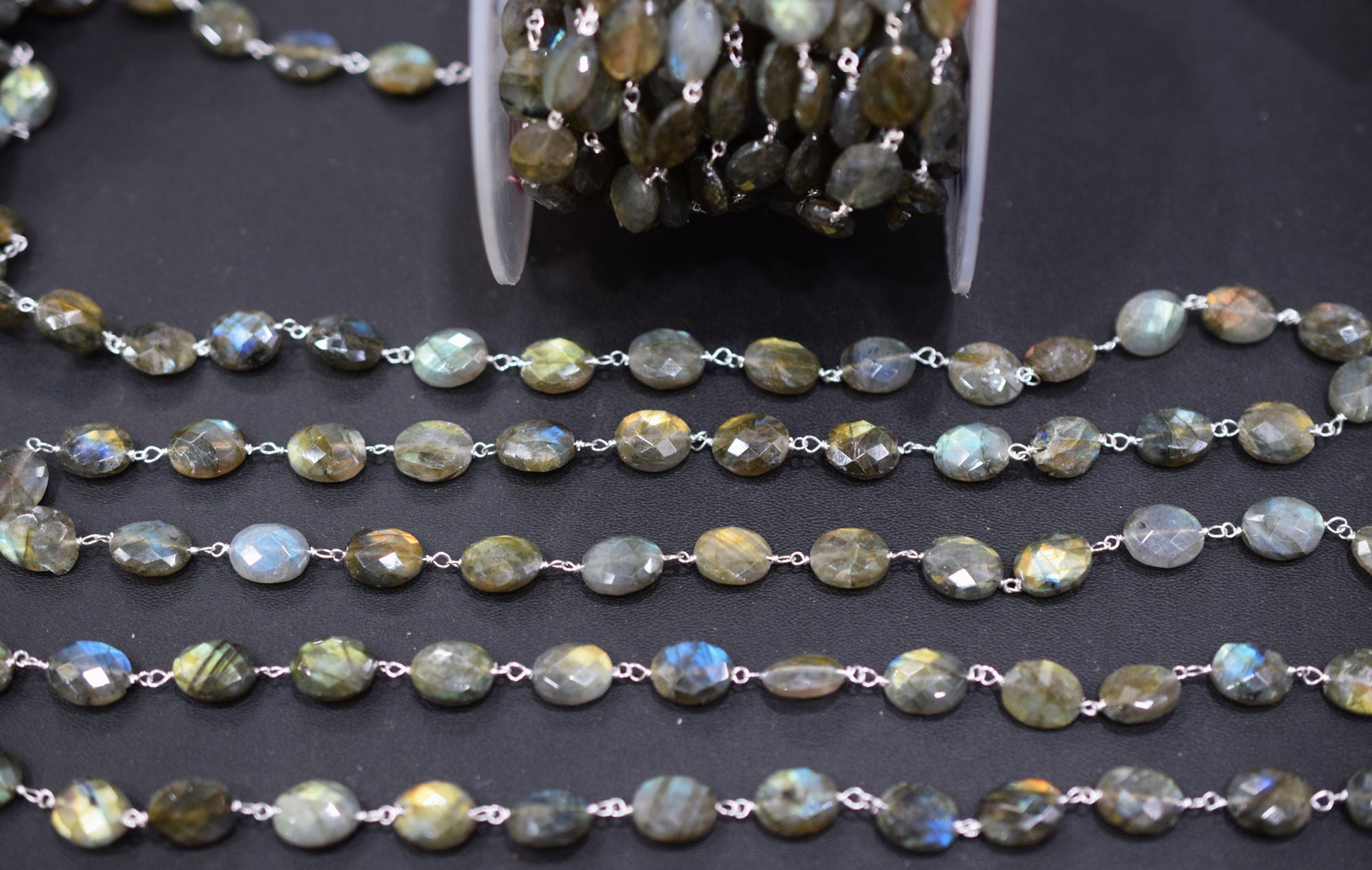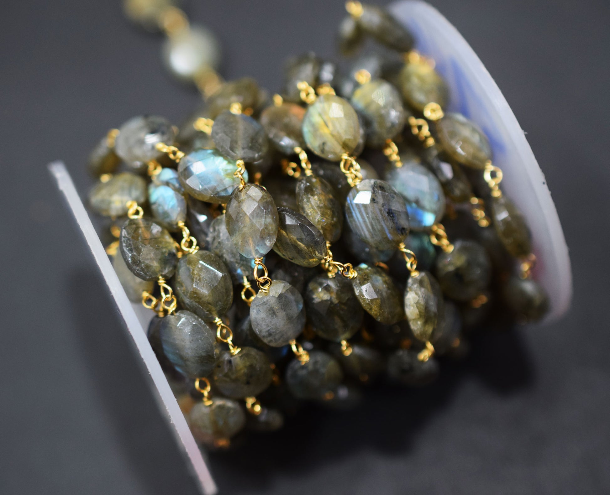 Labradorite Faceted Oval Shape Rosary Beaded Chain , Labradorite Wire Wrapped Chain , 8x10 mm , RB-6572