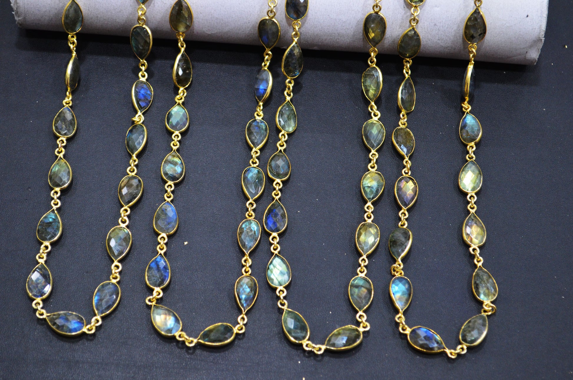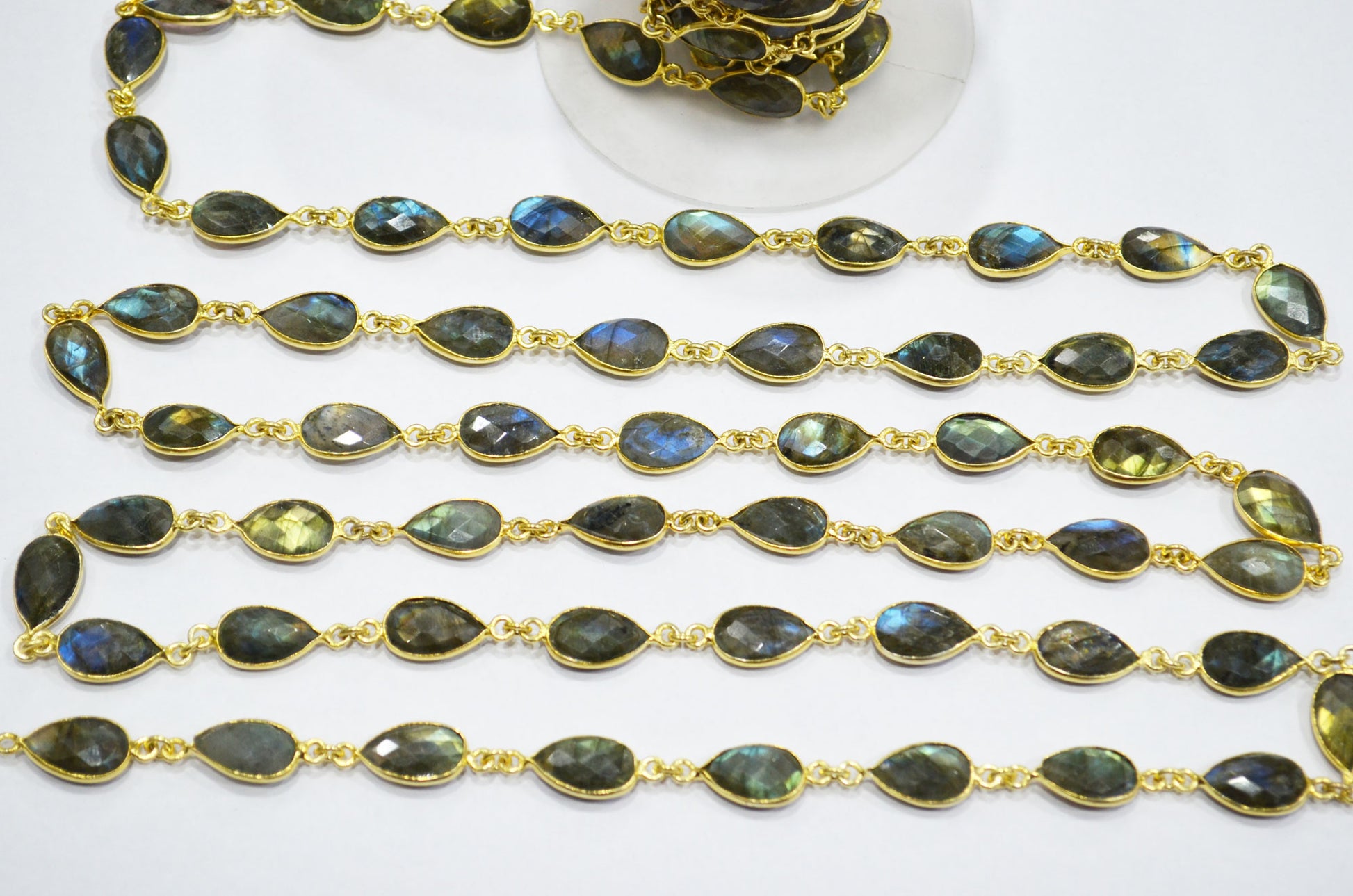 Labradorite Faceted Pear Shape Connector Chain , Labradorite Pear Shape Bezel Link Chain , 9x13 mm , RB-5716