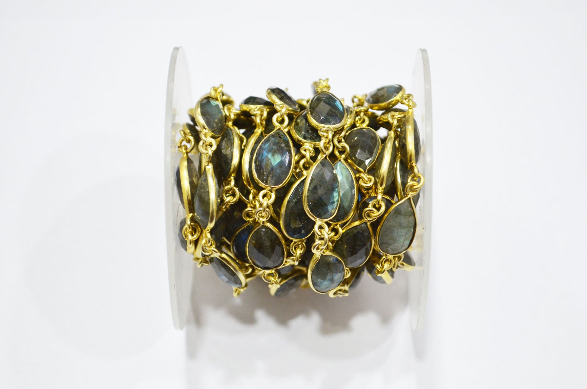 Labradorite Faceted Pear Shape Connector Chain , 9x13 mm , RB-5716