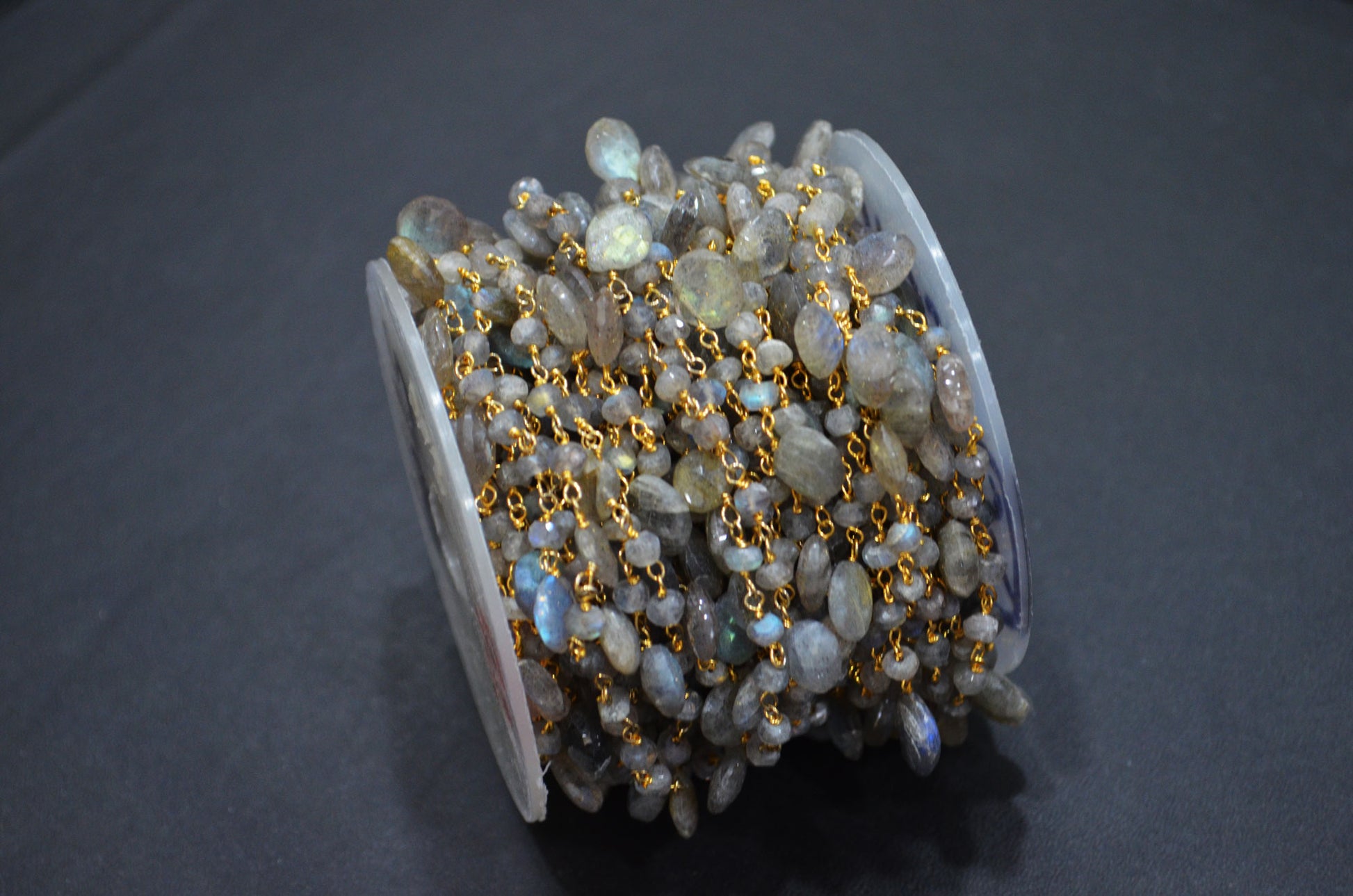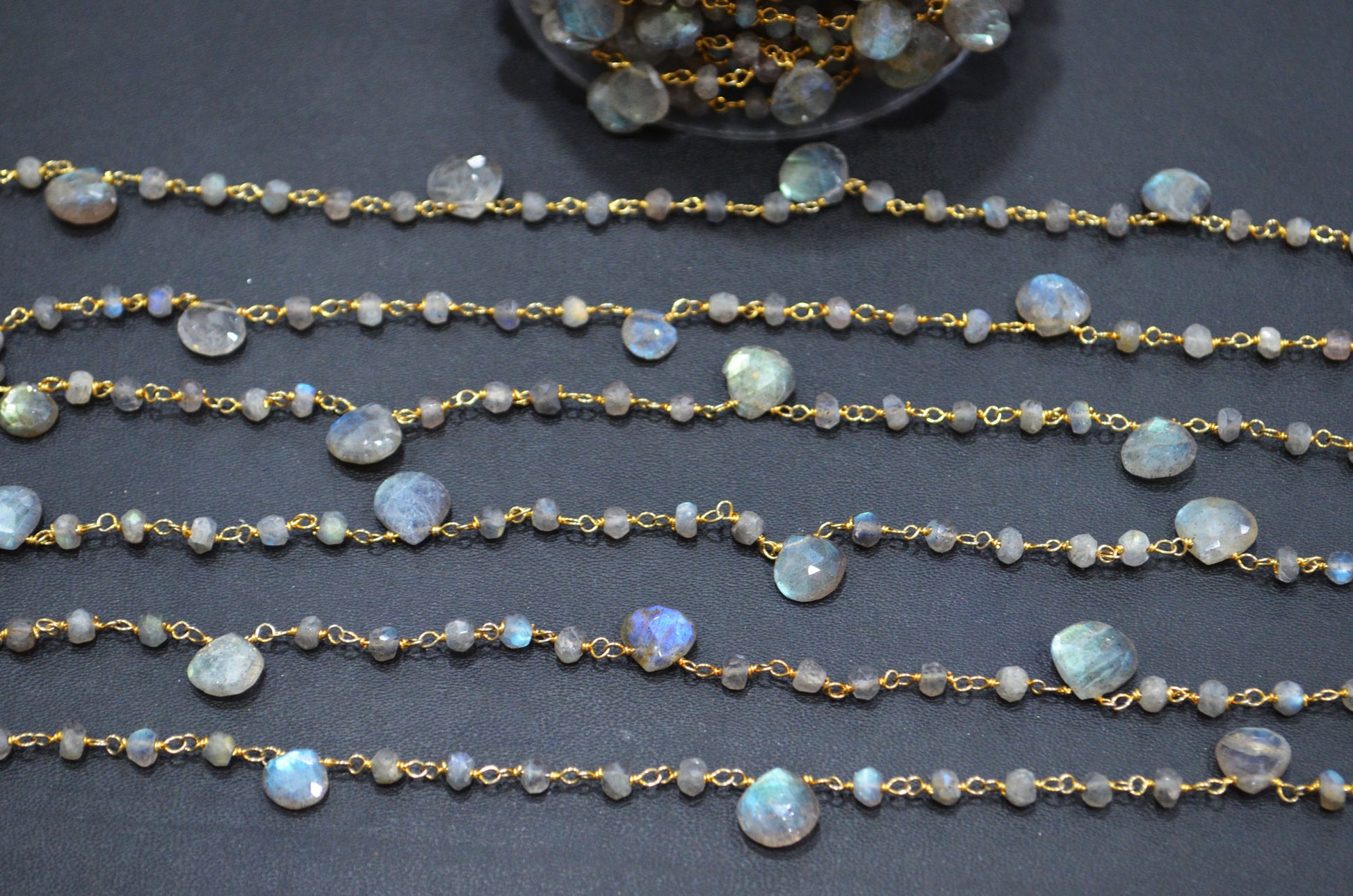 Labradorite Faceted Rondelle Shape Rosary Beaded Chain , Labradorite Faceted Heart Shape Wire Wrapped Chain , 4 - 4.50 mm , RB-5799