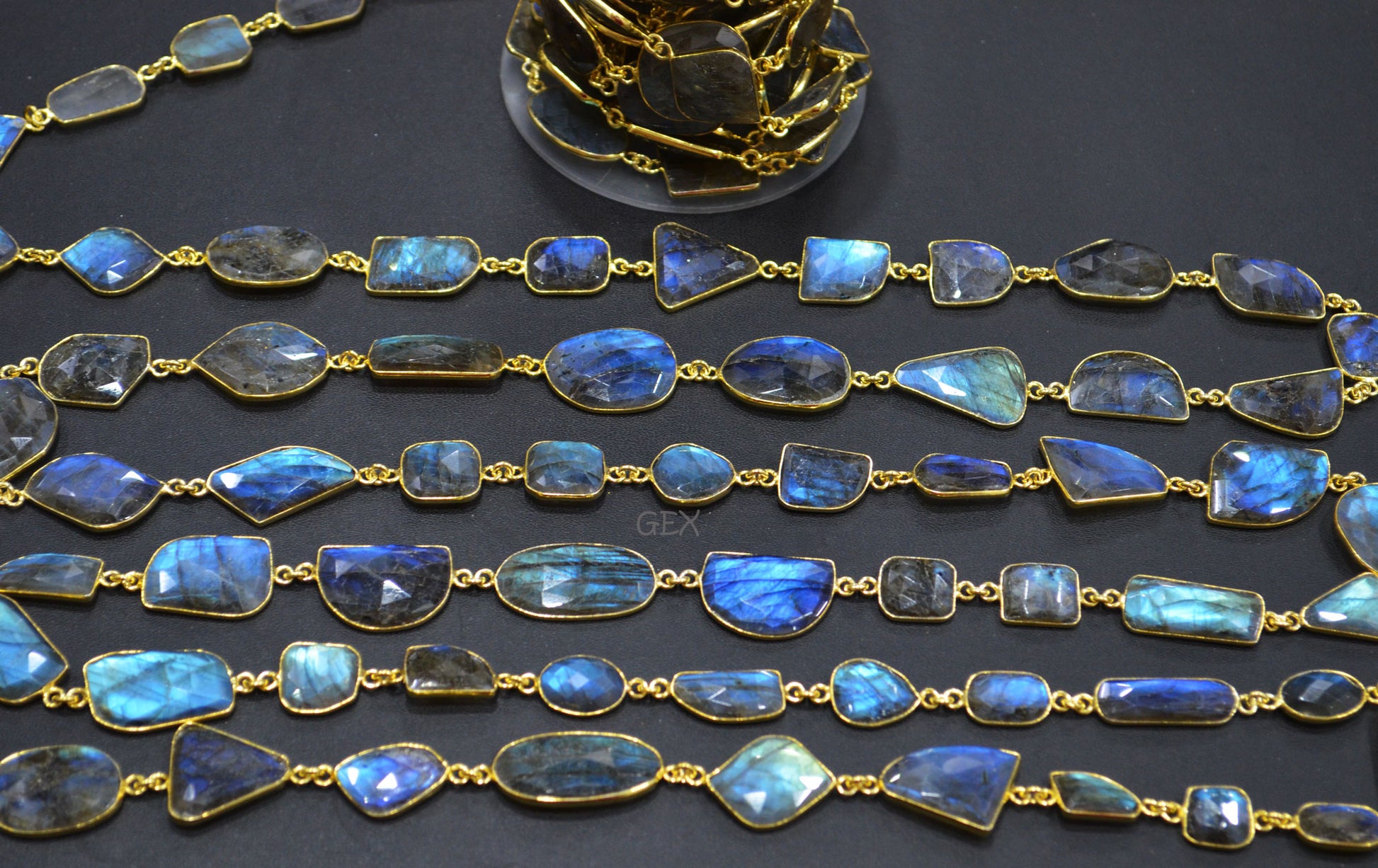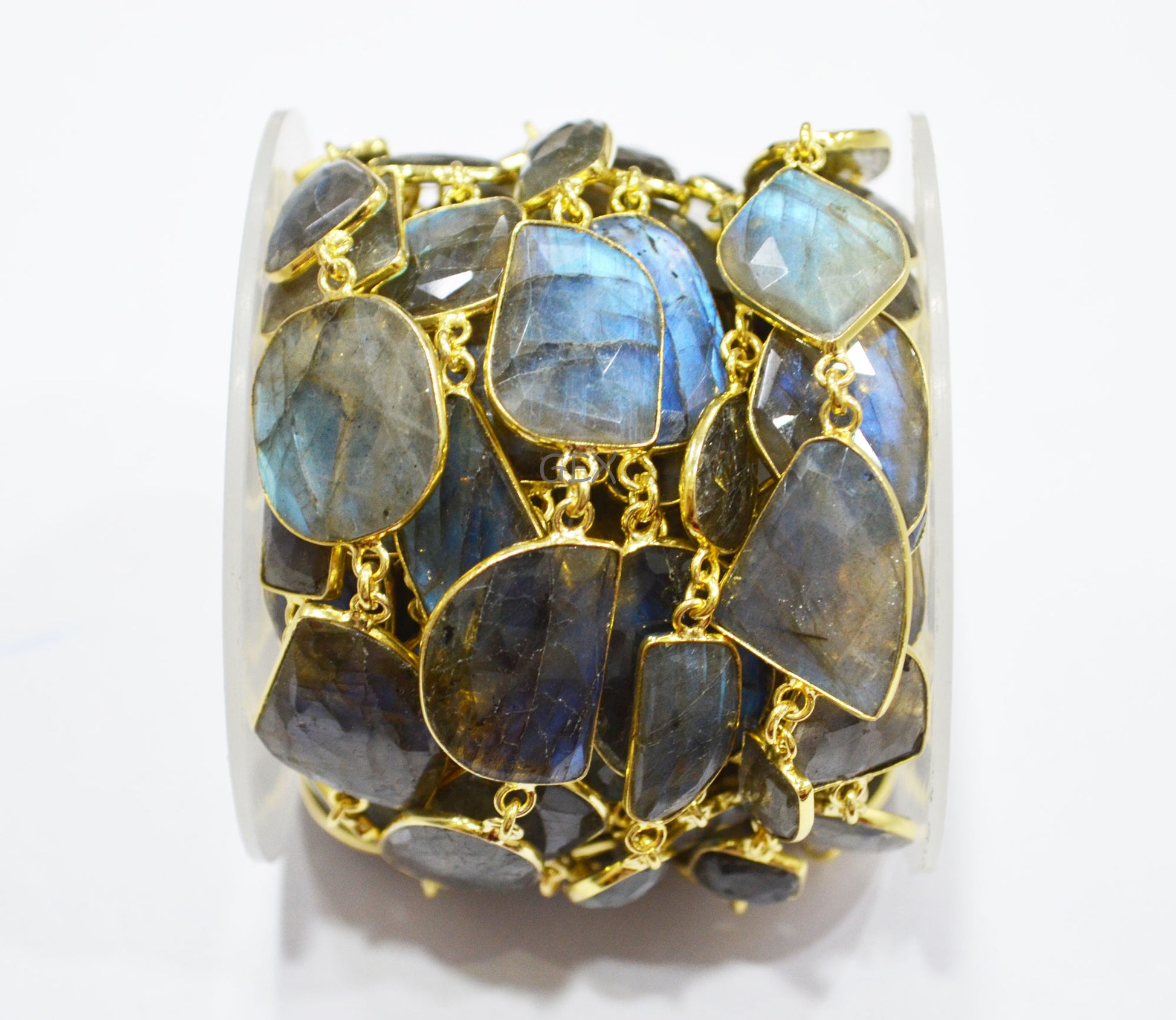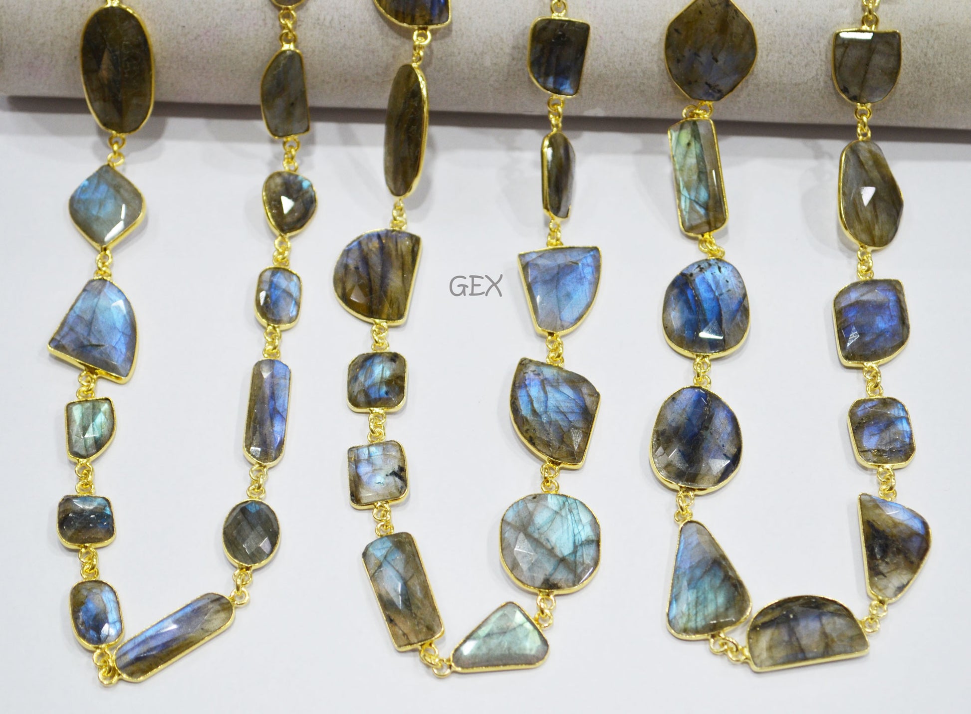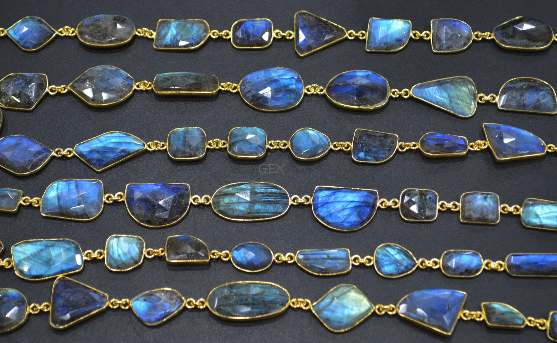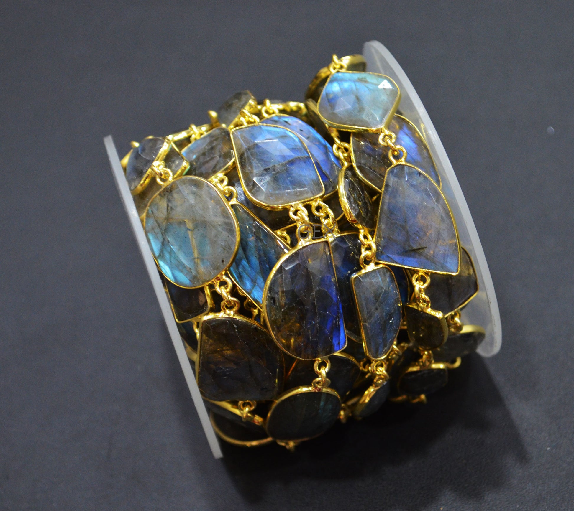 Labradorite Faceted Slice Shape Connector Chain , Labradorite Free Form Shape Bezel Link Chain , 9x13 - 18x21 mm , RB-7193