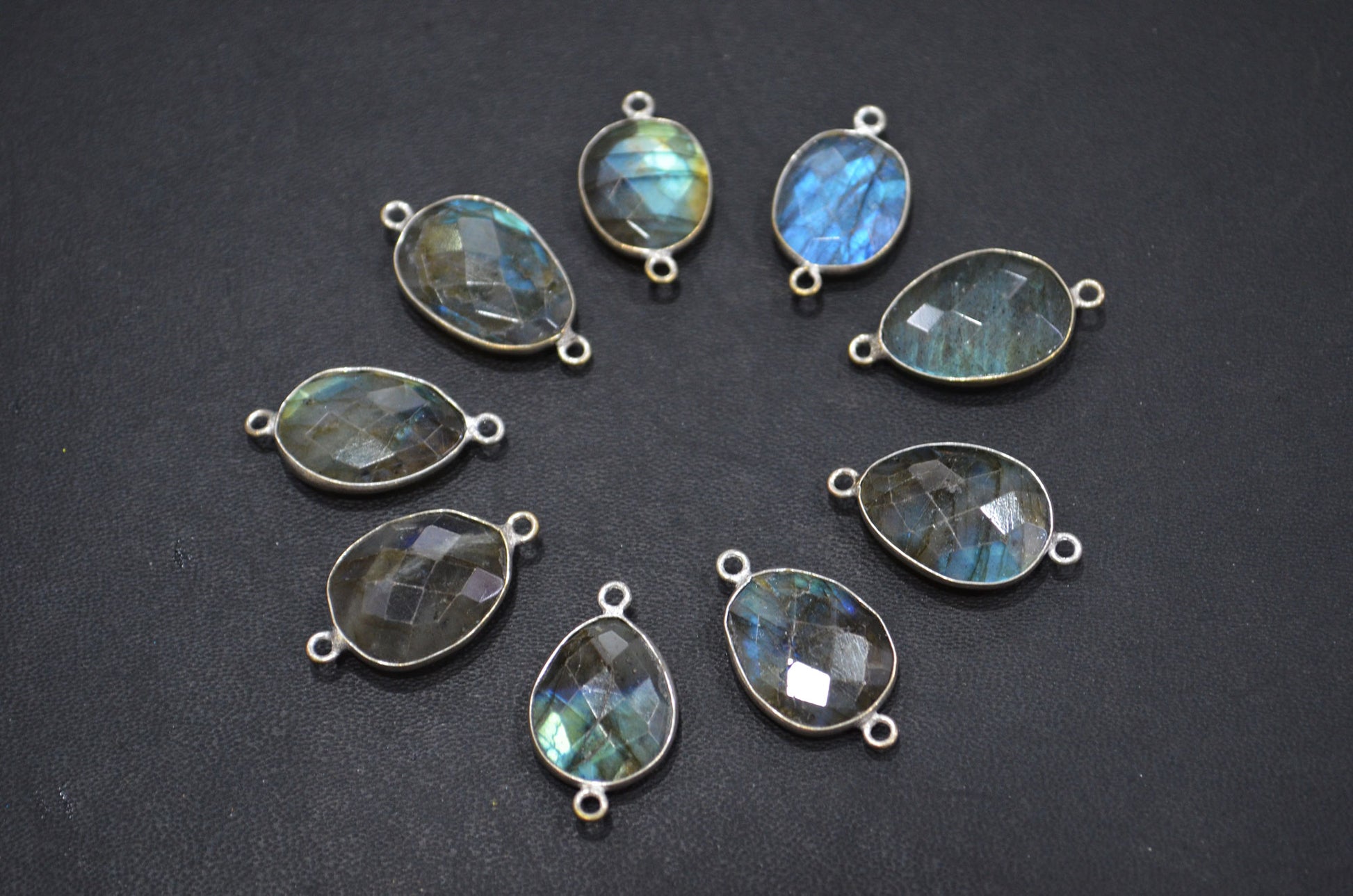 Labradorite Faceted Slice Shape Connector , Labradorite Free Form Shape Double Bail Bezel Connector , Sold By Piece , 13 - 16 mm , RB-5420E