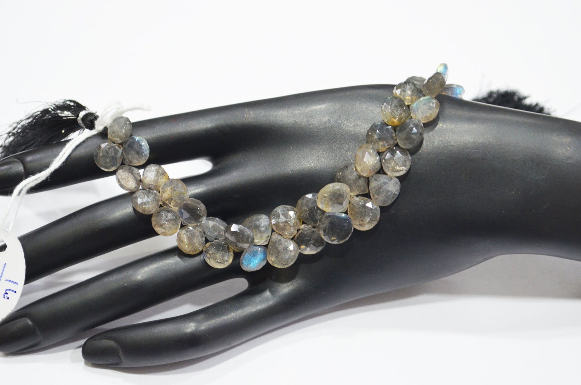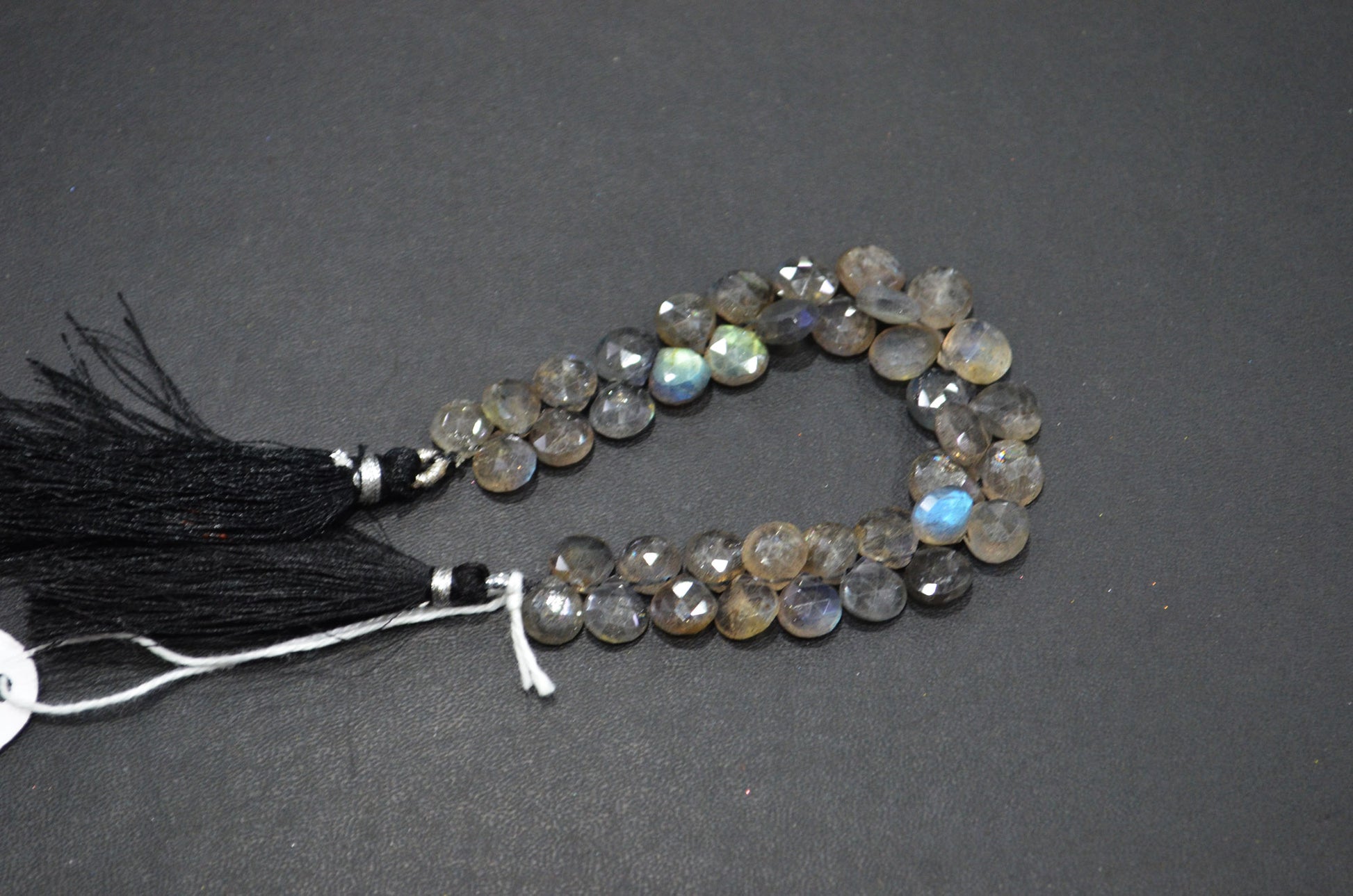Labradorite Heart Shape Beads , Labradorite Faceted Briolettes , 6 Inches , 8x8 - 9x9 mm , 32329