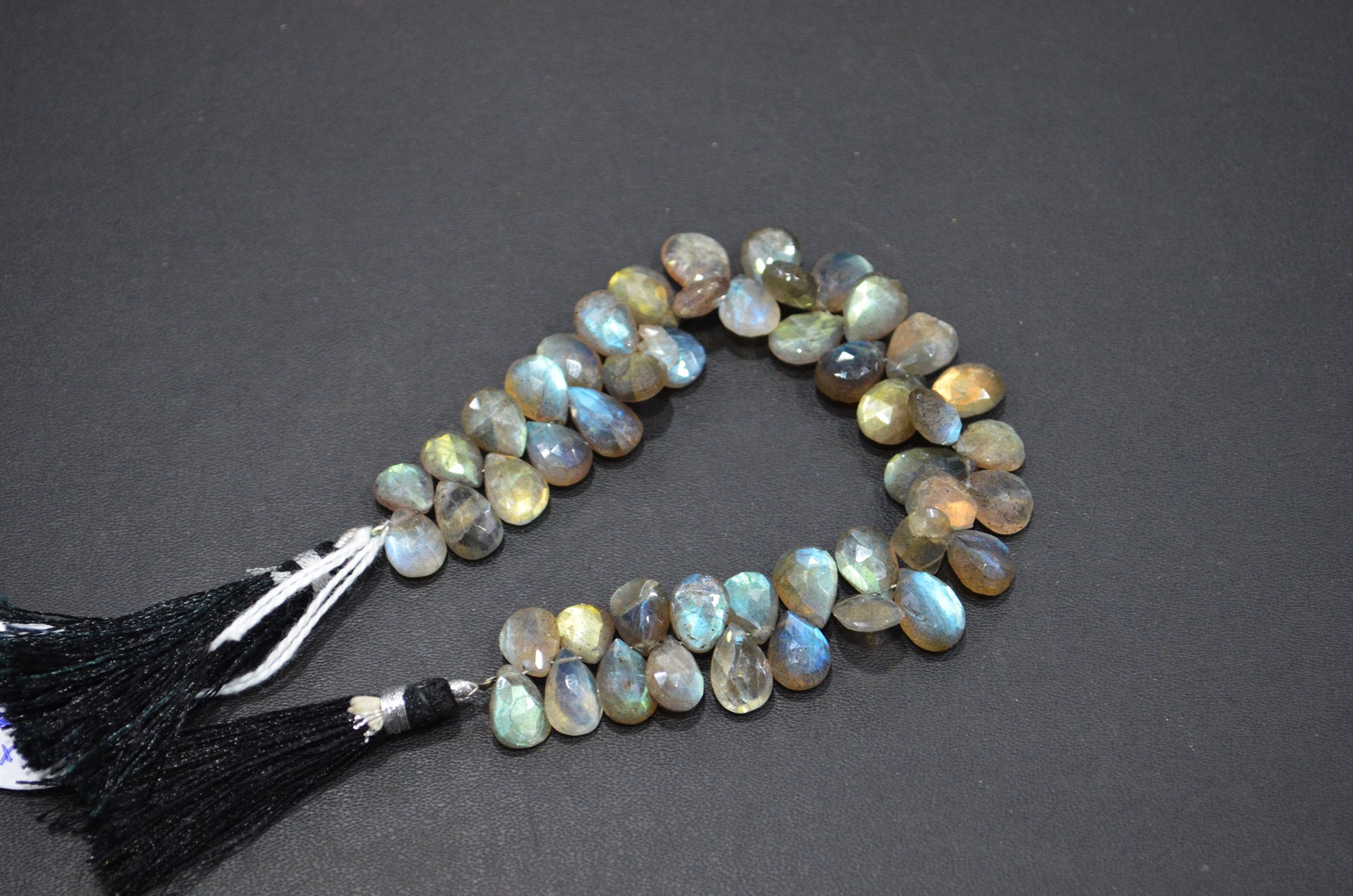Labradorite Pear Shape Beads , Labradorite Faceted Briolettes , 7 Inches , 7.50x9 - 8x11 mm , 32462
