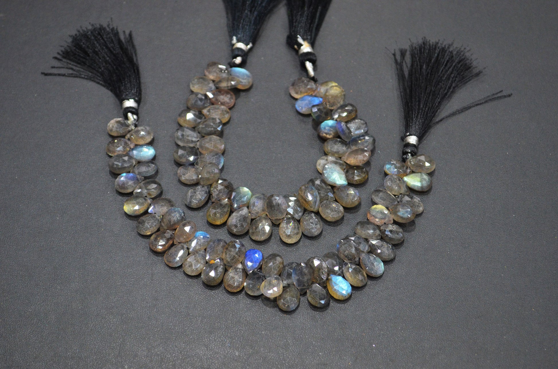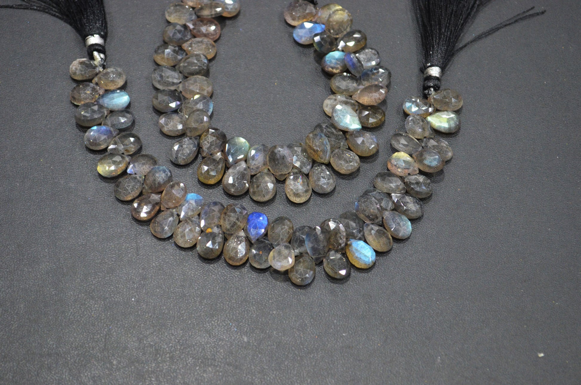 Labradorite Pear Shape Beads , Labradorite Faceted Briolettes , Sold By Strand , 7 Inches , 7x10 - 8x11 mm , 32327