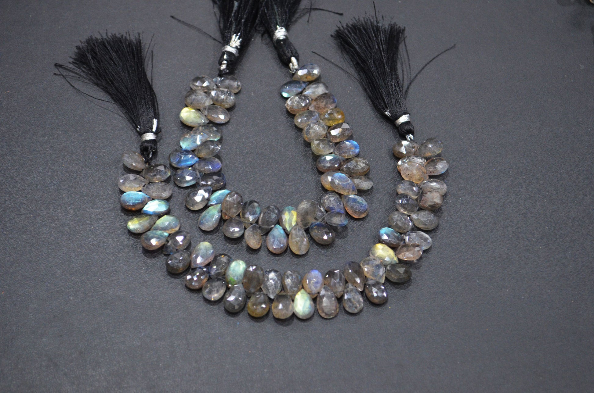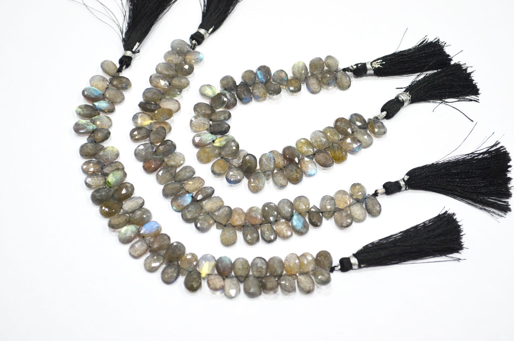 Labradorite Pear Shape Beads , Labradorite Faceted Briolettes , Sold By Strand , 7 Inches , 7x9 - 7x12 mm , 32325