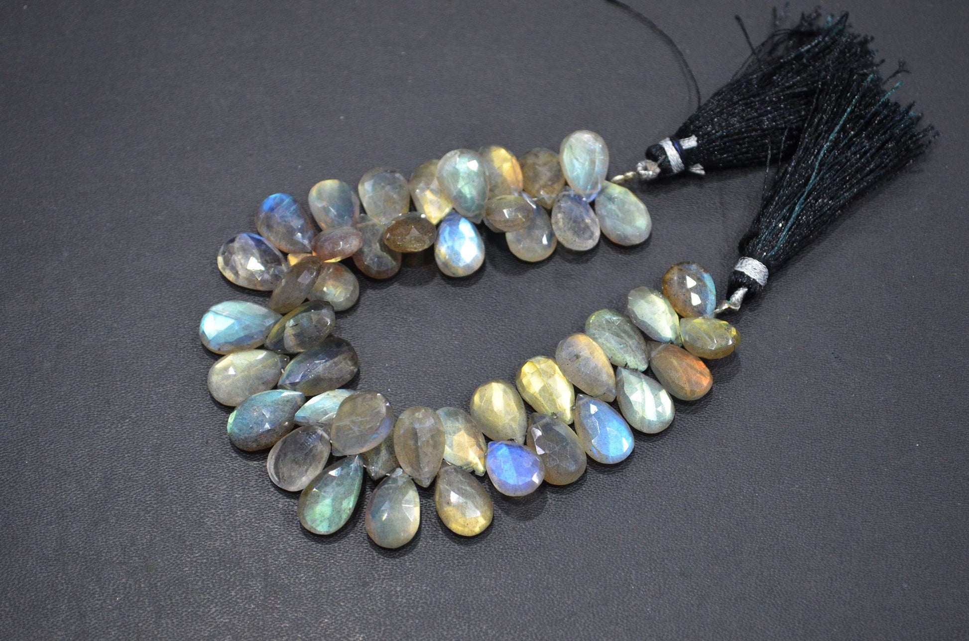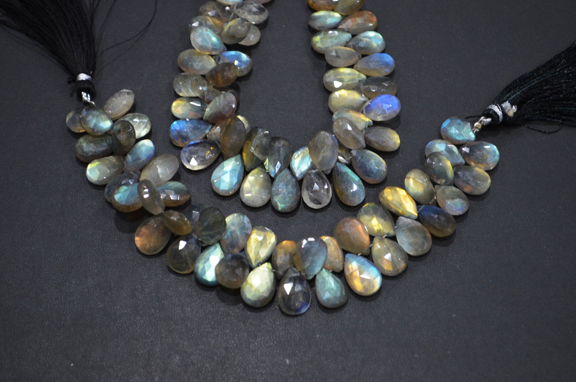 Labradorite Pear Shape Beads , Labradorite Faceted Briolettes , Sold By Strand , 7 Inches , 9x12 - 10x15 mm , 32468