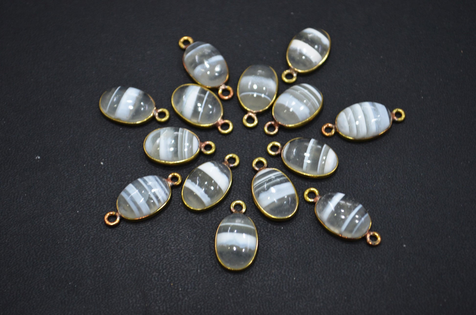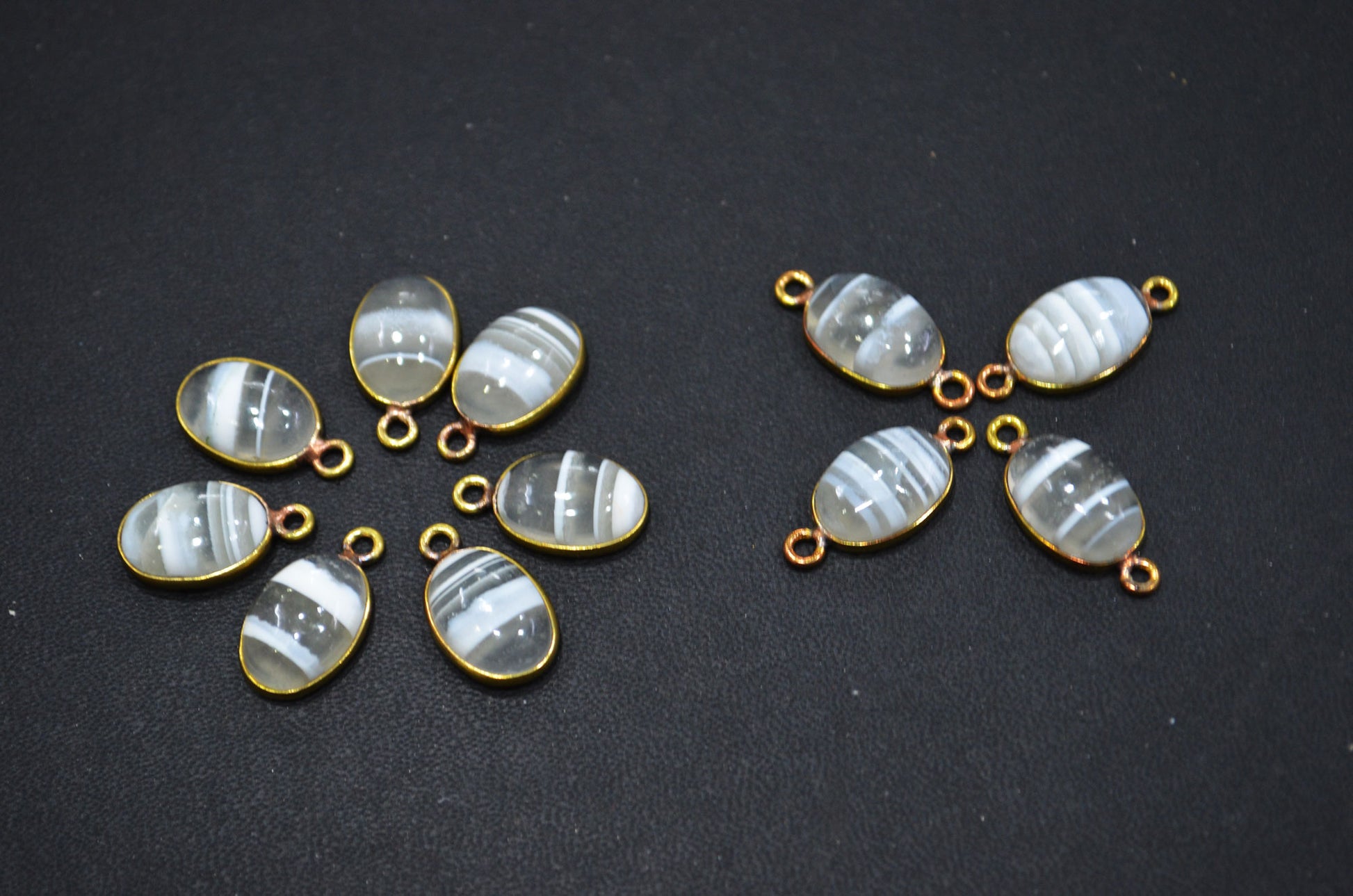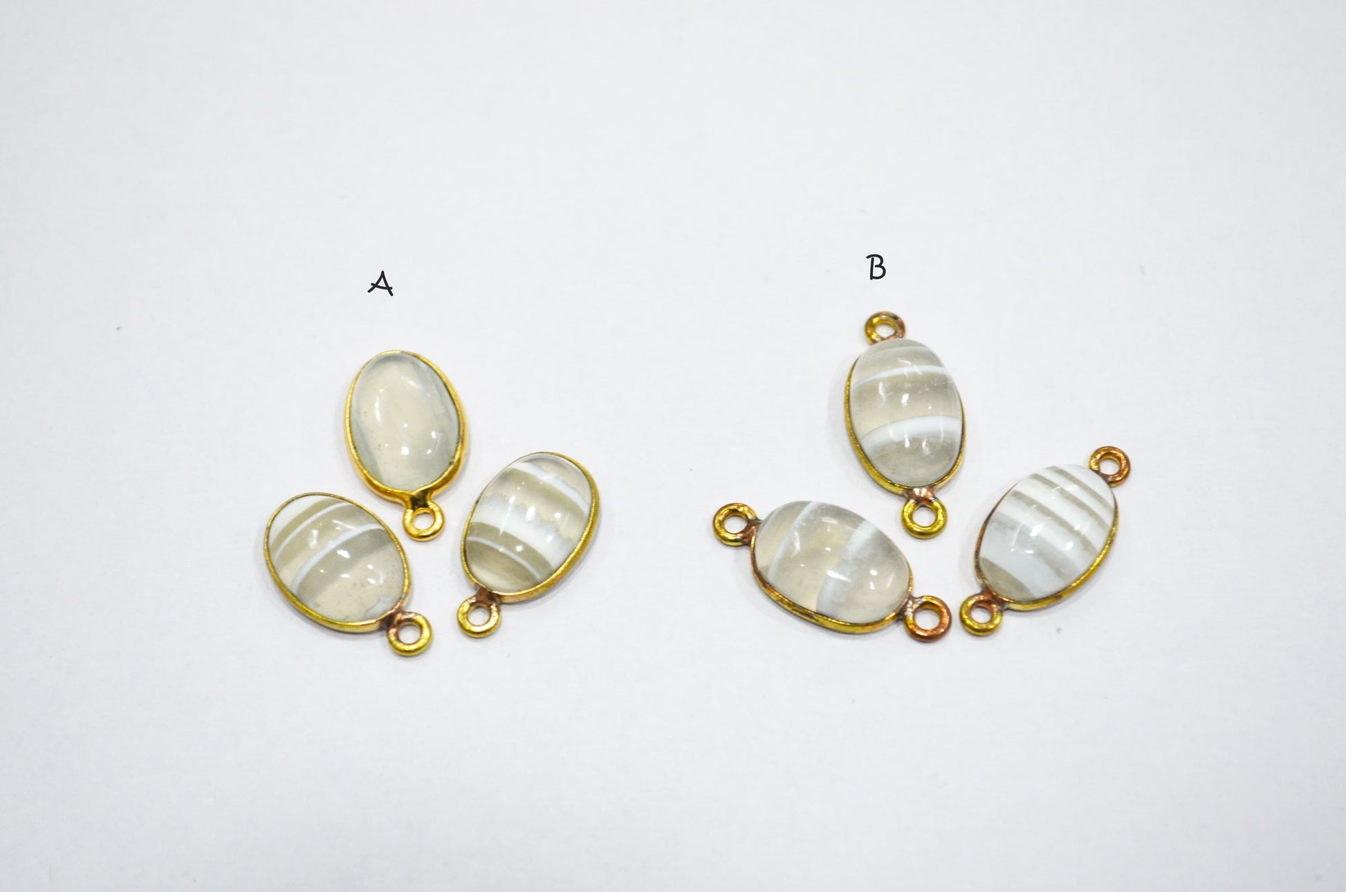 Lace Opal Smooth Oval Shape Single And Double Bail Connector , Lace Opal Cabochon Bezel Connector , Sold By Piece , 10x14 mm , RB-6236