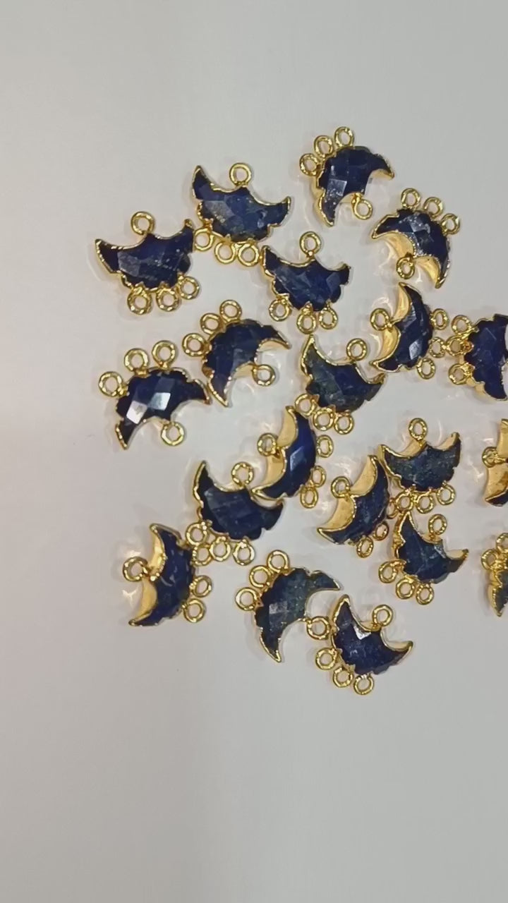 Lapis Lazuli Electroplated Half Moon Shape Connector , Lapis Lazuli Four Bail Faceted Connector Charm , Sold By Piece , 15 - 16 mm , 31915