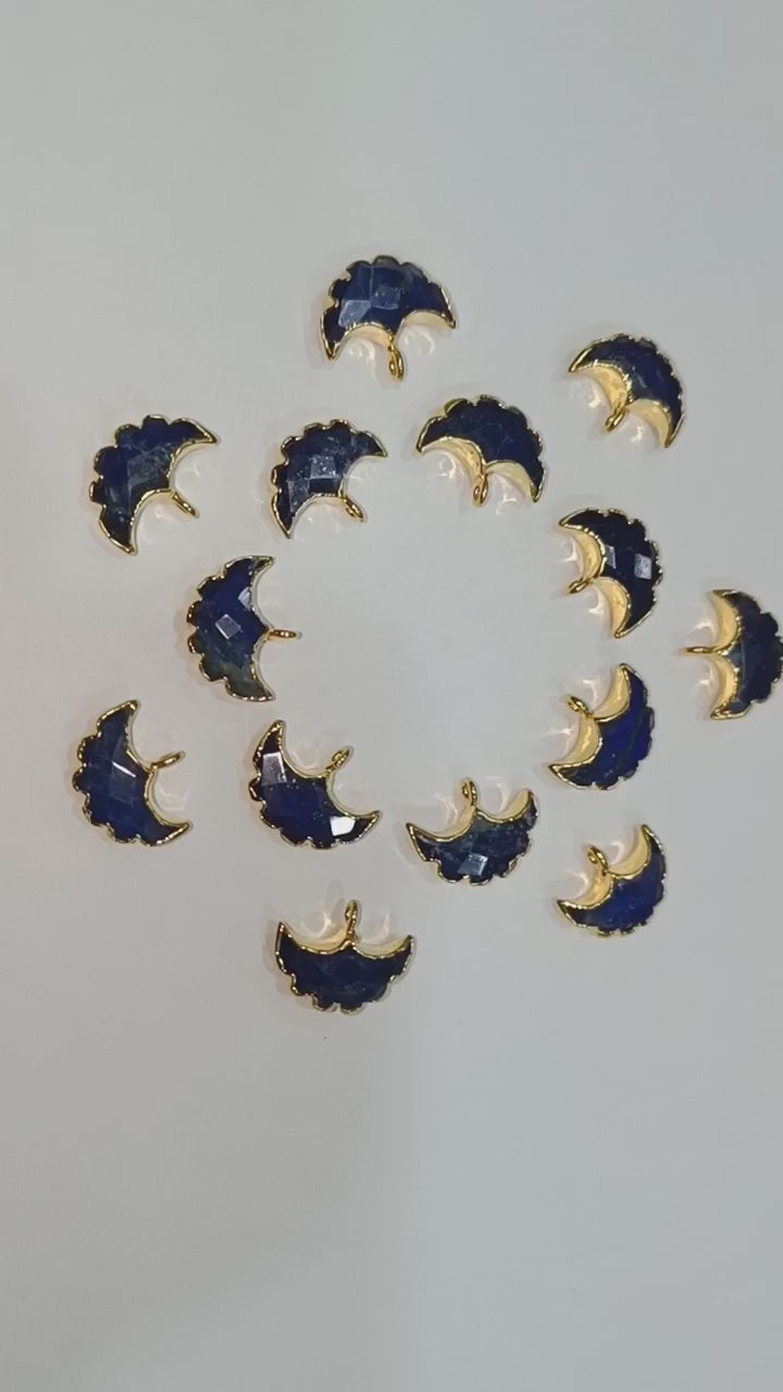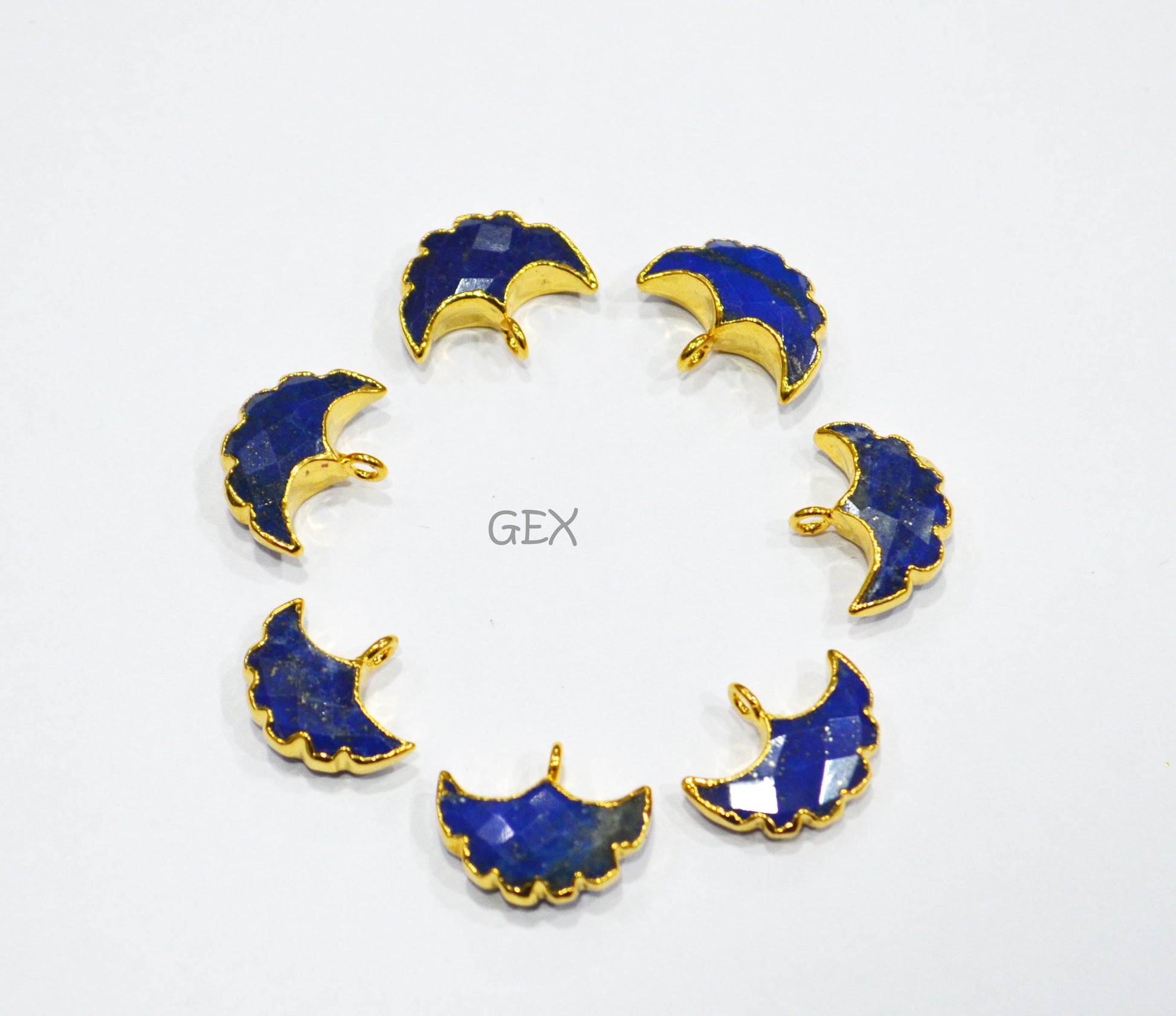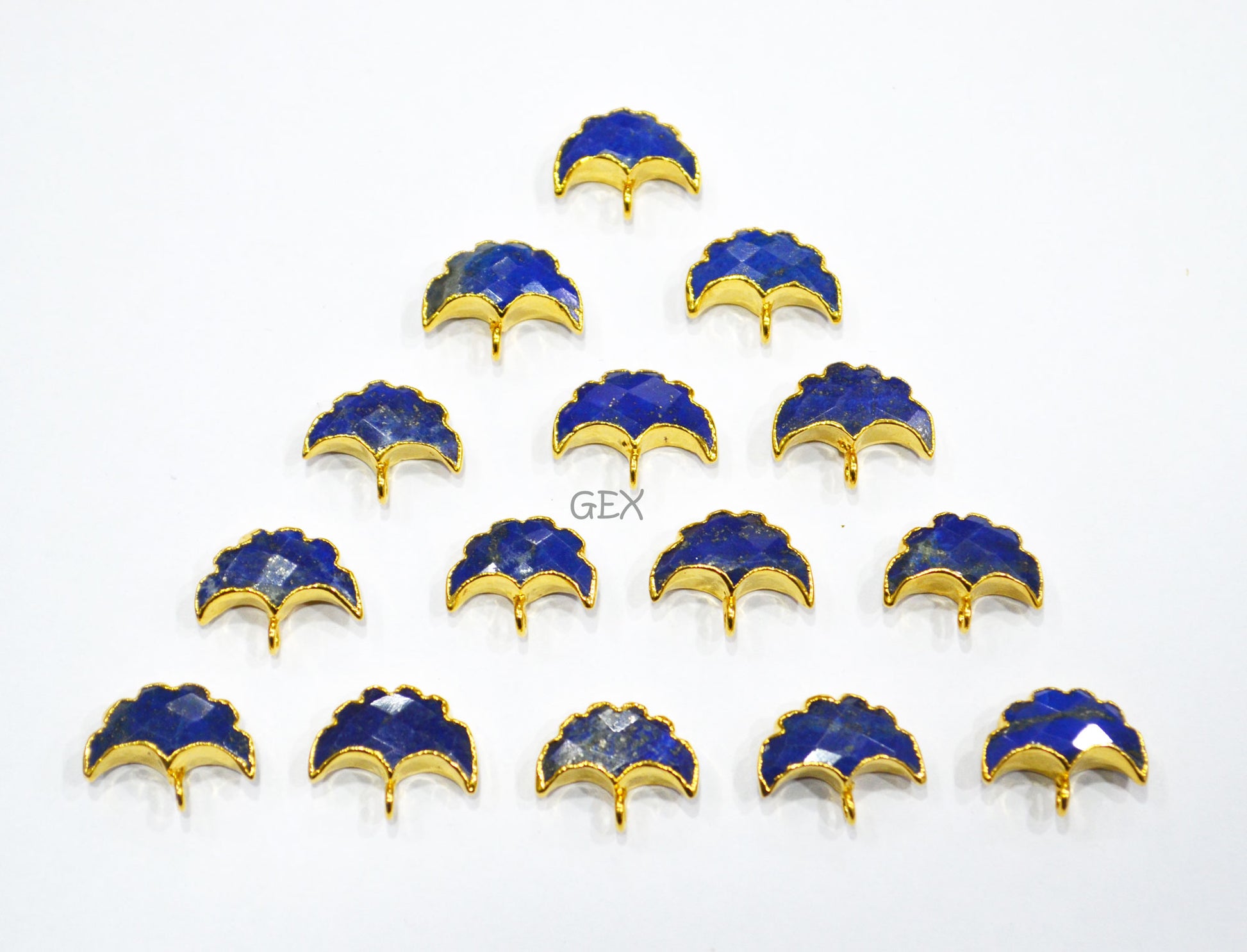 Lapis Lazuli Electroplated Half Moon Shape Connector , Lapis Lazuli Single Bail Faceted Connector Charm , Sold By Piece , 15 - 16 mm , 31936