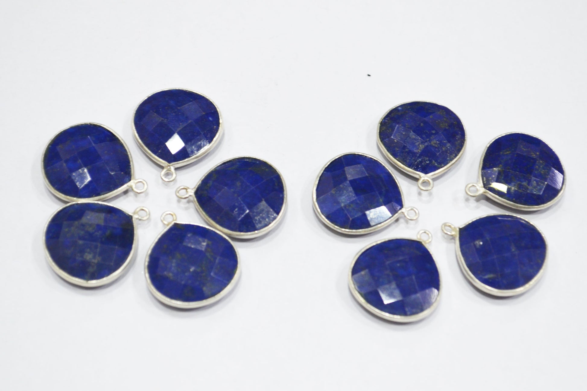 Lapis Lazuli Faceted Heart Shape Connector , Lapis Lazuli Single Bail Bezel Connector , Sold By Piece , 15 - 16 mm , RB-6403