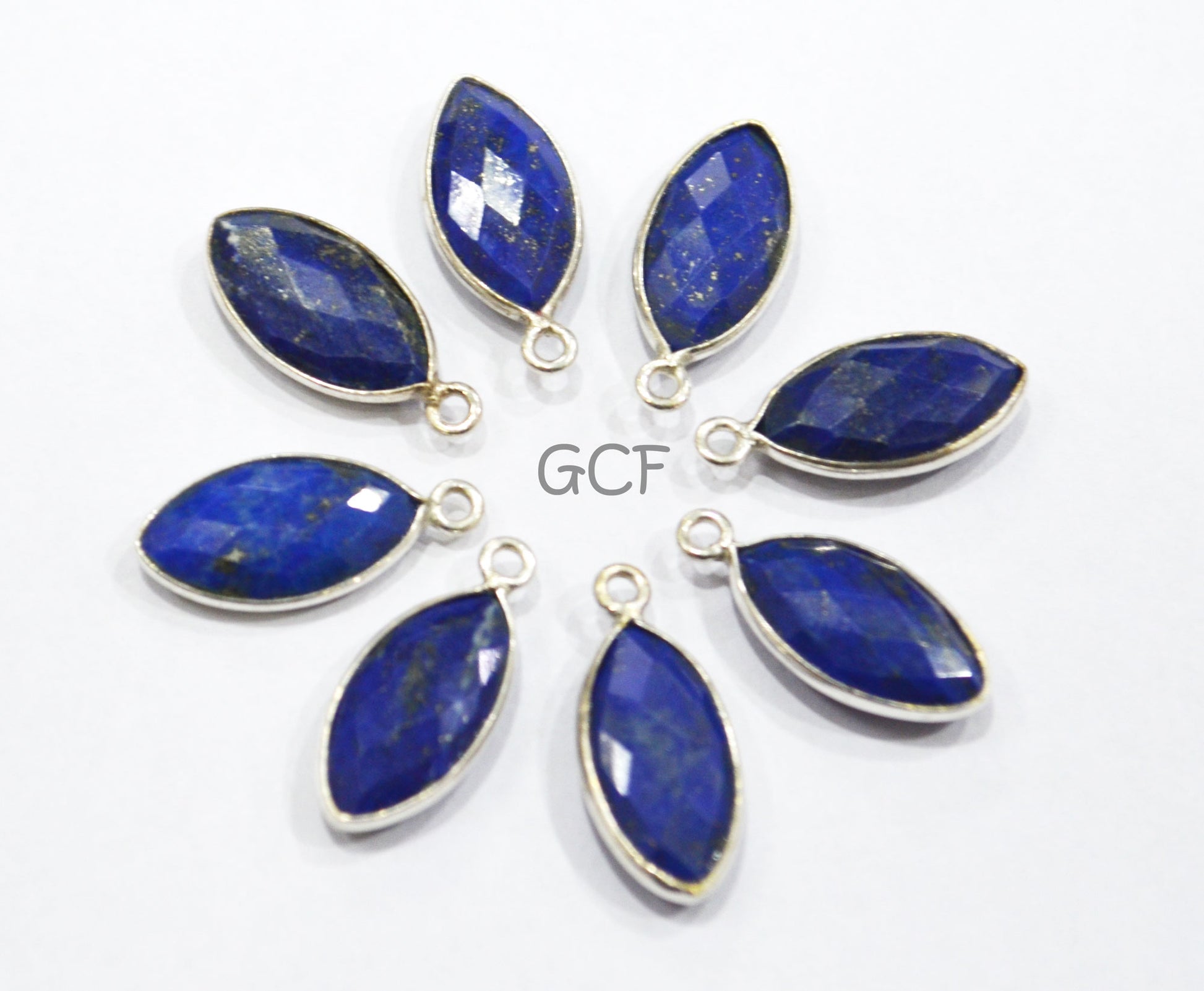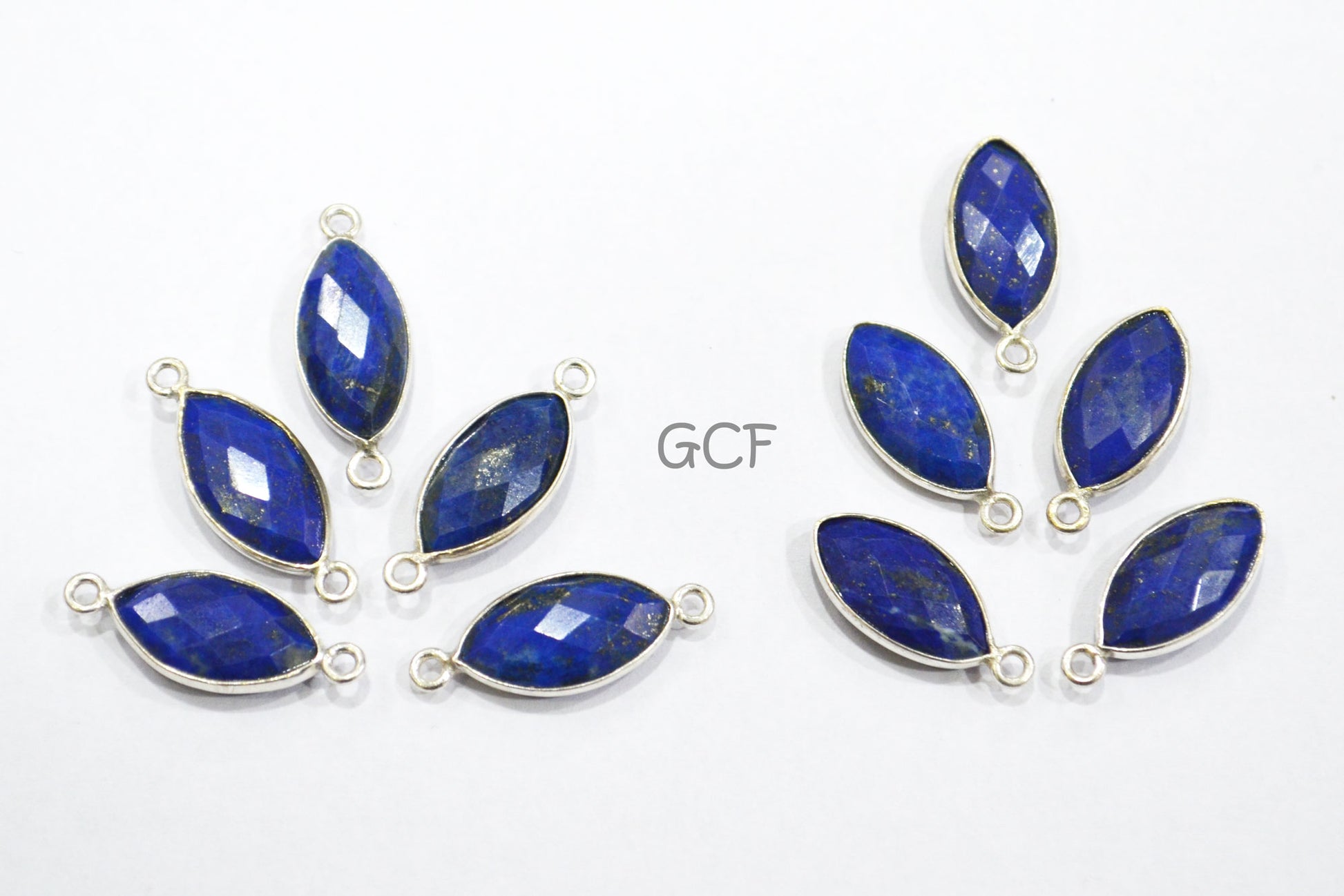 Lapis Lazuli Faceted Marquise Shape Connector , Lapis Lazuli Single And Double Bail Bezel Connector , Sold By Piece , 8x15 mm , RB-7054