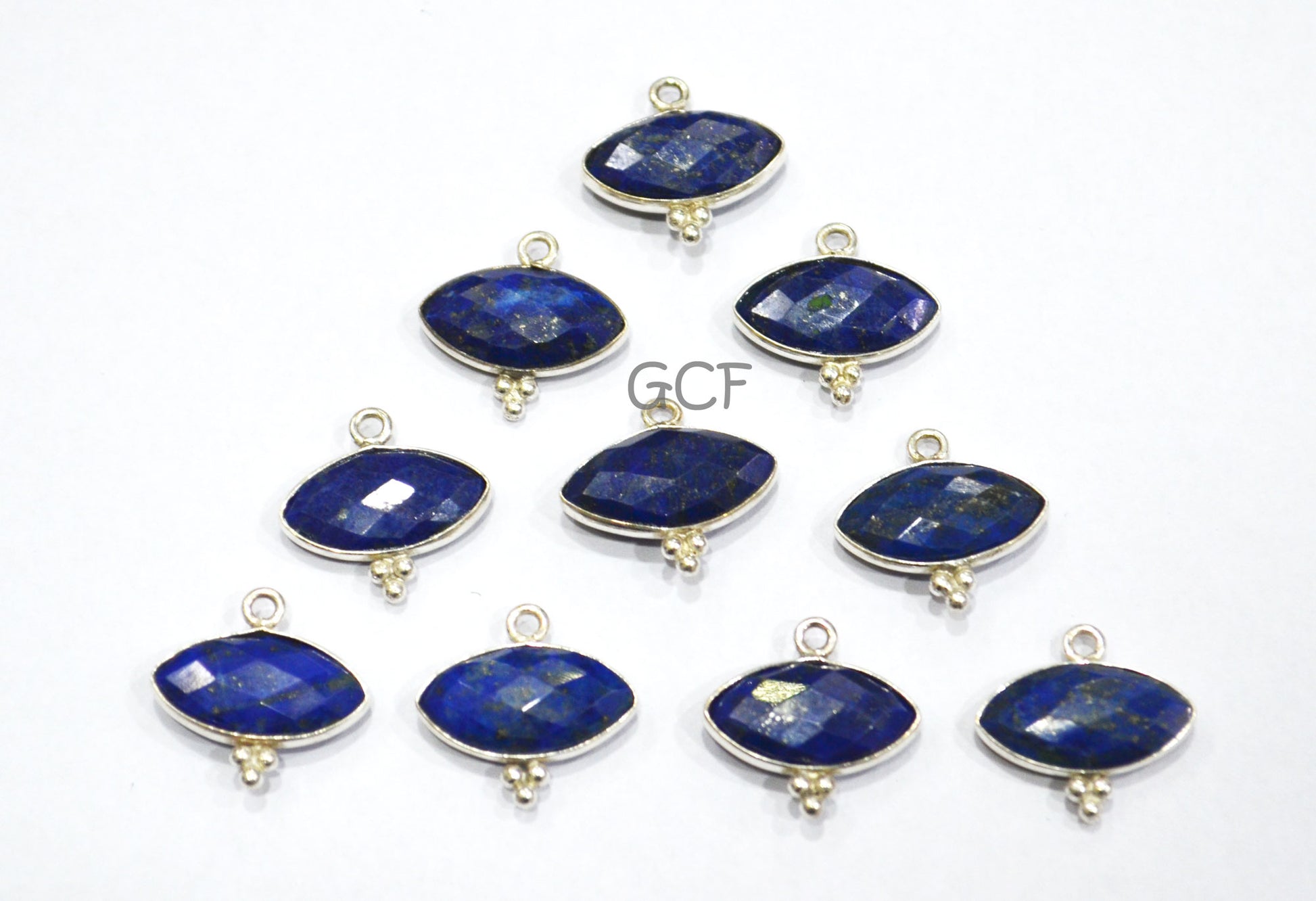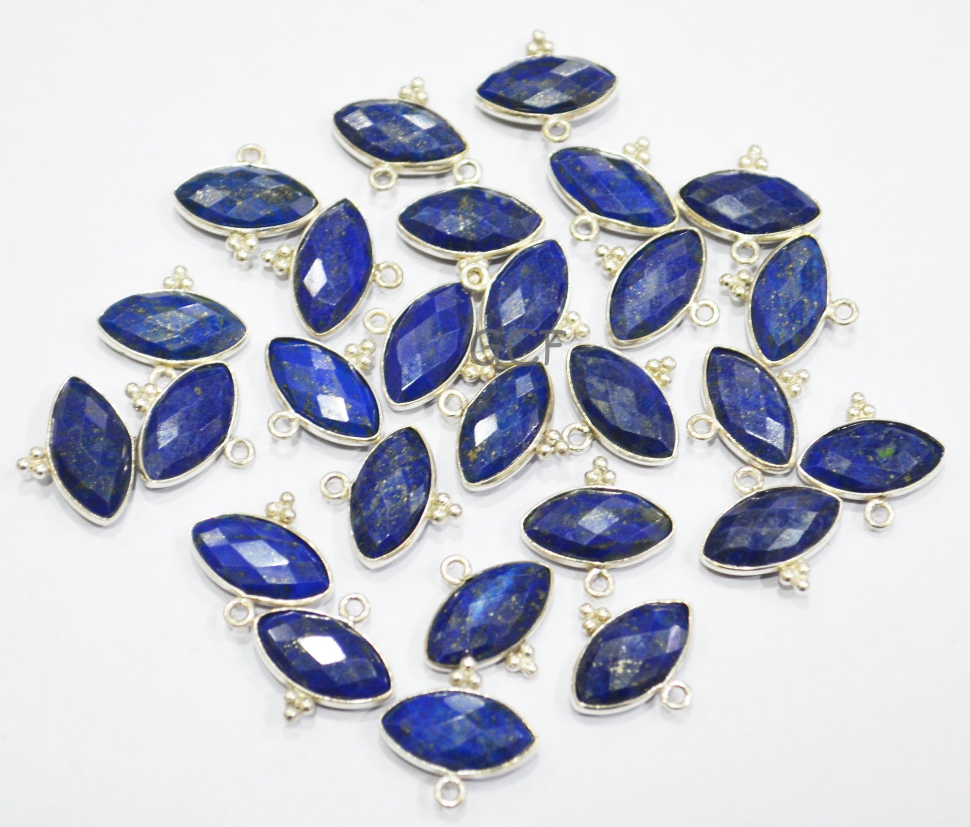 Lapis Lazuli Faceted Marquise Shape Connector , Lapis Lazuli Single Bail Bezel Connector , Sold By Piece , 8x15 mm , RB-7055
