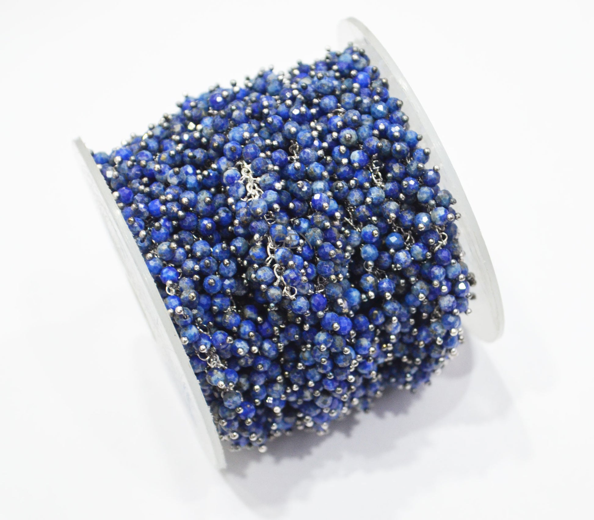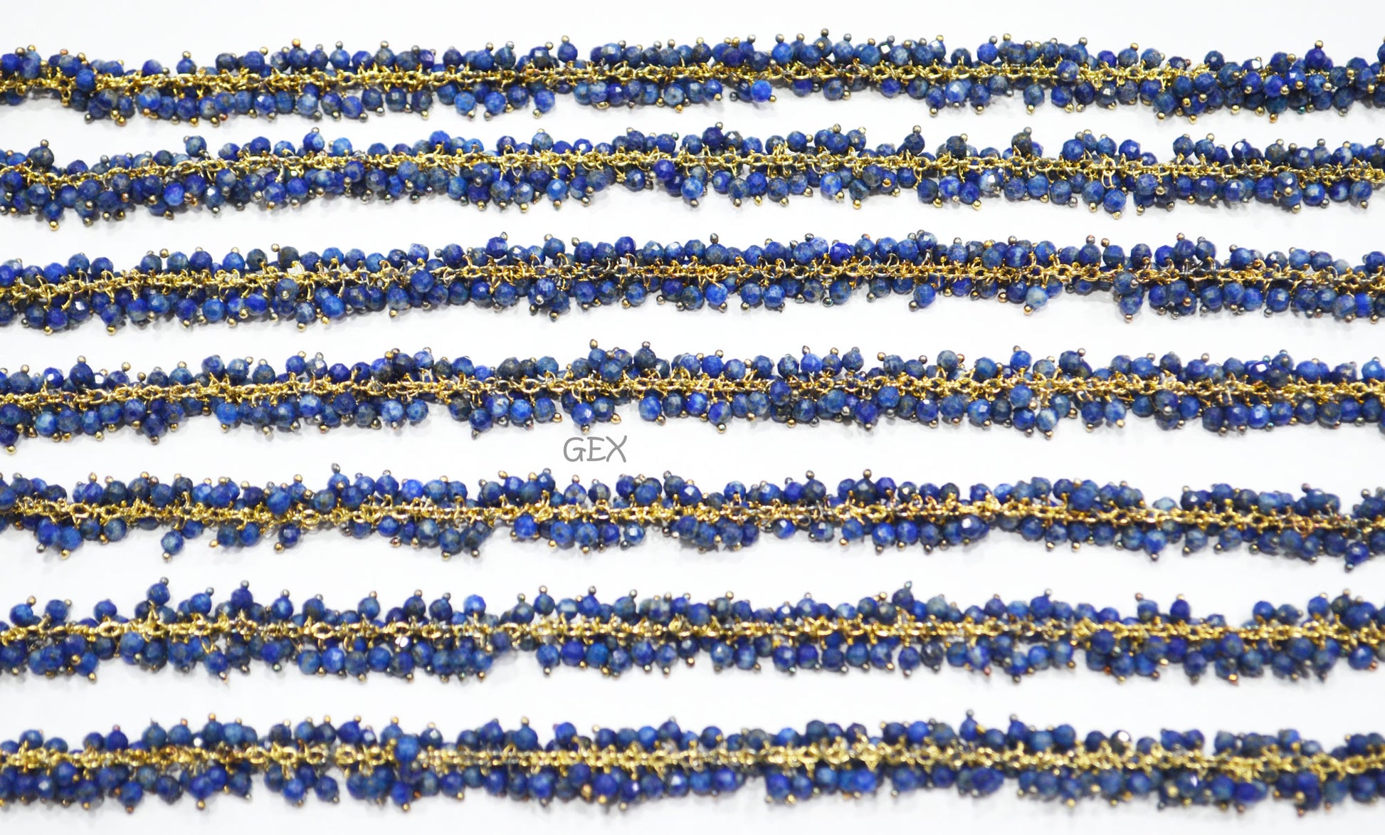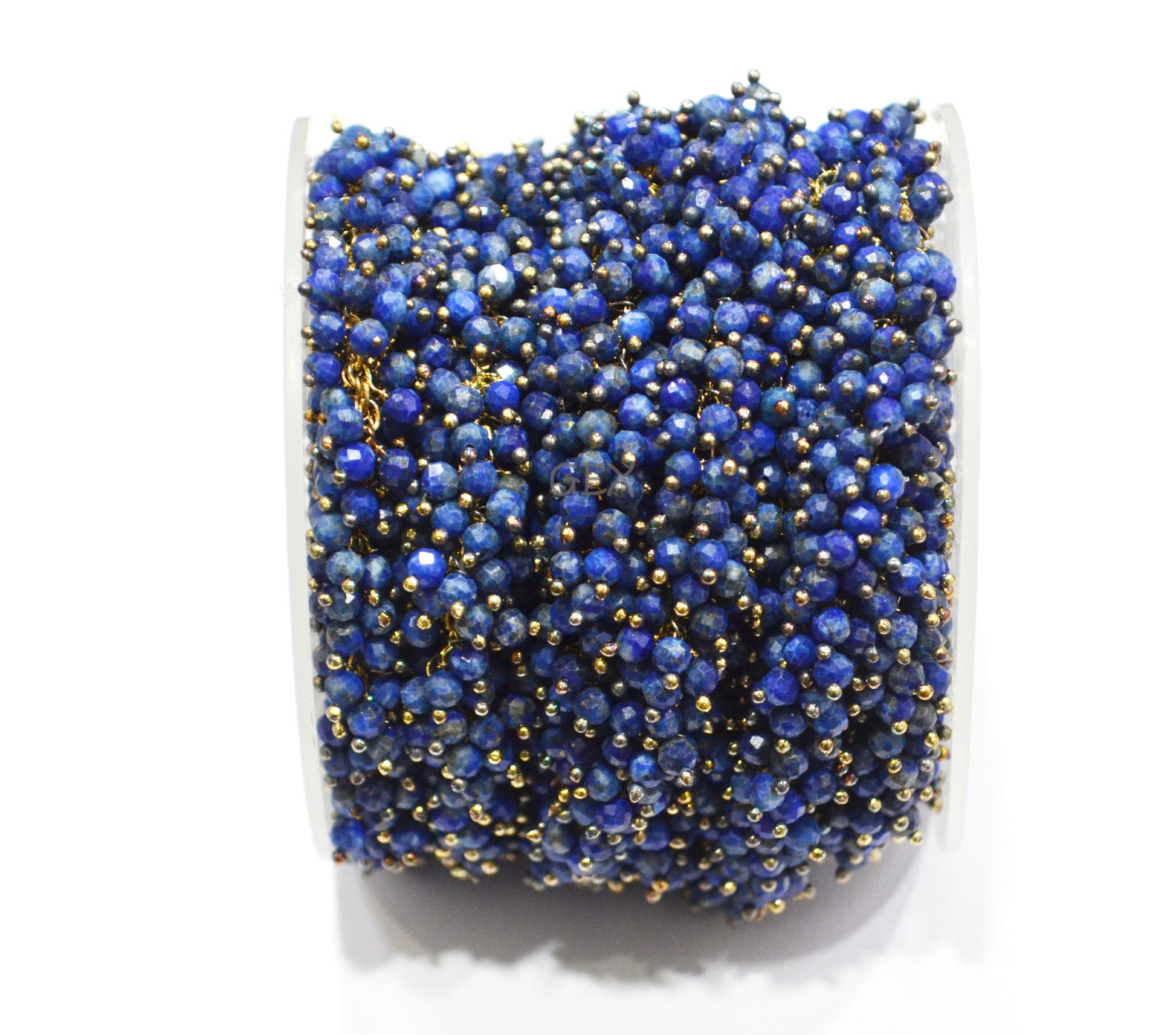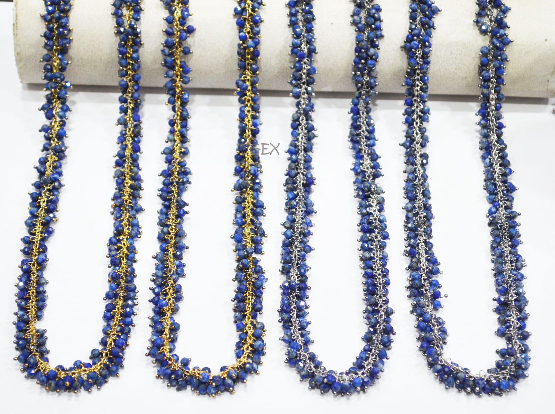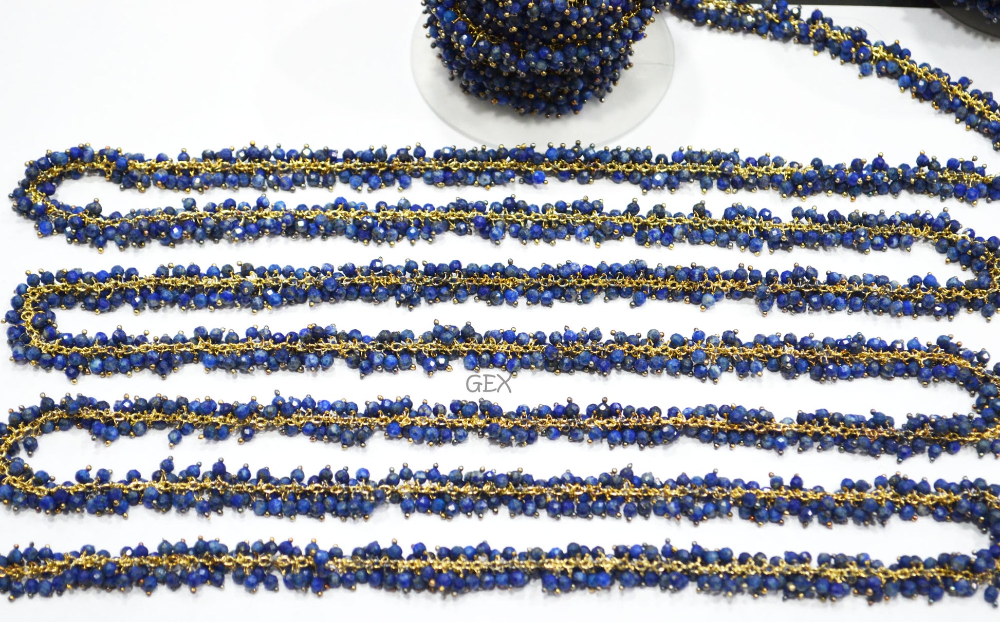 Lapis Lazuli Faceted Round Shape Grape Chain , Lapis Lazuli Angoori Cluster Wire Wrapped Chain , 3 mm , 7248