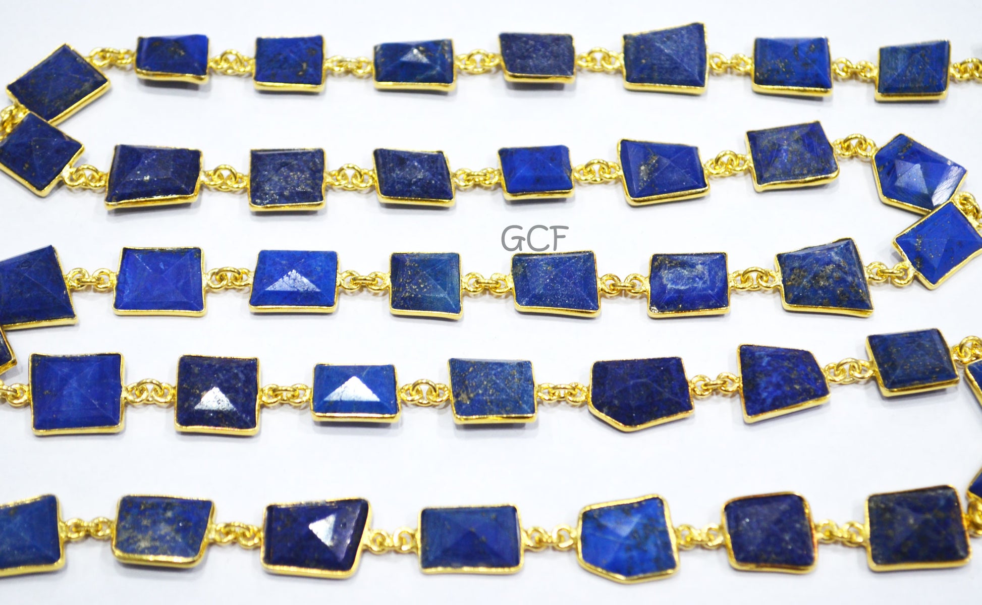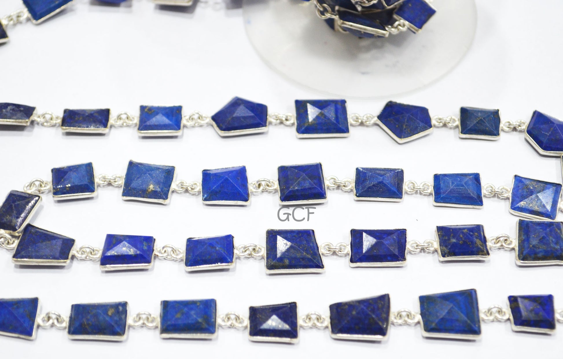 Lapis Lazuli Fancy Cut Faceted Connector Chain , Lapis Lazuli Fancy Cut Bezel Link ChainΒ , 10x11 - 14x15 mm , 6898
