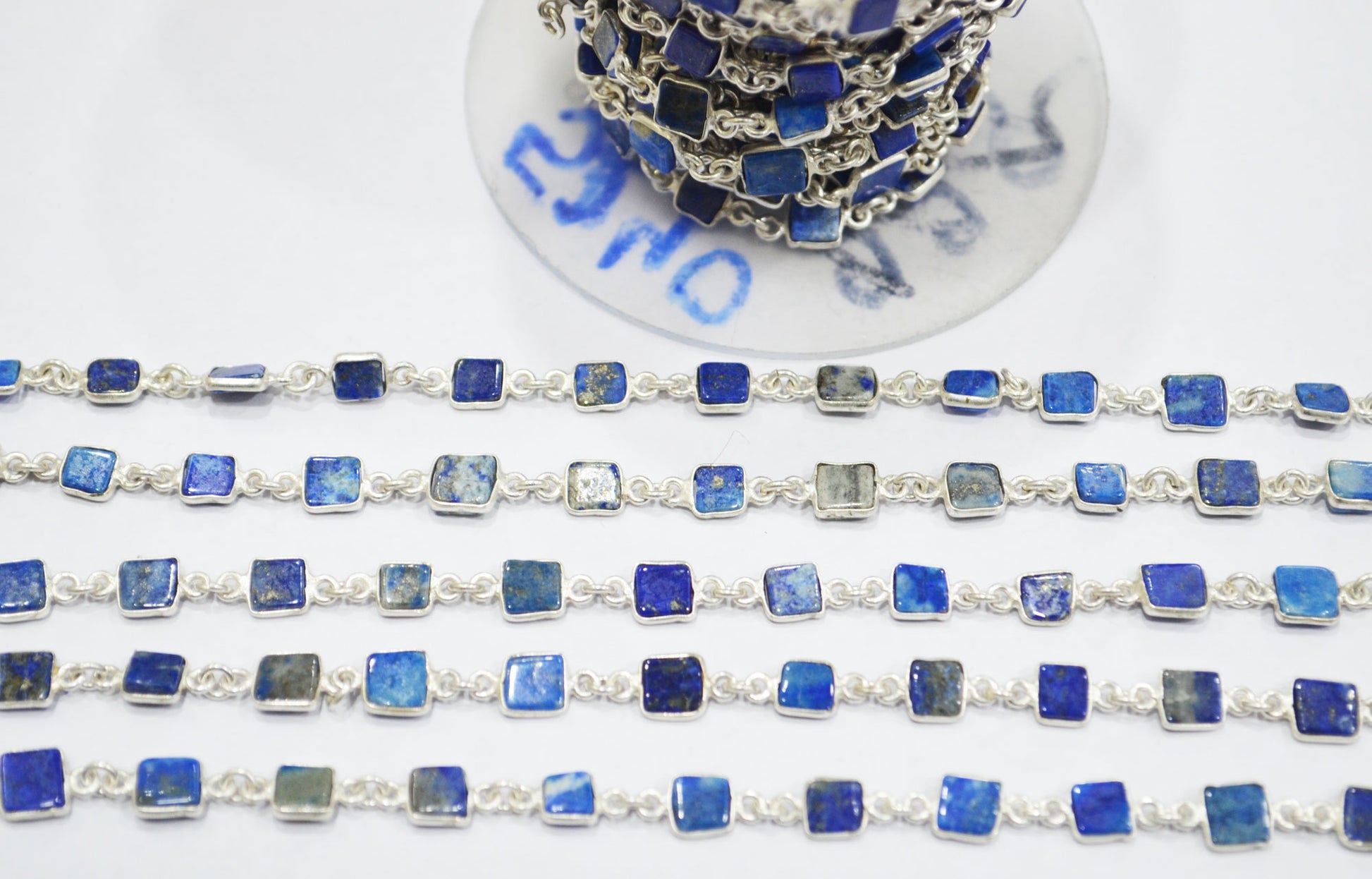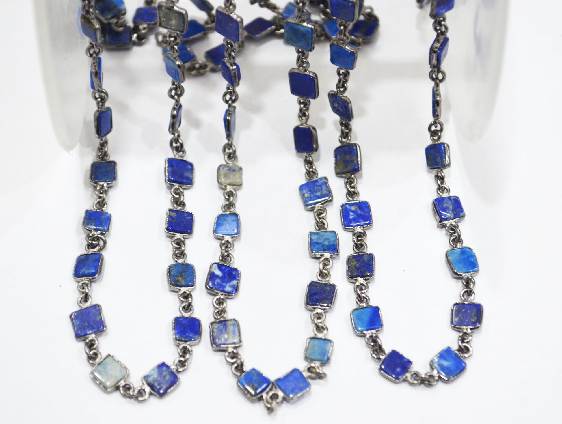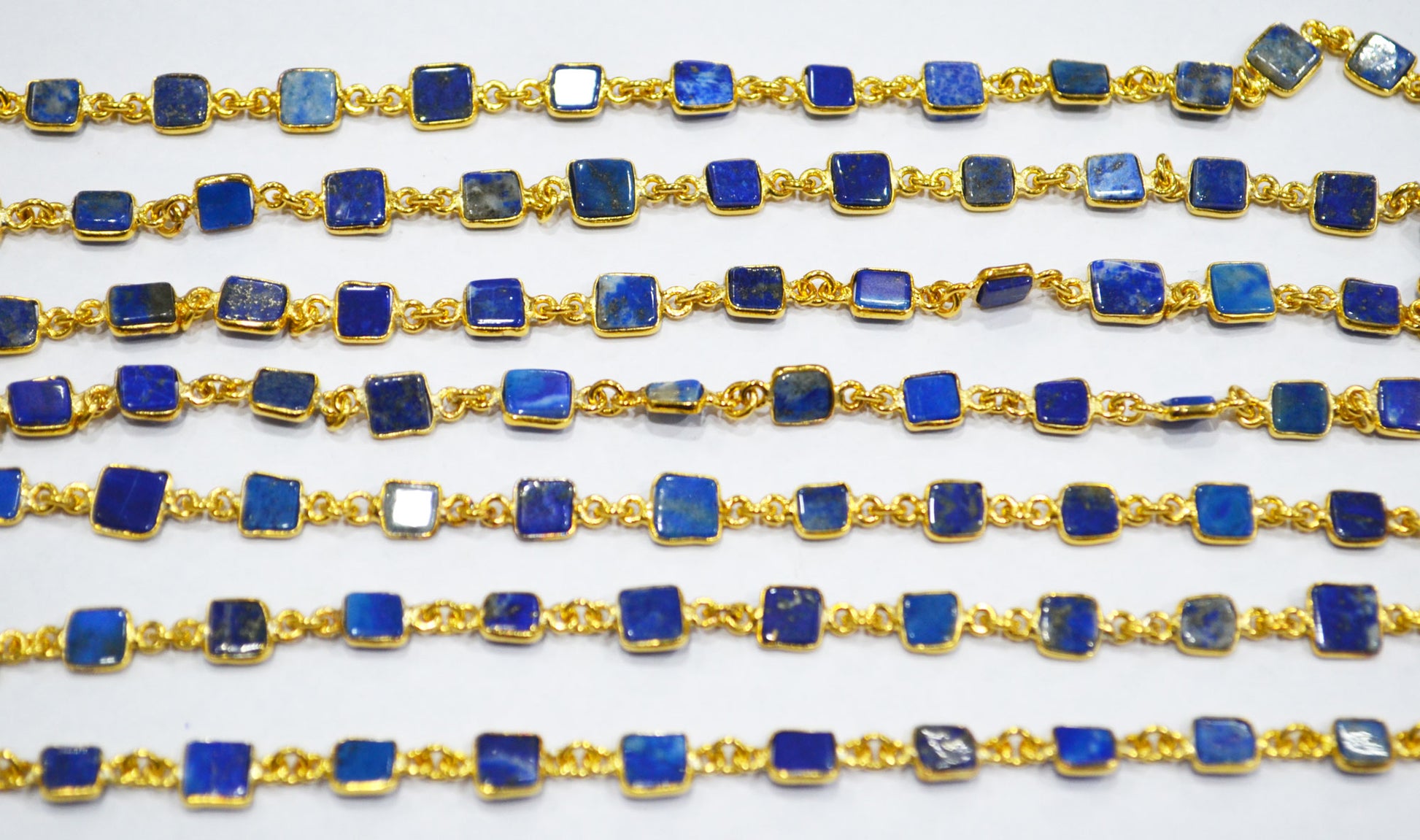 Lapis Lazuli Smooth Flat Square Shape Connector Chain , 5 - 6 mm , RB-6726