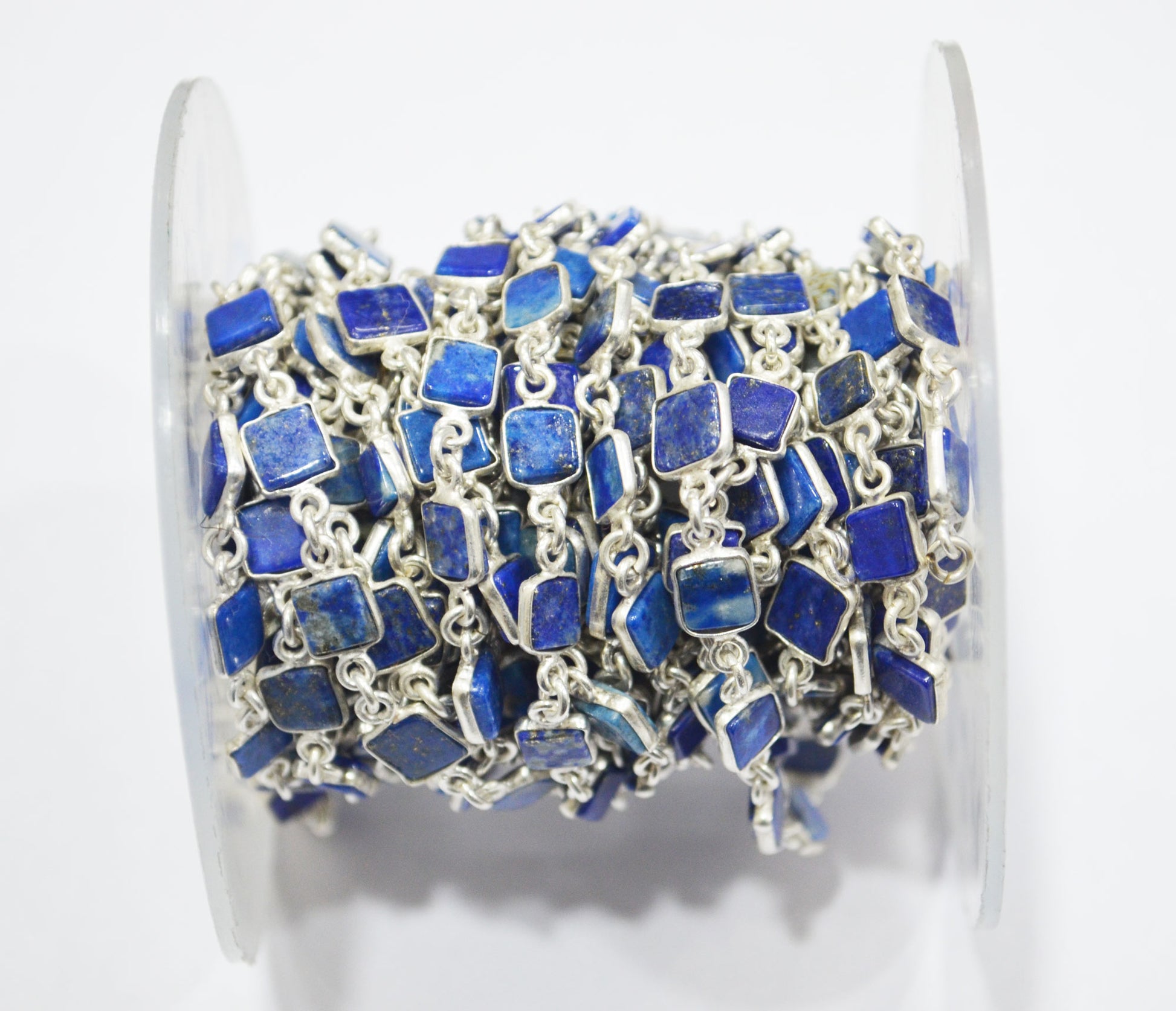 Lapis Lazuli Smooth Flat Square Shape Connector Chain , Lapis Lazuli Bezel Link Chain , 5 - 6 mm , RB-6726