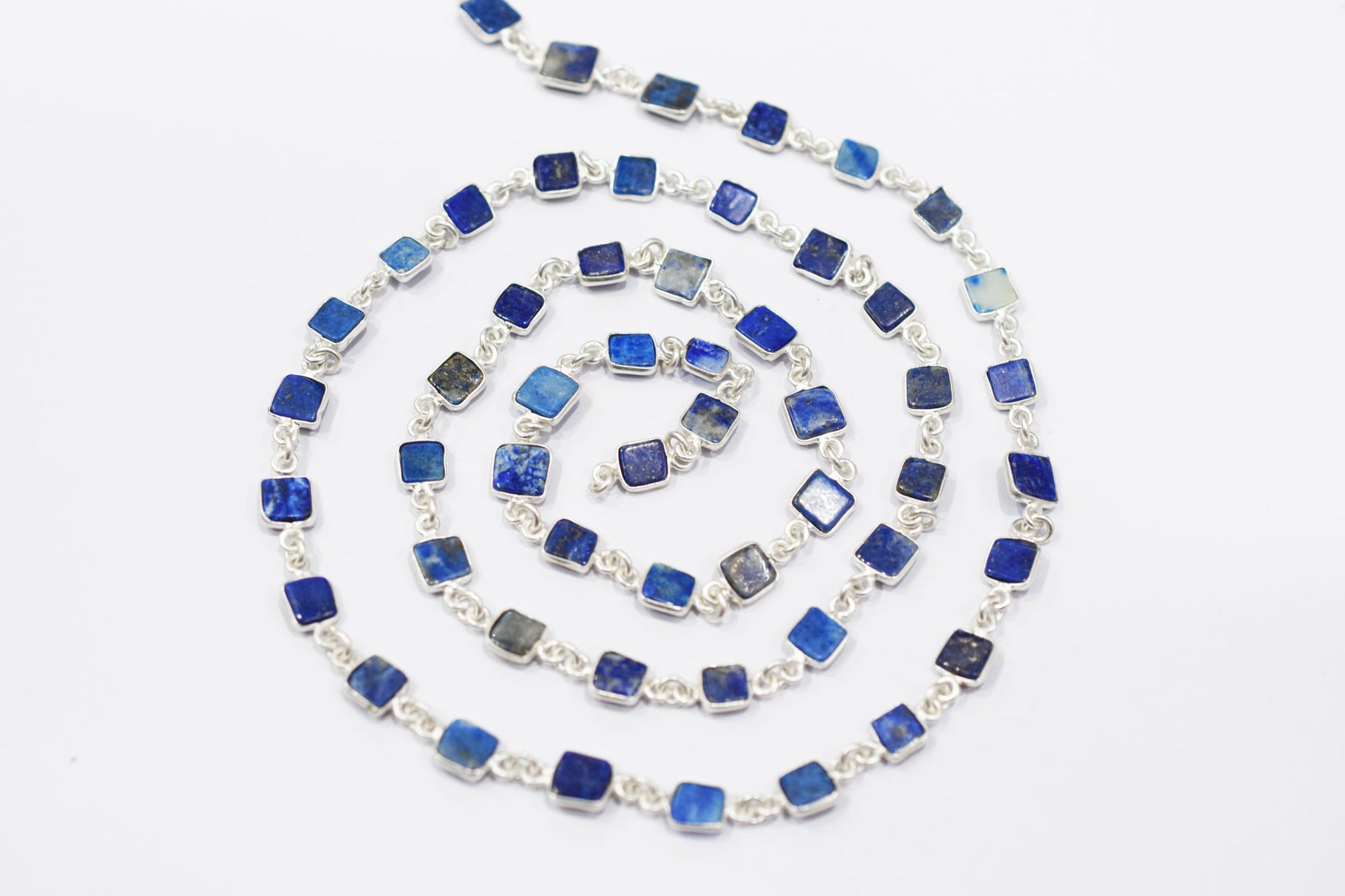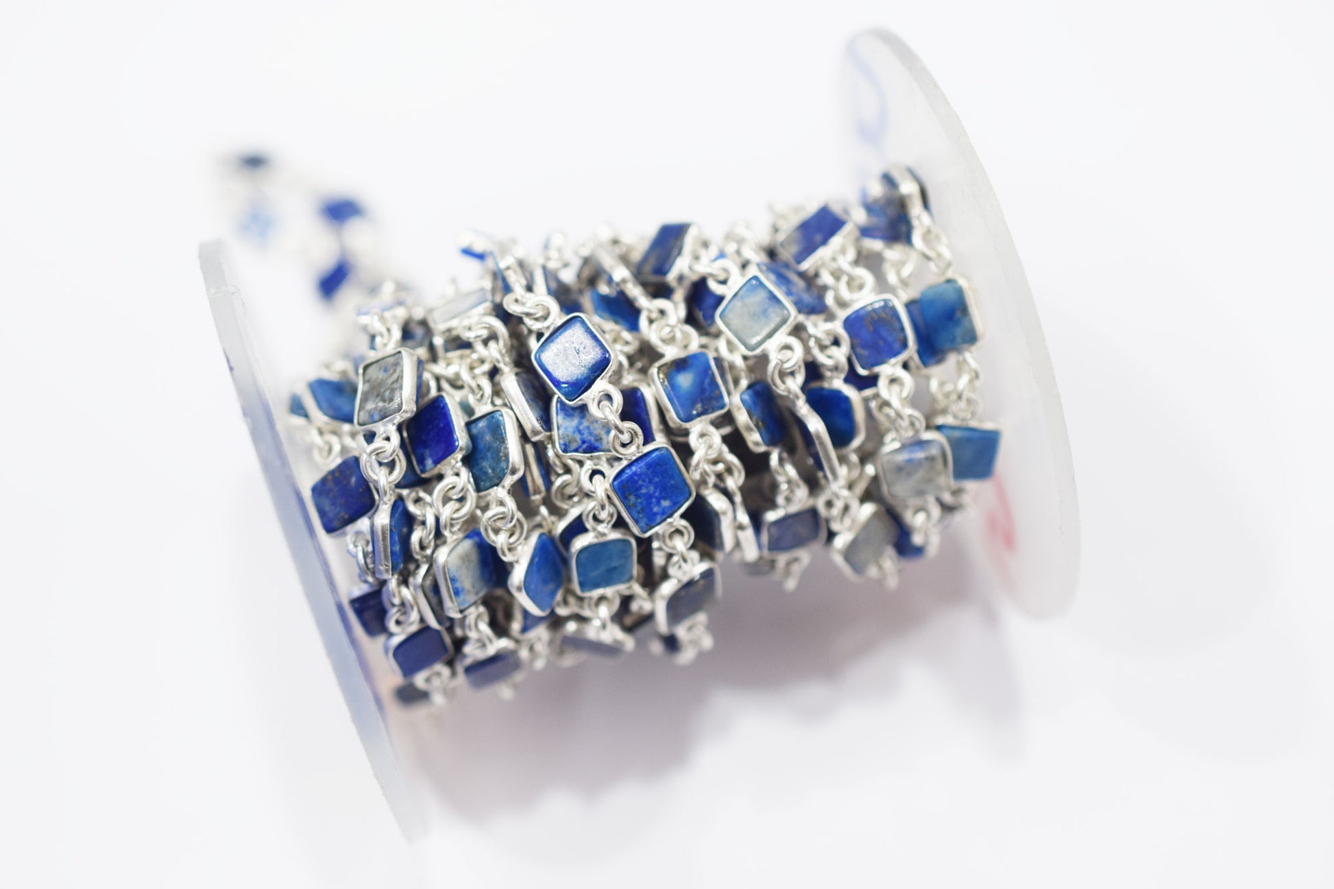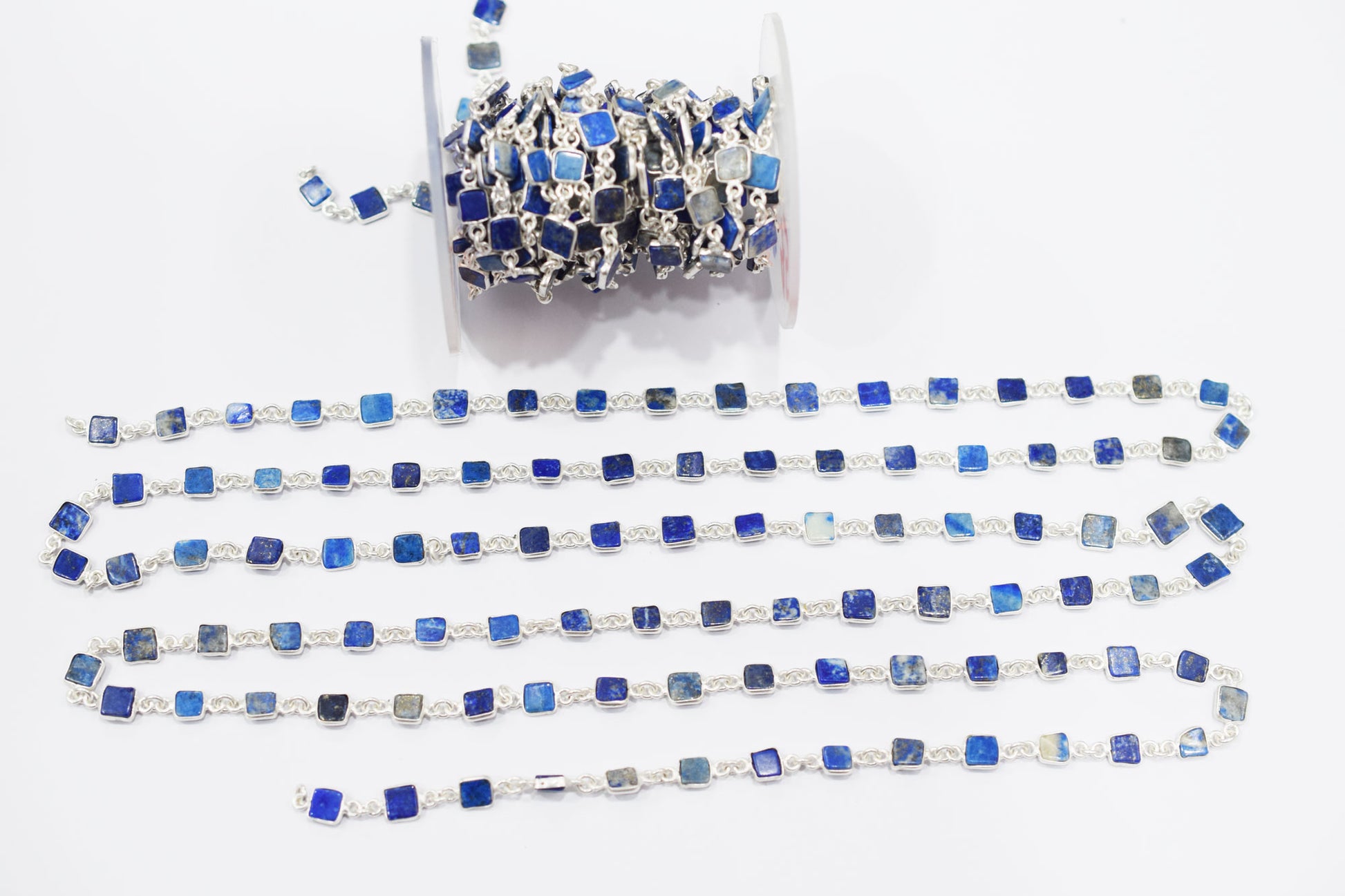 Lapis Lazuli Smooth Flat Square Shape Connector Chain , Lapis Lazuli Bezel Link Chain , 6 - 7 mm , RB-6692