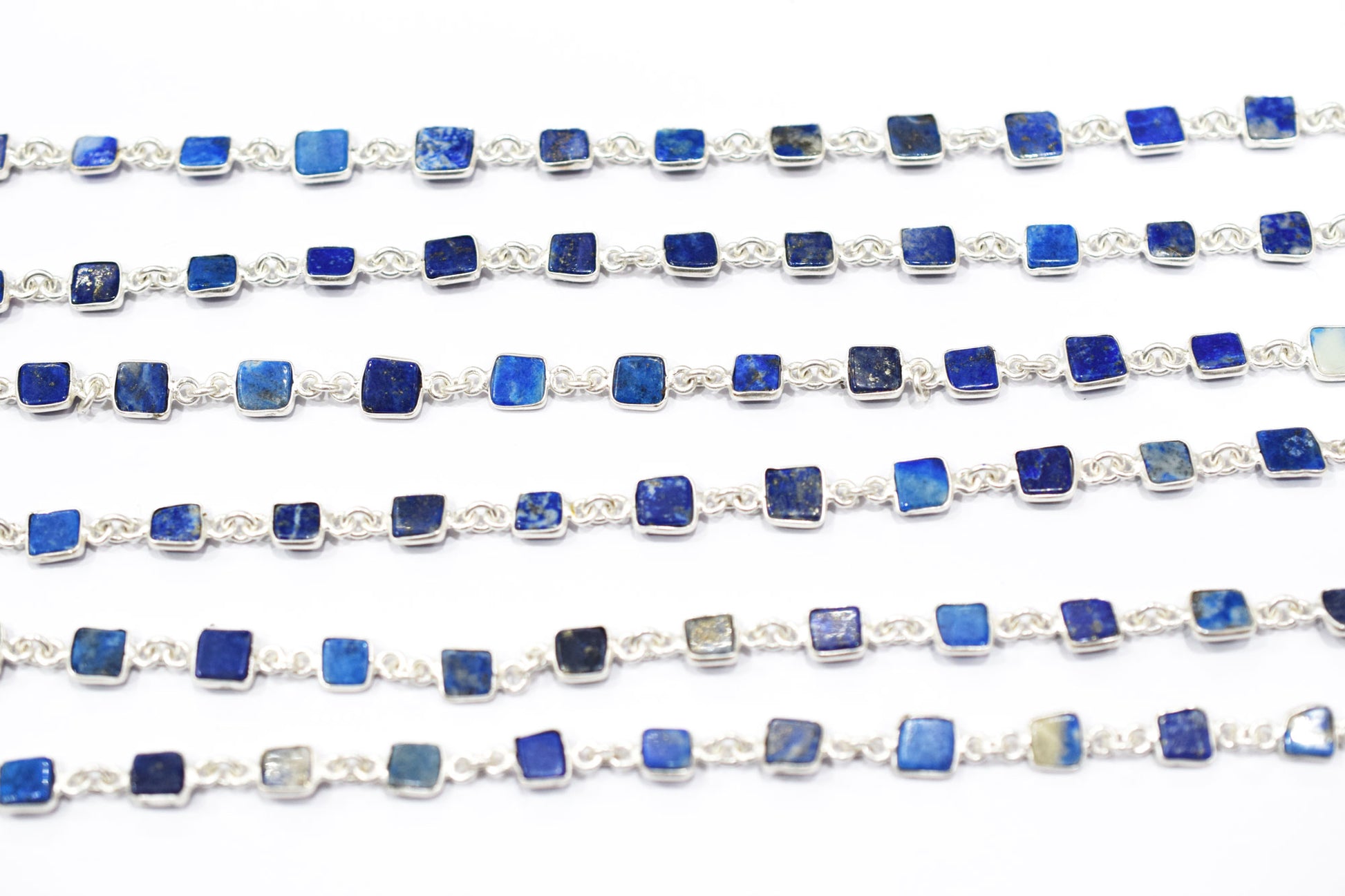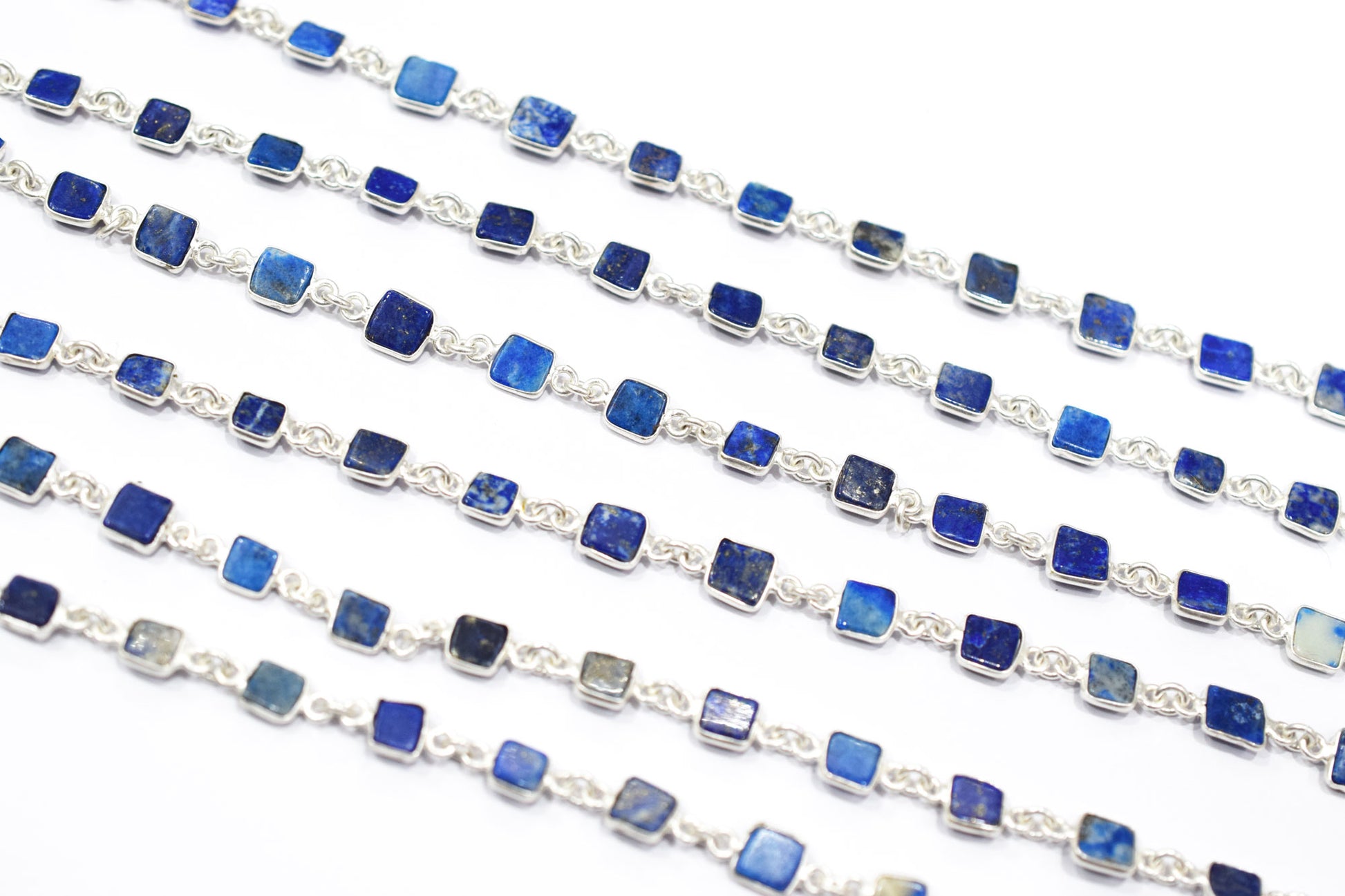 Lapis Lazuli Smooth Flat Square Shape Connector Chain , 6 - 7 mm , RB-6692