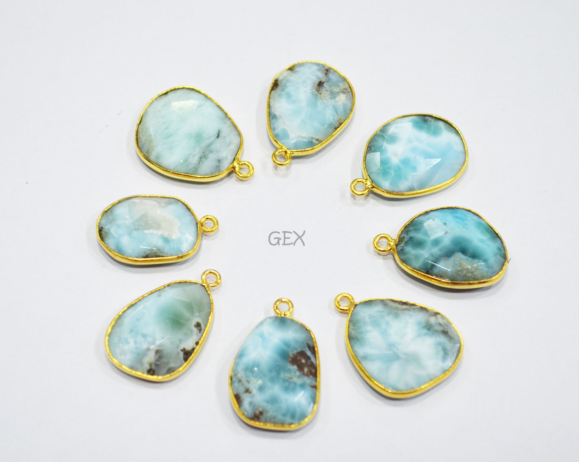Larimar Faceted Free Form Shape Connector , Larimar Slice Shape Single Bail Bezel Connector , Sold By Piece , 17 - 26 mm , RB-7131