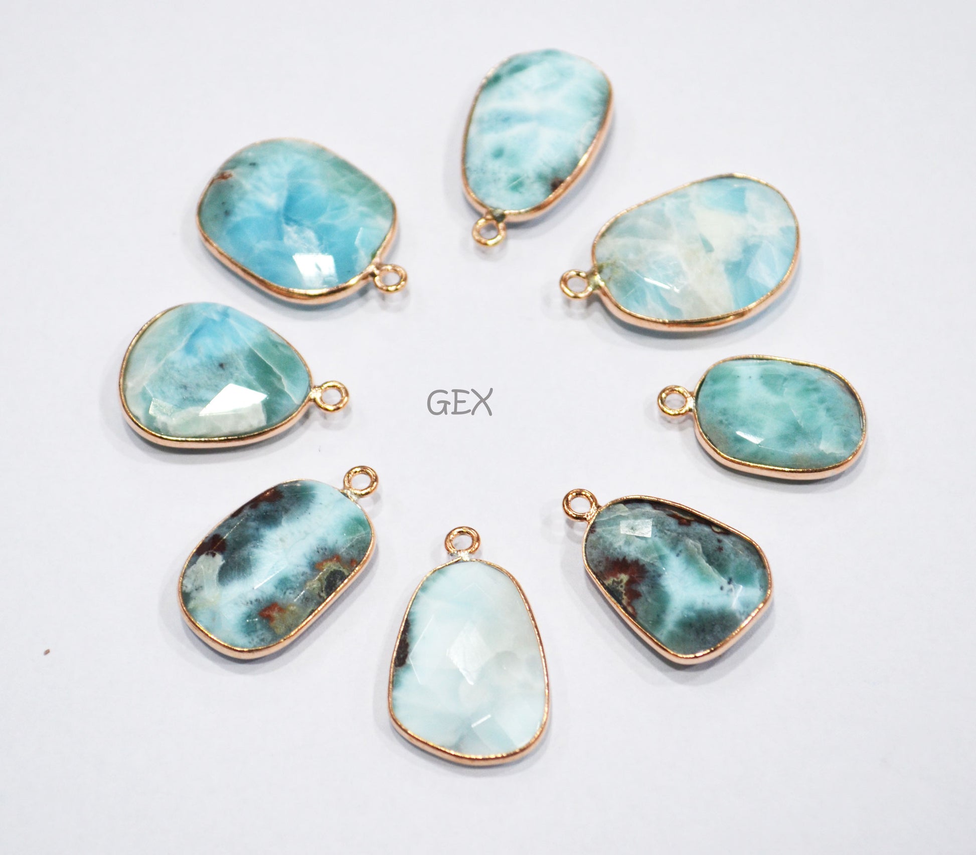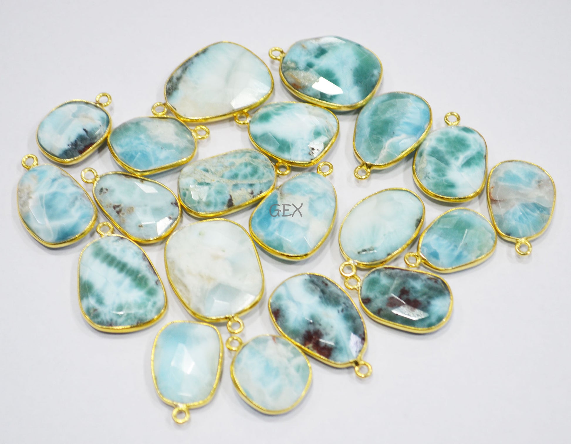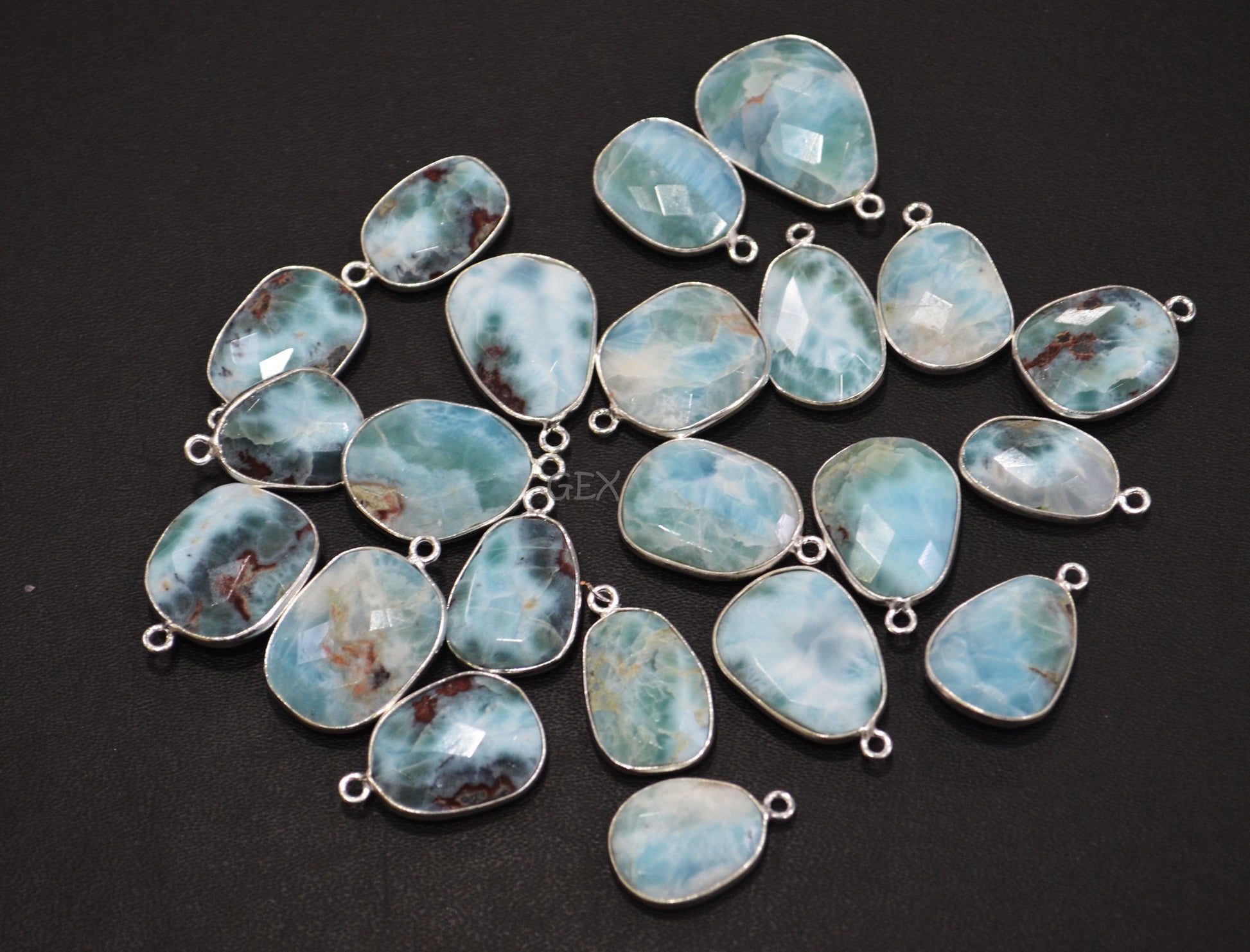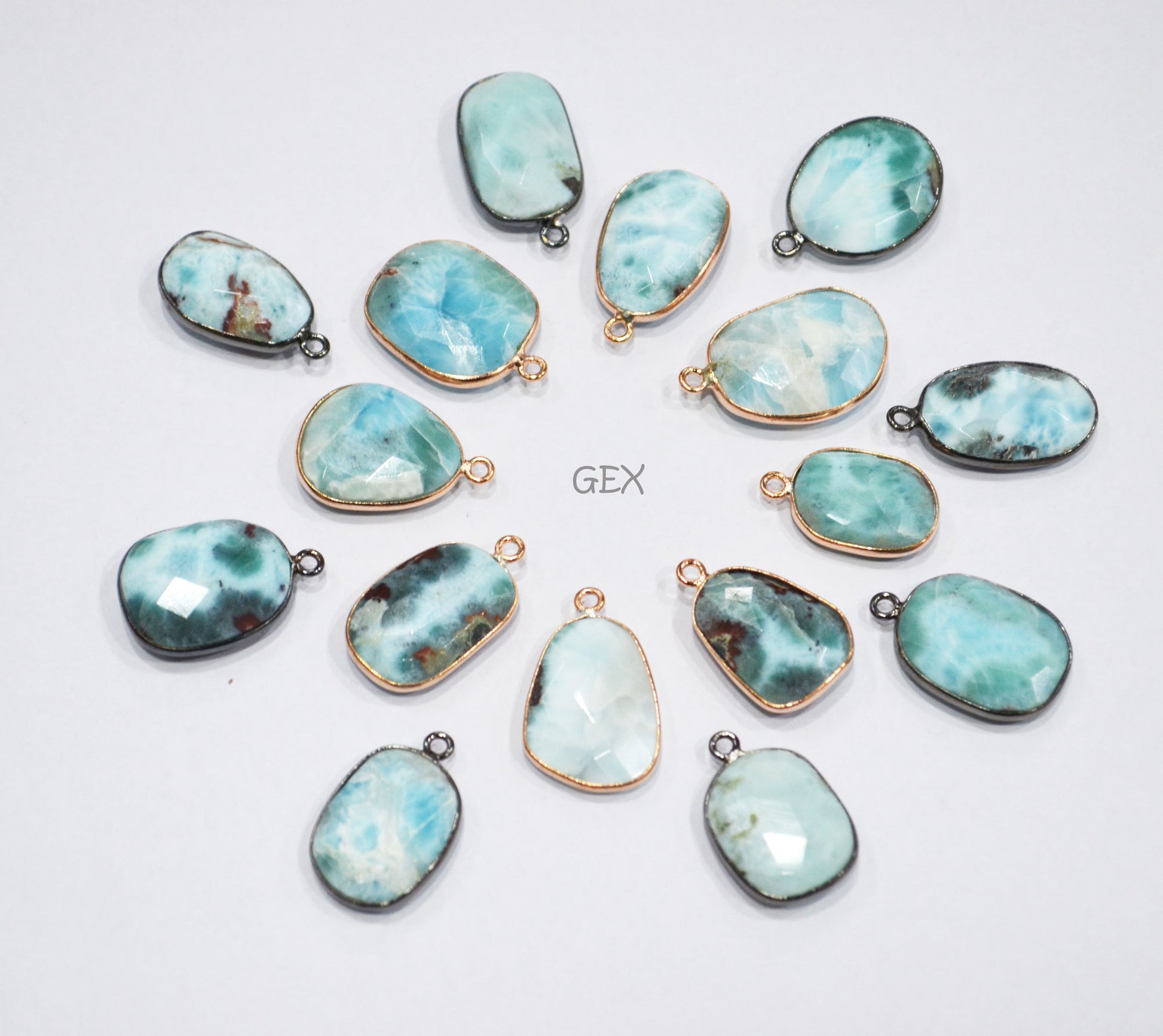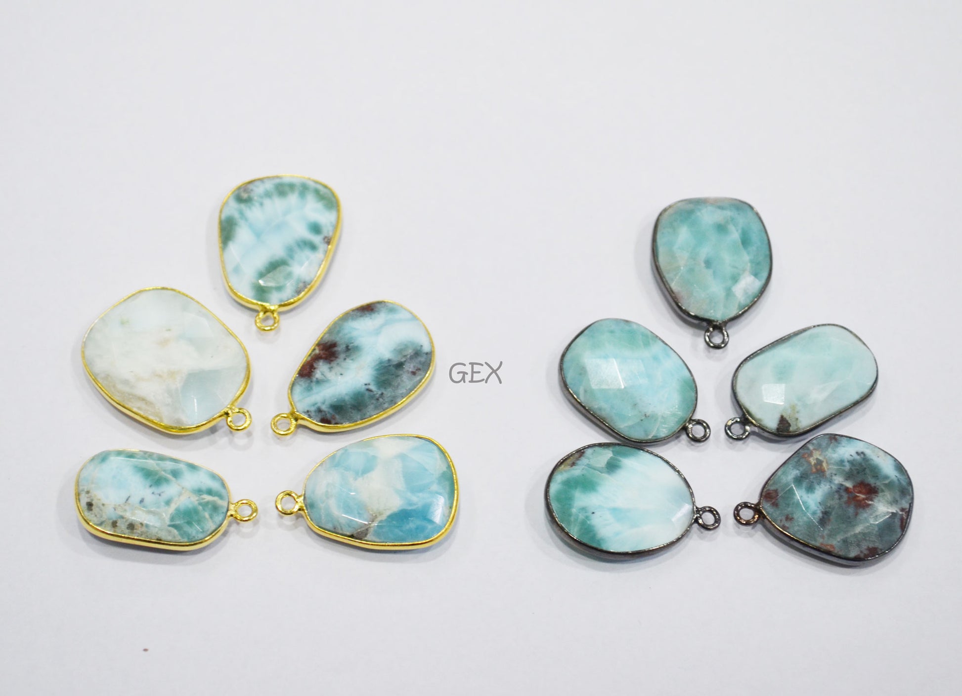 Larimar Faceted Free Form Shape Connector , Larimar Slice Shape Single Bail Bezel Connector , Sold By Piece , 14x17 - 17x23 mm , RB-7151