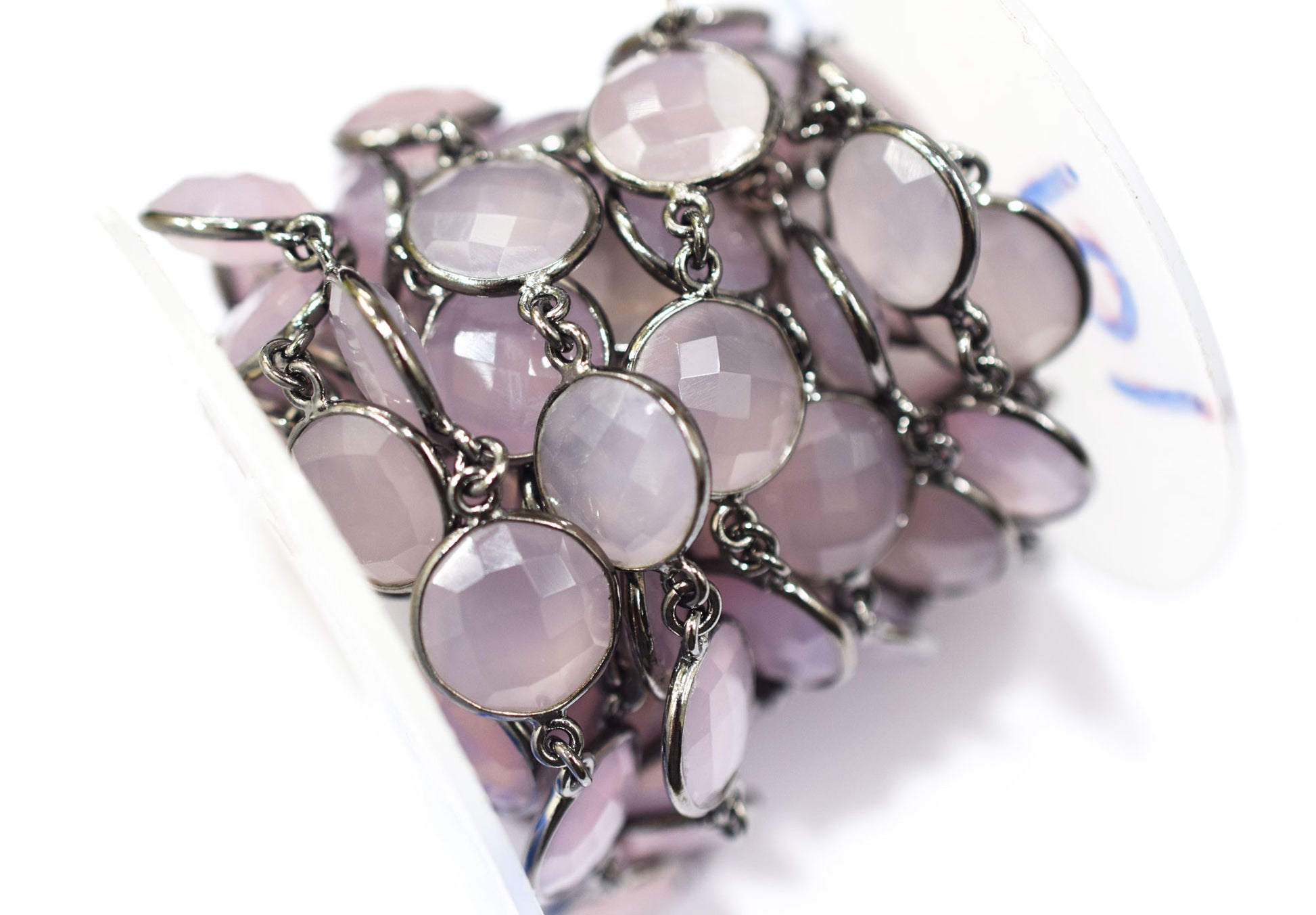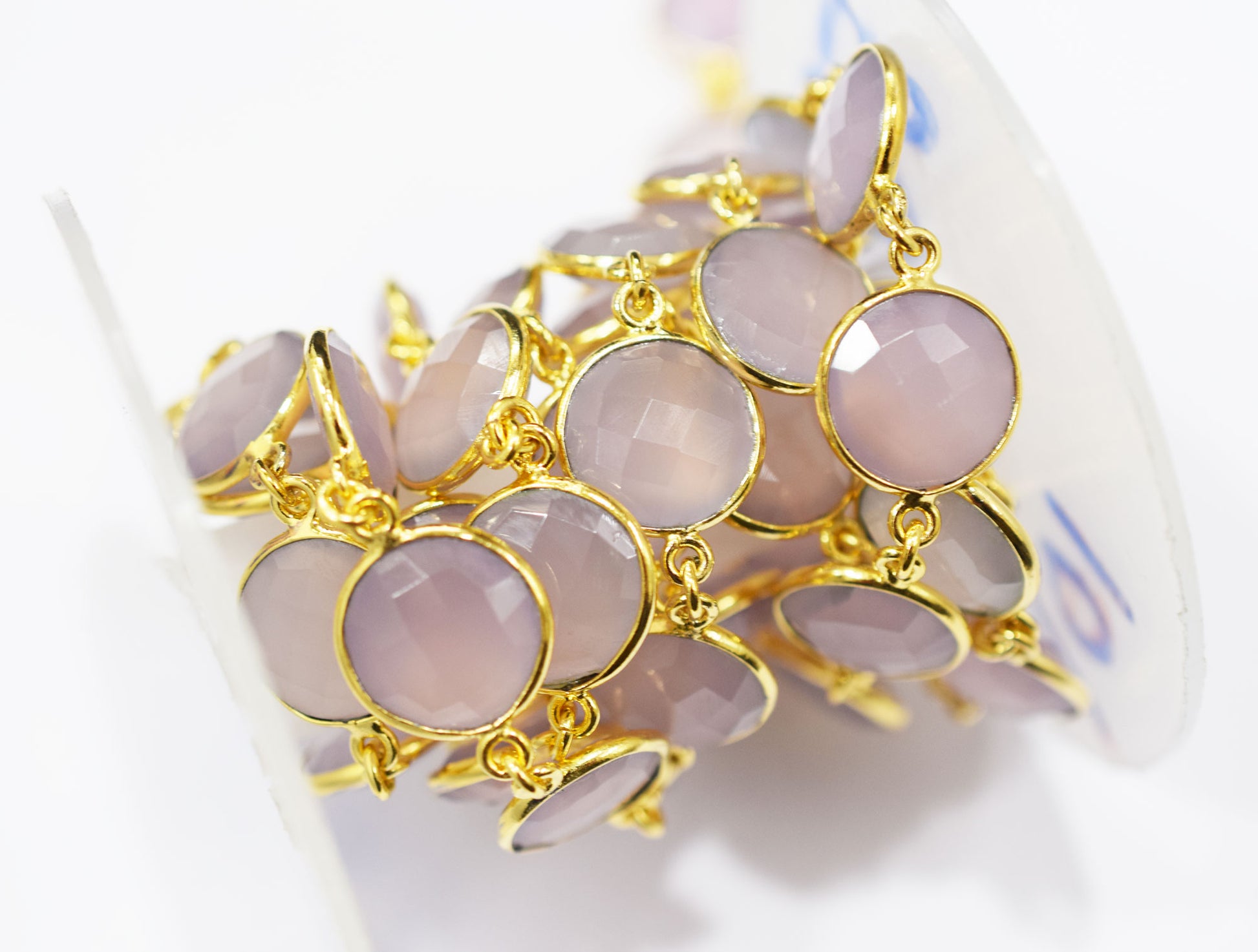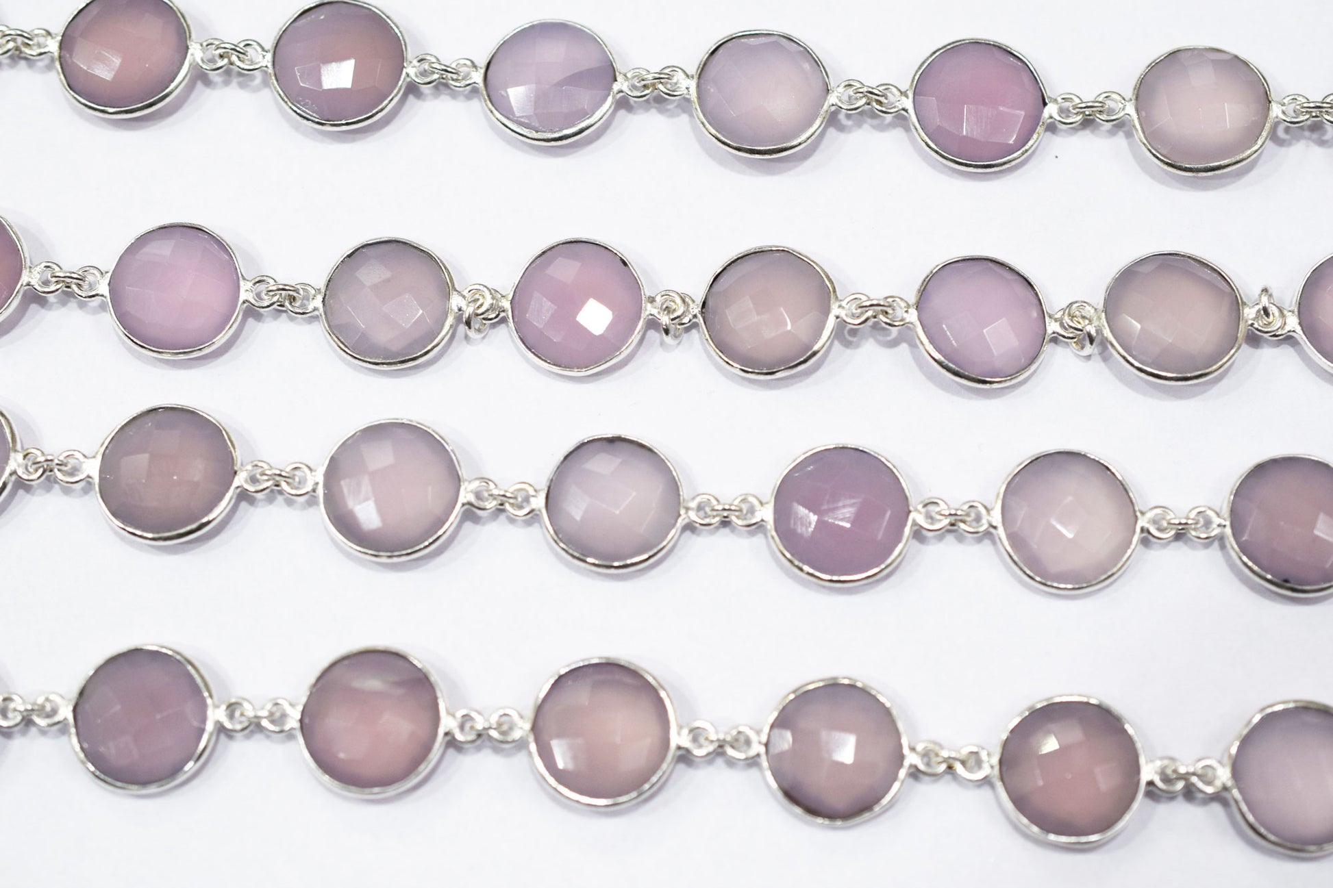 Lavender Chalcedony Faceted Coin Shape Connector Chain , Lavender Chalcedony Coin Shape Bezel Link Chain , 14 - 14.50 mm , RB-6513
