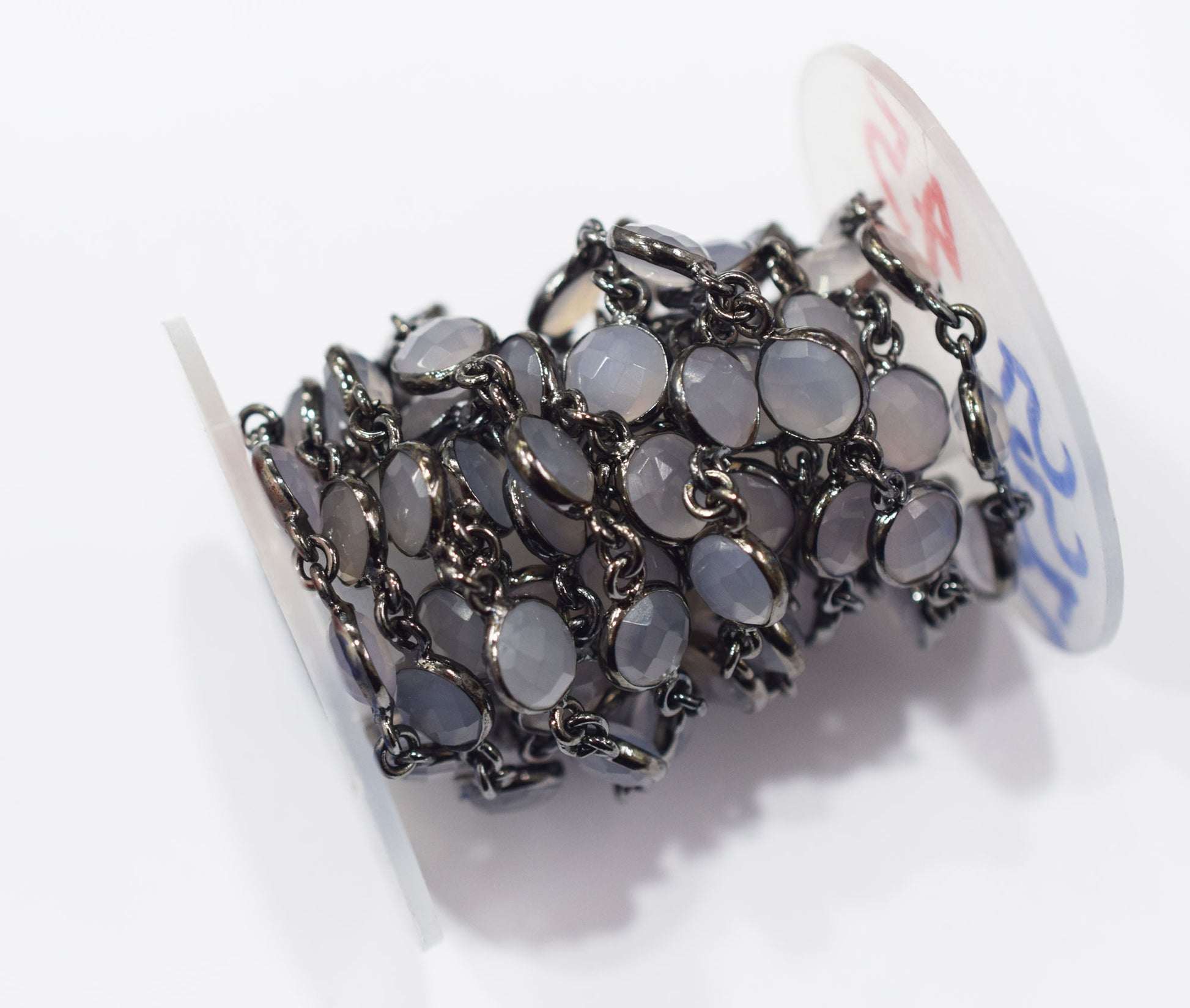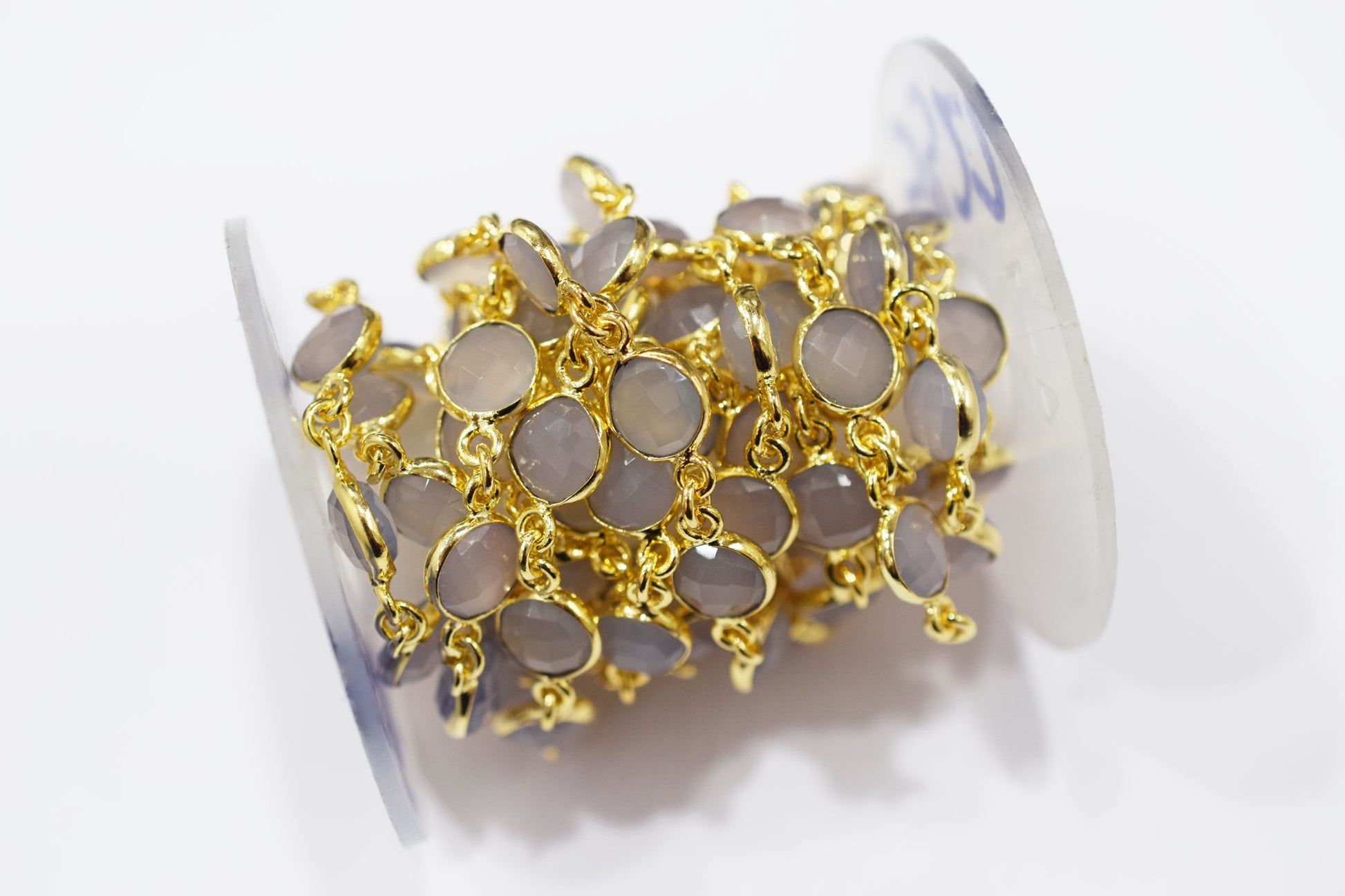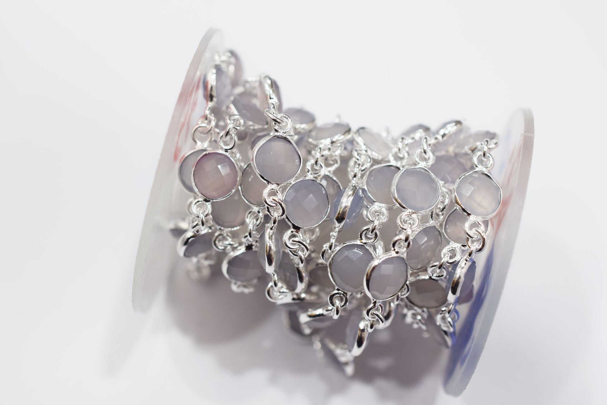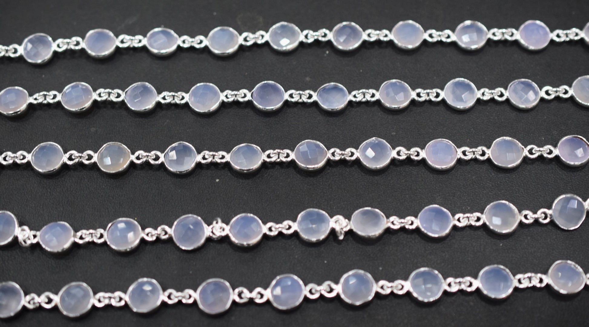 Lavender Chalcedony Faceted Coin Shape Connector Chain , Lavender Chalcedony Coin Shape Bezel Link Chain , 9 mm , RB-6696