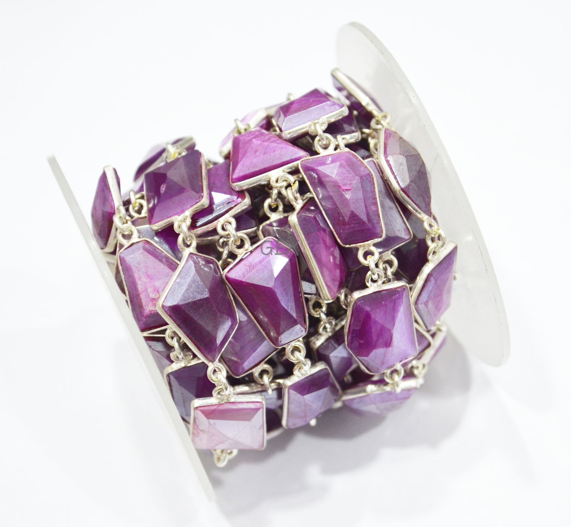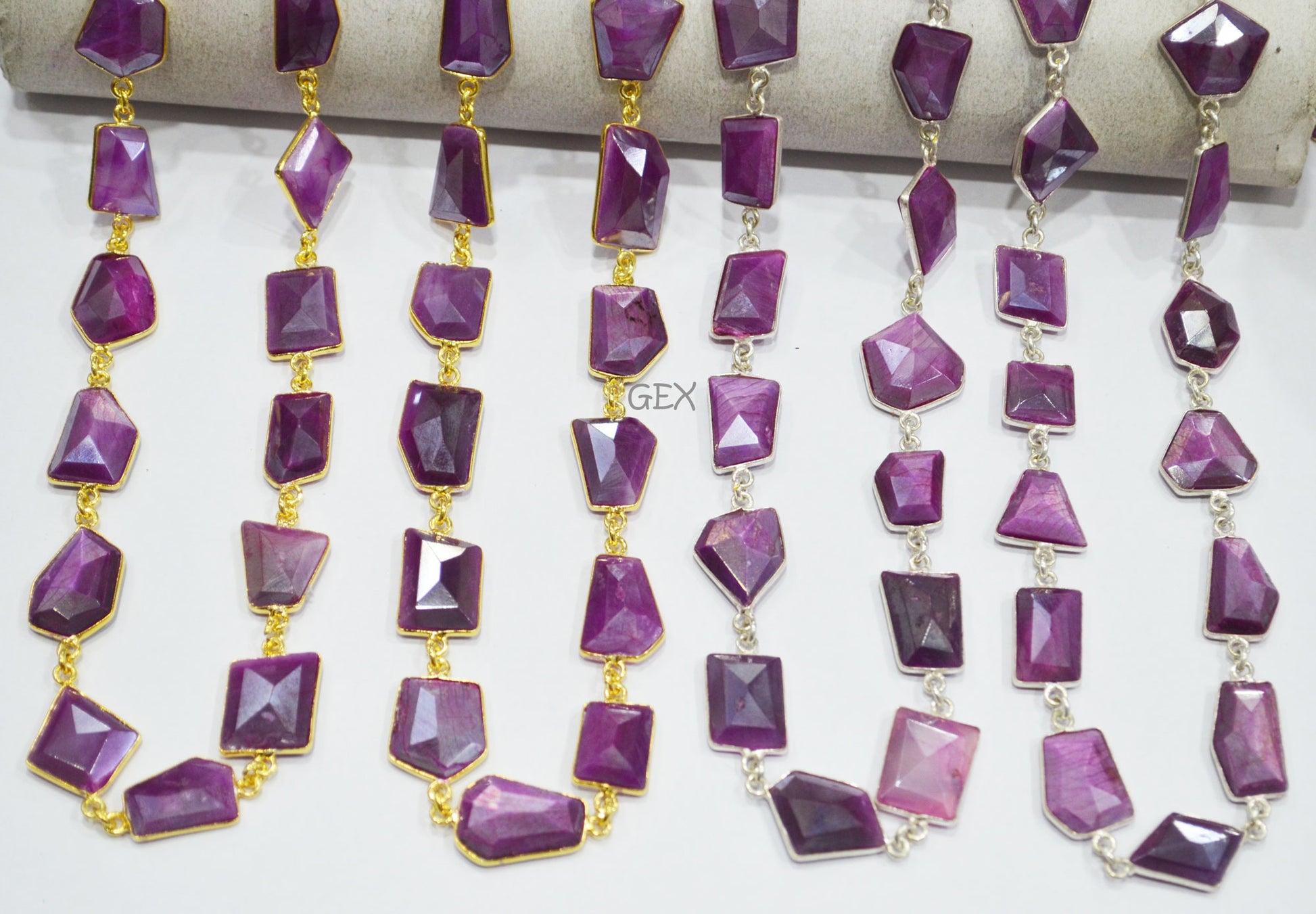 Lavender Colored Moonstone Faceted Fancy Cut Shape Connector Chain , Lavender Colored Moonstone Bezel Link Chain , 11x13 - 15x19 mm , RB-7156