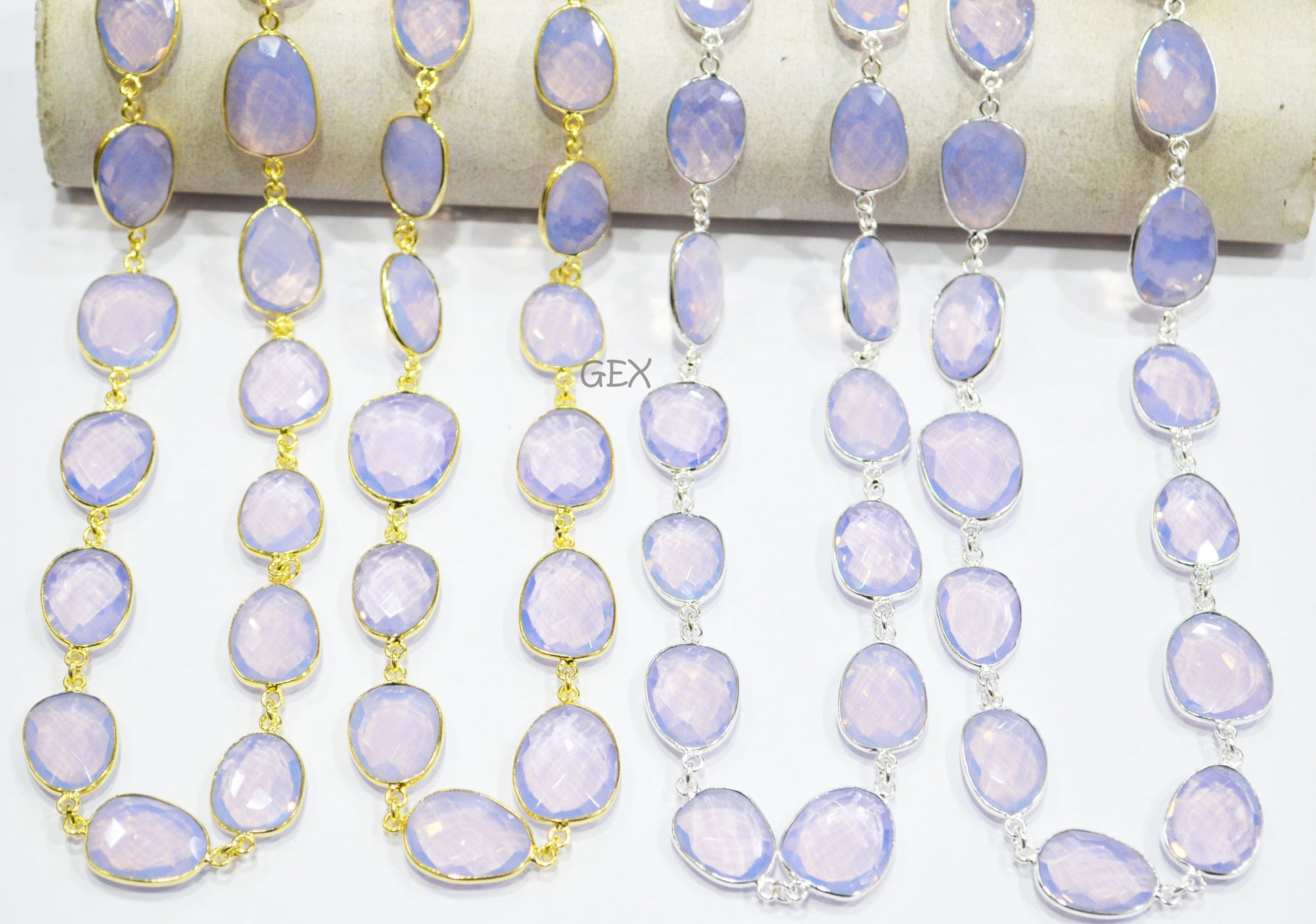 Lavender Hydro Quartz Faceted Free Form Shape Connector Chain , Lavender Hydro Quartz Slice Shape Bezel Link Chain , 13 - 20 mm , RB-7262