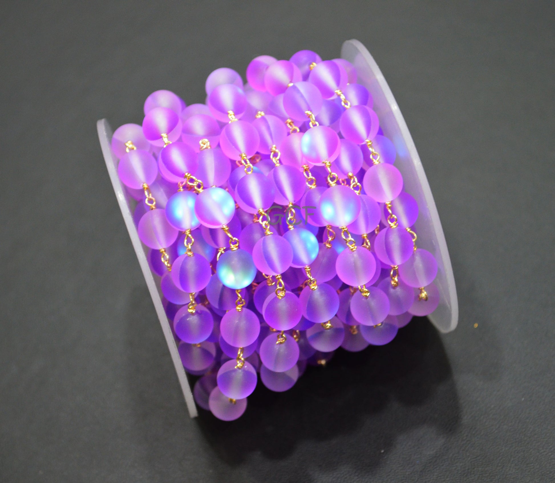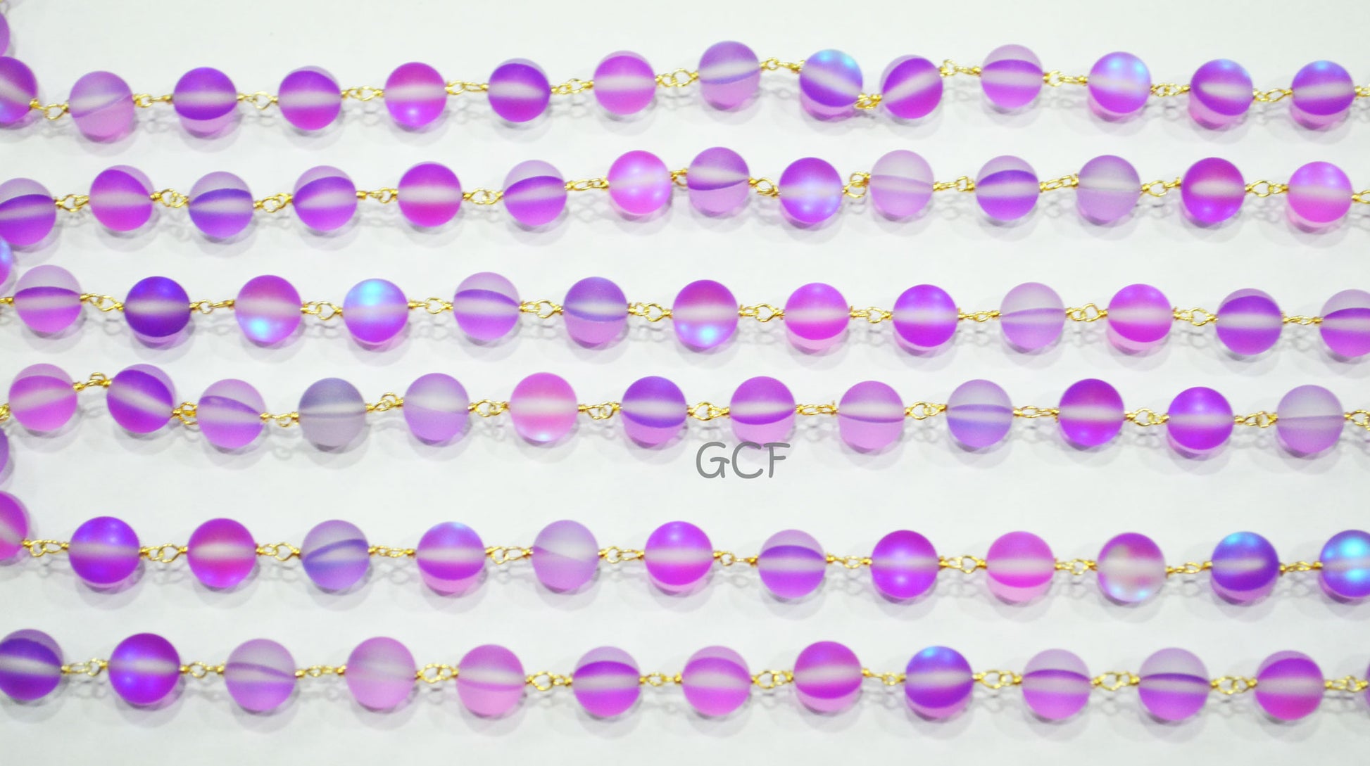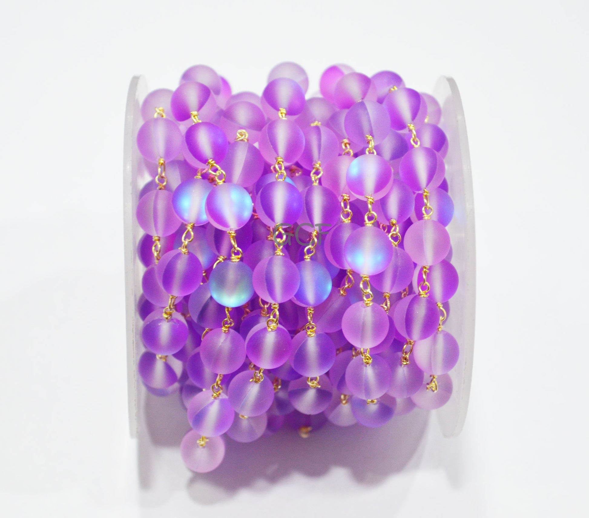 Lavender Moonstone Doublet Hydro Glass Smooth Rosary Chain , Lavender Moonstone Doublet Round Shape Wire Wrapped Chain , 8 mm , RB-7104