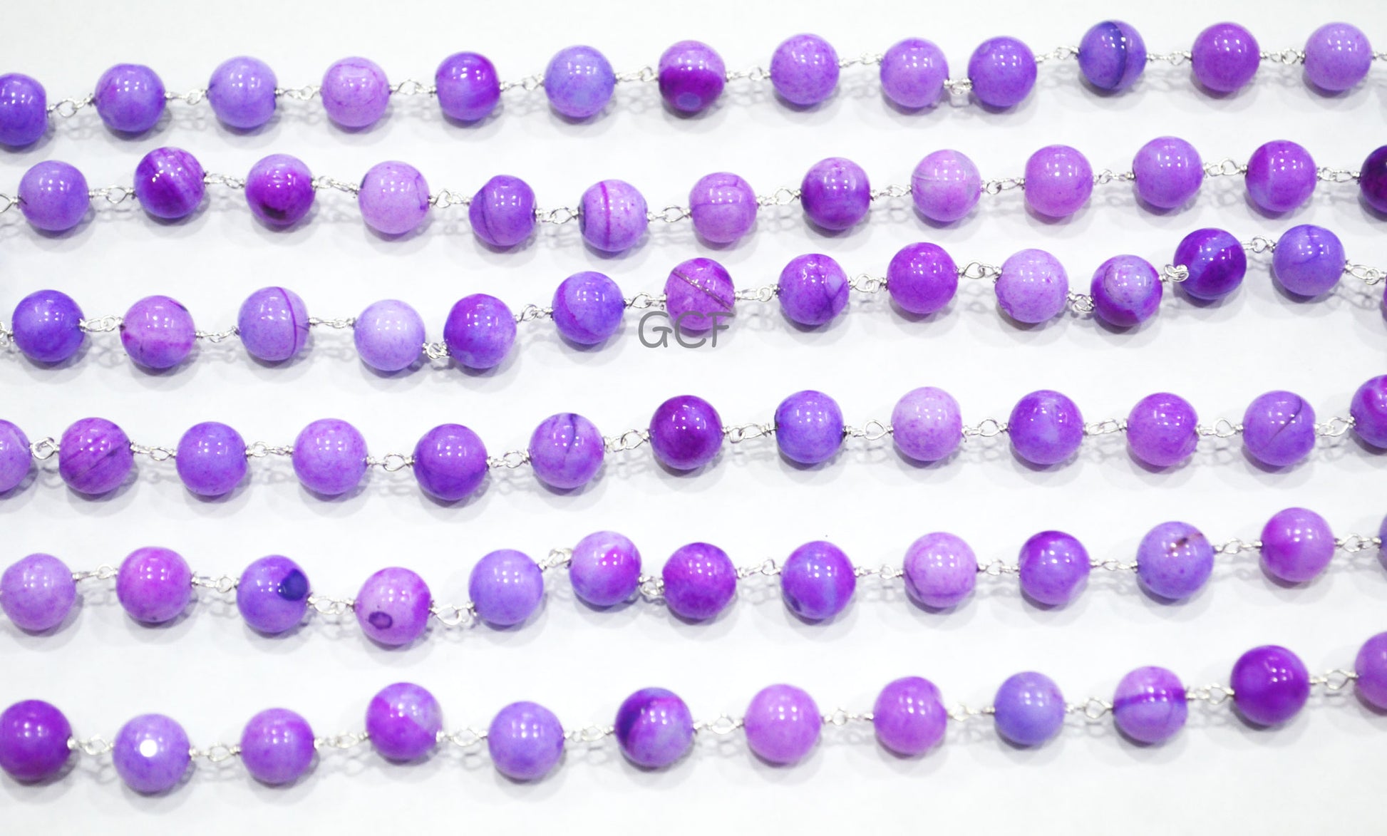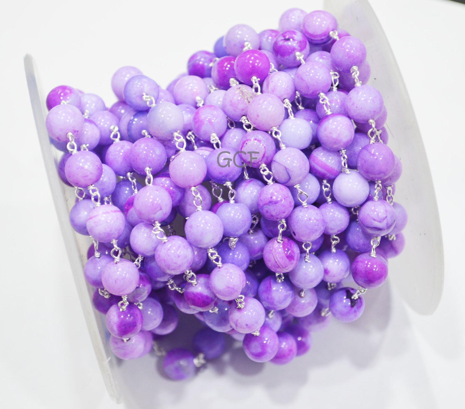 Lavender Opal Smooth Round Shape Rosary Beaded Chain , Lavender Opal Round Shape Wire Wrapped Chain , 8 - 9 mm , 6760