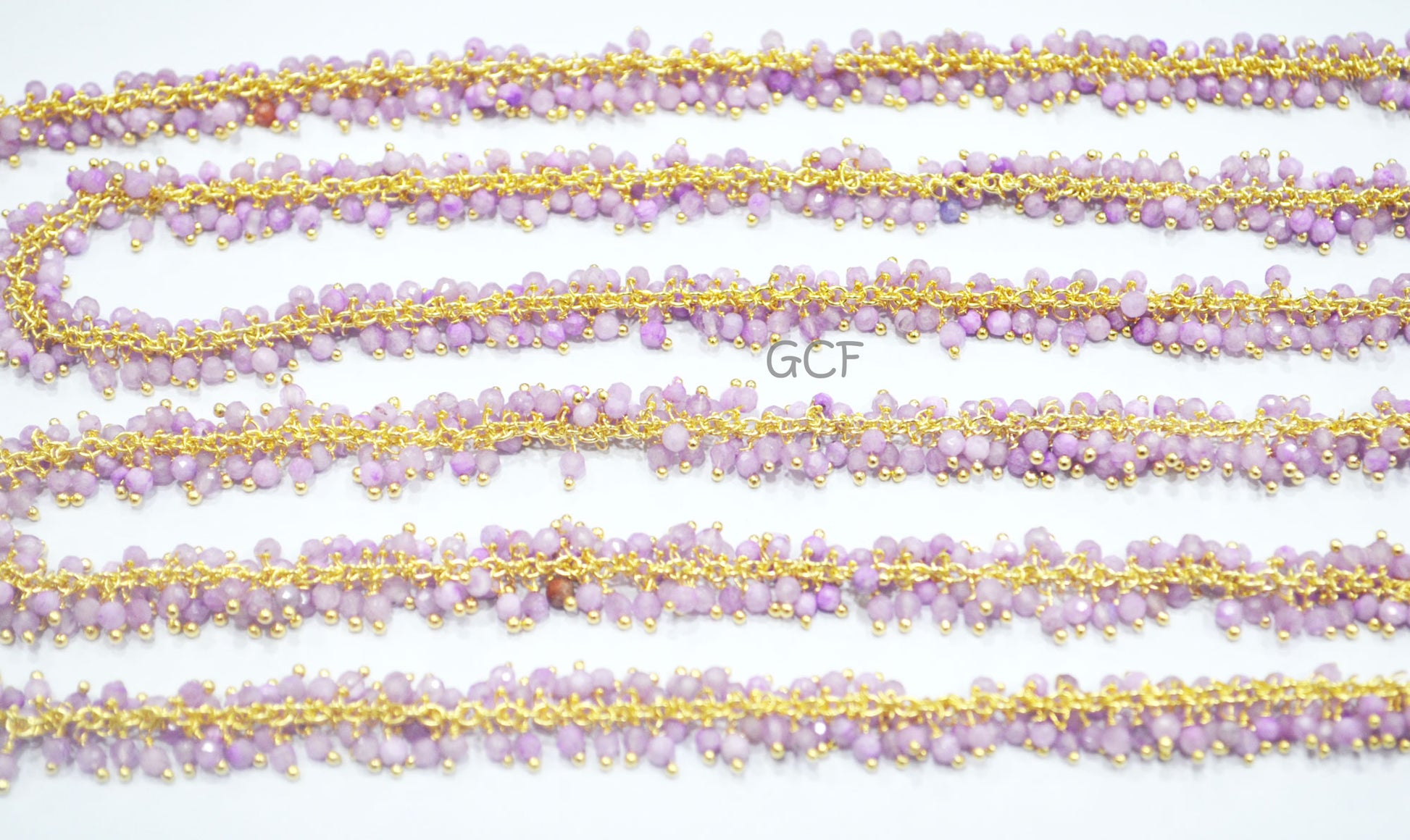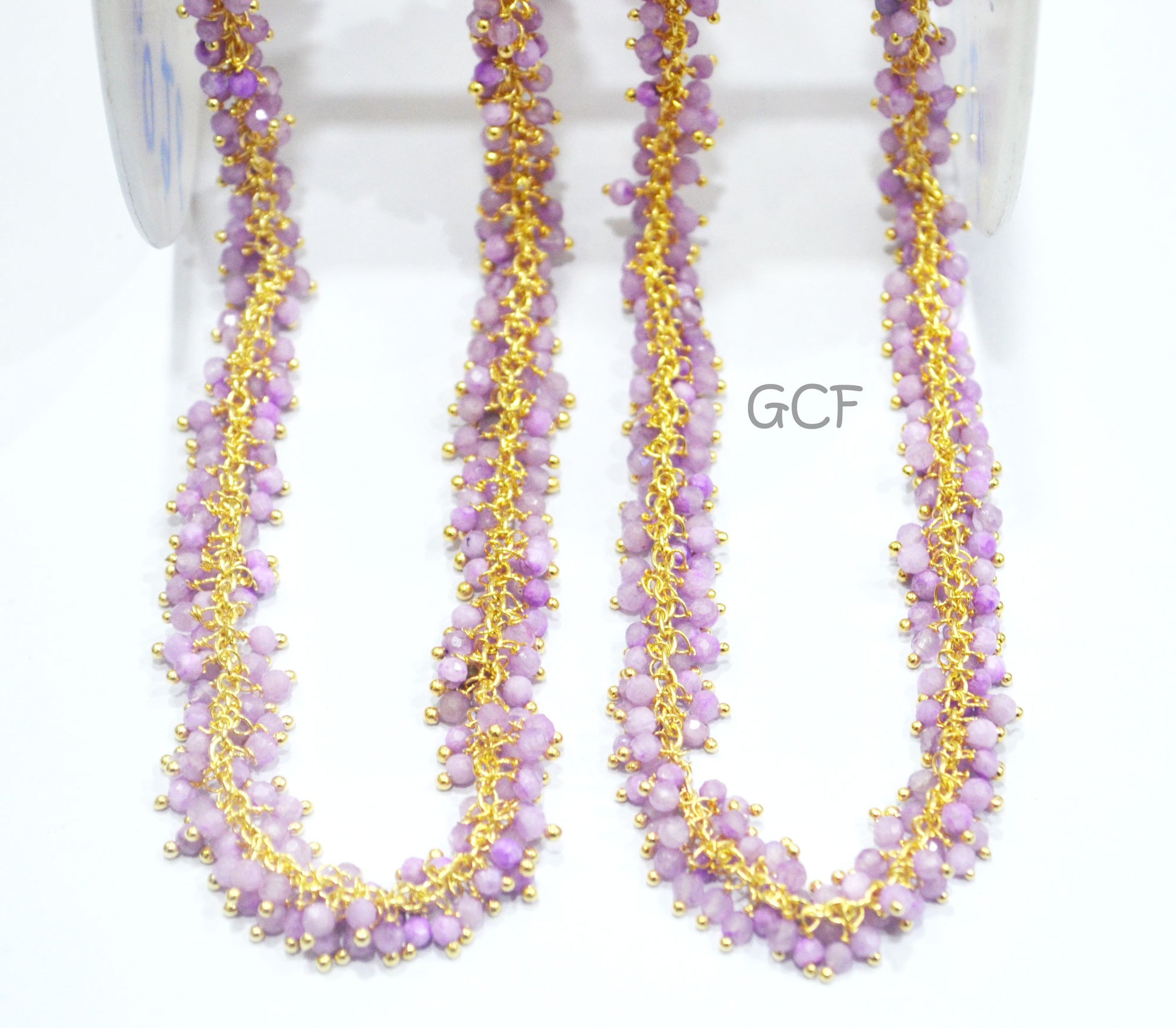 Lavender Rainbow Moonstone Faceted Round Shape Grape Chain ,Mystic Coated Lavender Moonstone Dangling Chain , 2-2.5 mm , 6926