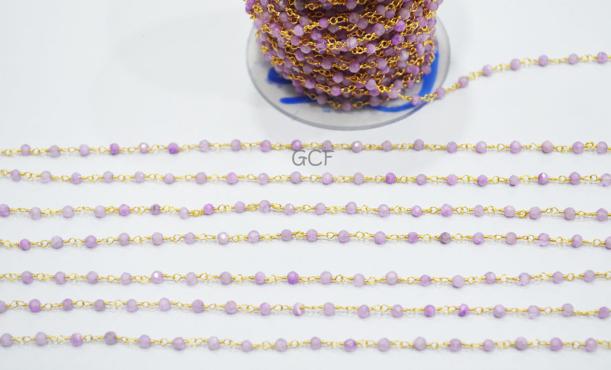 Lavender Rainbow Moonstone Faceted Round Shape Rosary Chain ,Mystic Coated Lavender Moonstone Wire Wrapped ChainΒ , 2 mm ,6921