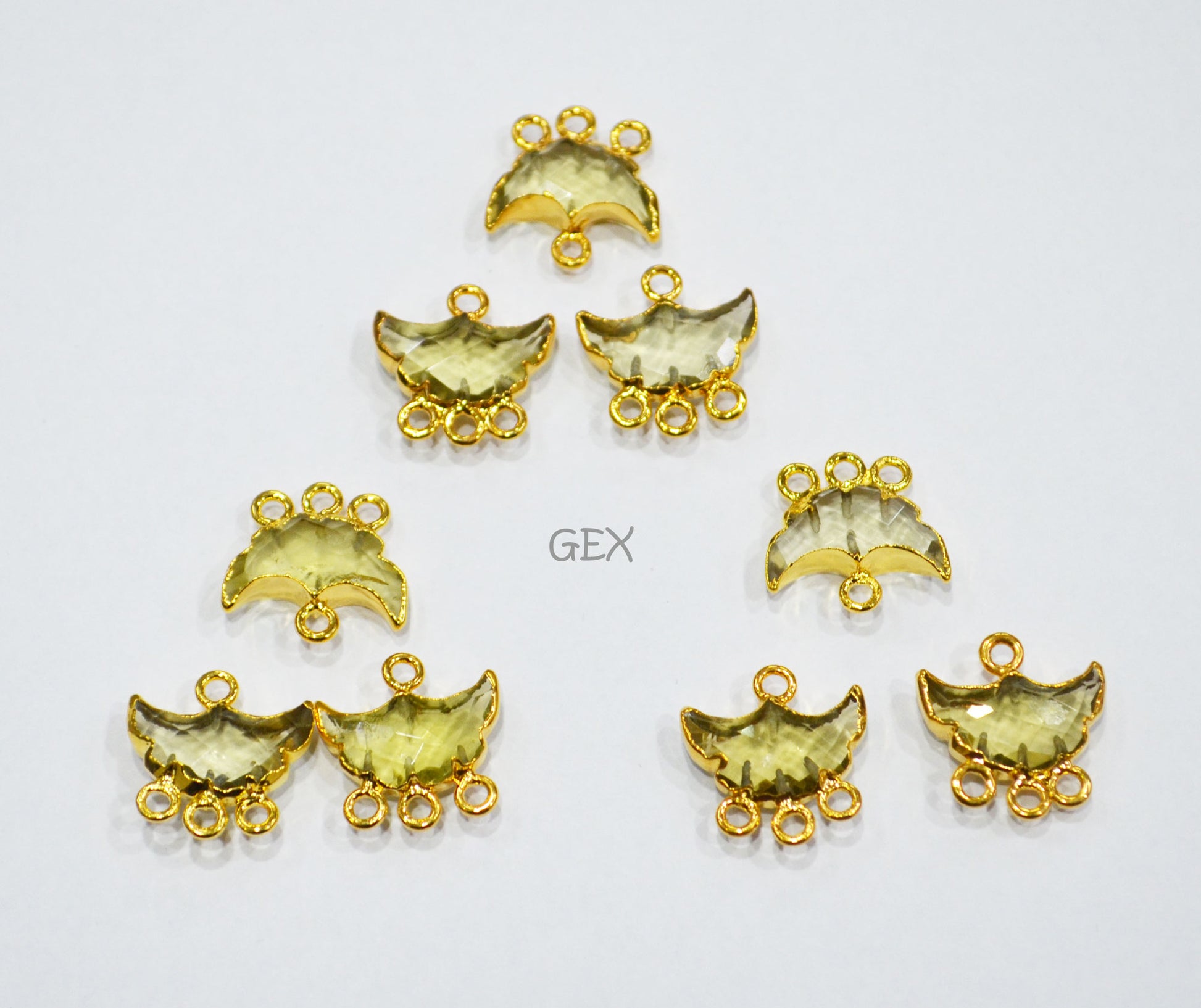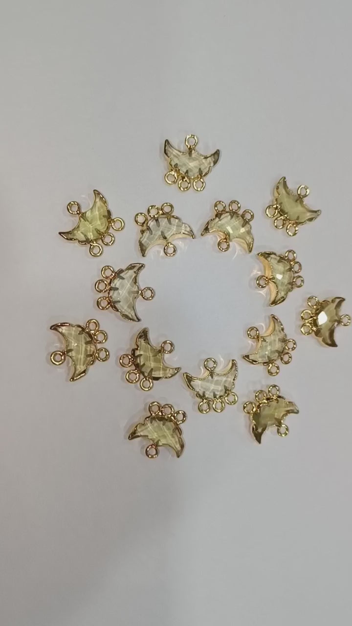 Lemon Quartz Electroplated Half Moon Shape Connector , Lemon Quartz Four Bail Faceted Connector Charm , Sold By Piece , 15 - 16 mm , 31905