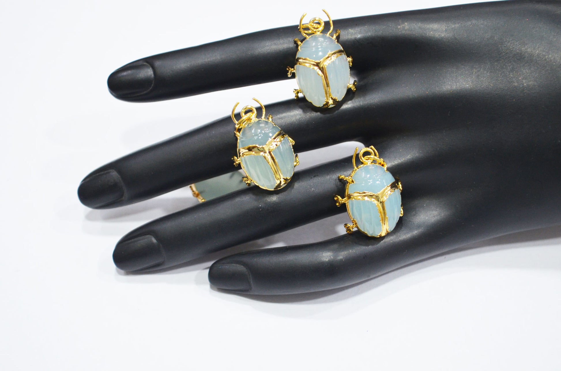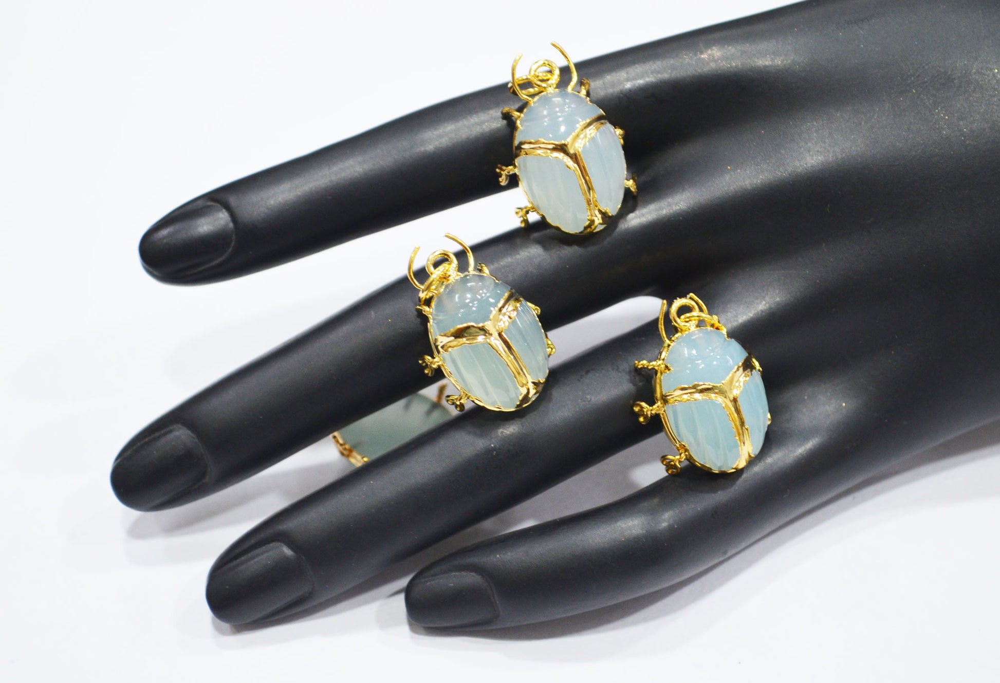 Light Color Aqua Chalcedony Electroplated Beetle Pendant , Egyptian Scarab Light Color Aqua Chalcedony Charm , Sold By Piece , Use To Make Jewelry , 2 - 2.25 cm , 31347D