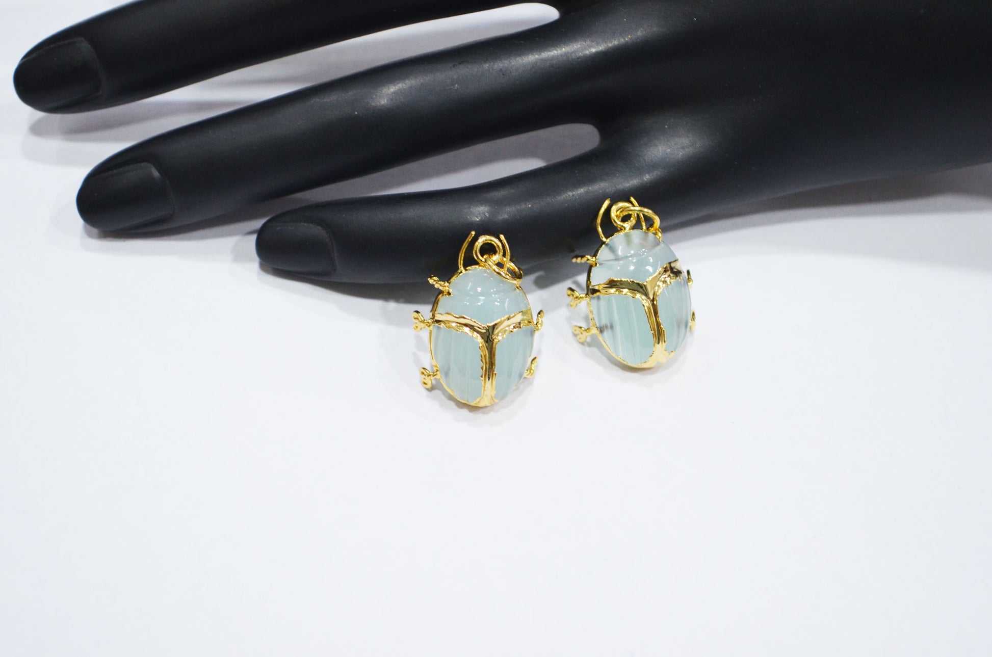 Light Color Aqua Chalcedony Electroplated Beetle Pendant , Egyptian Scarab Aqua Charm , Sold By Piece , Use To Make Jewelry , 2 - 2.25 cm , 31347D
