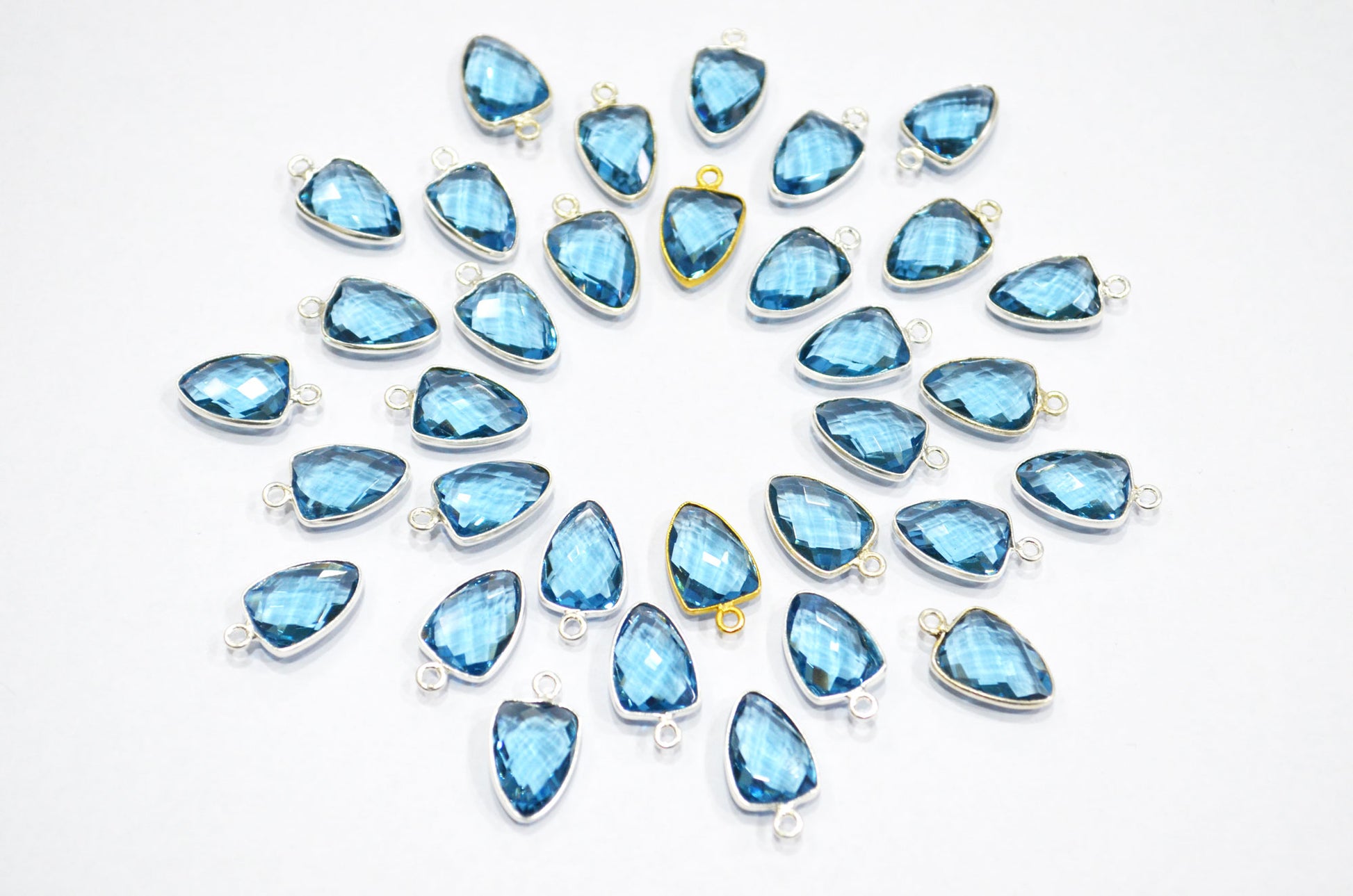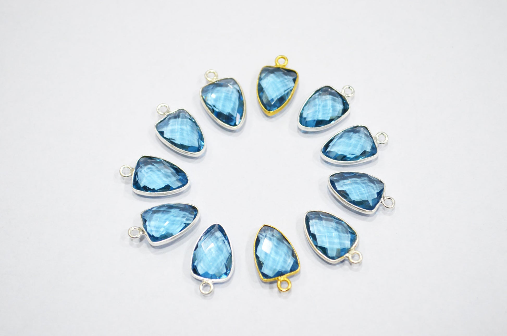 London Blue Color Hydro Glass Trillion Shape Connector , London Blue Color Hydro Glass Faceted Single Bail Bezel Connector , Sold By Piece , 10x13 mm , RB-5885A