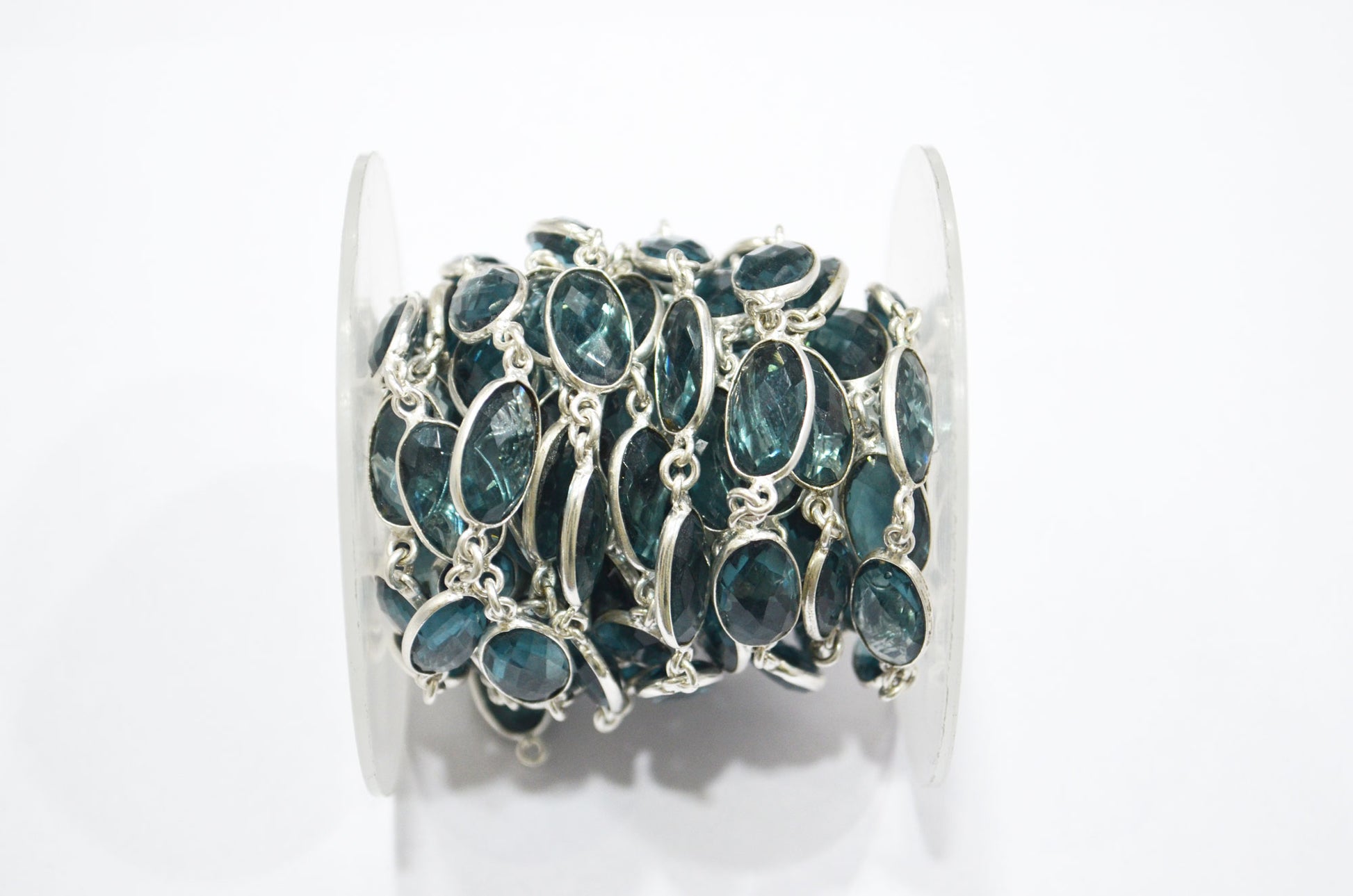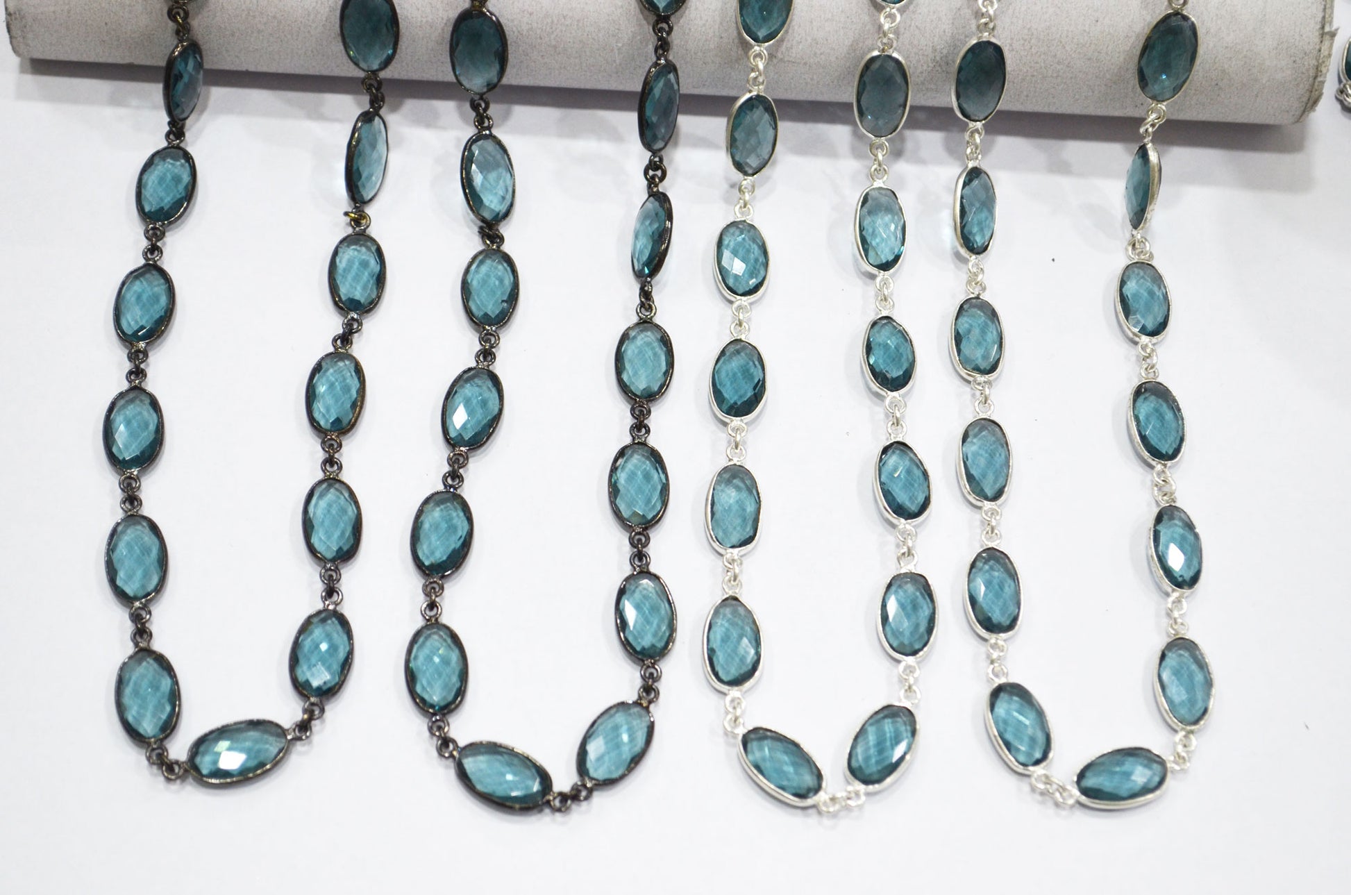 London Blue Hydro Quartz Faceted Oval Shape Connector Chain , London Blue Hydro Quartz Bezel Link Chain , 9x13 mm , RB-5703