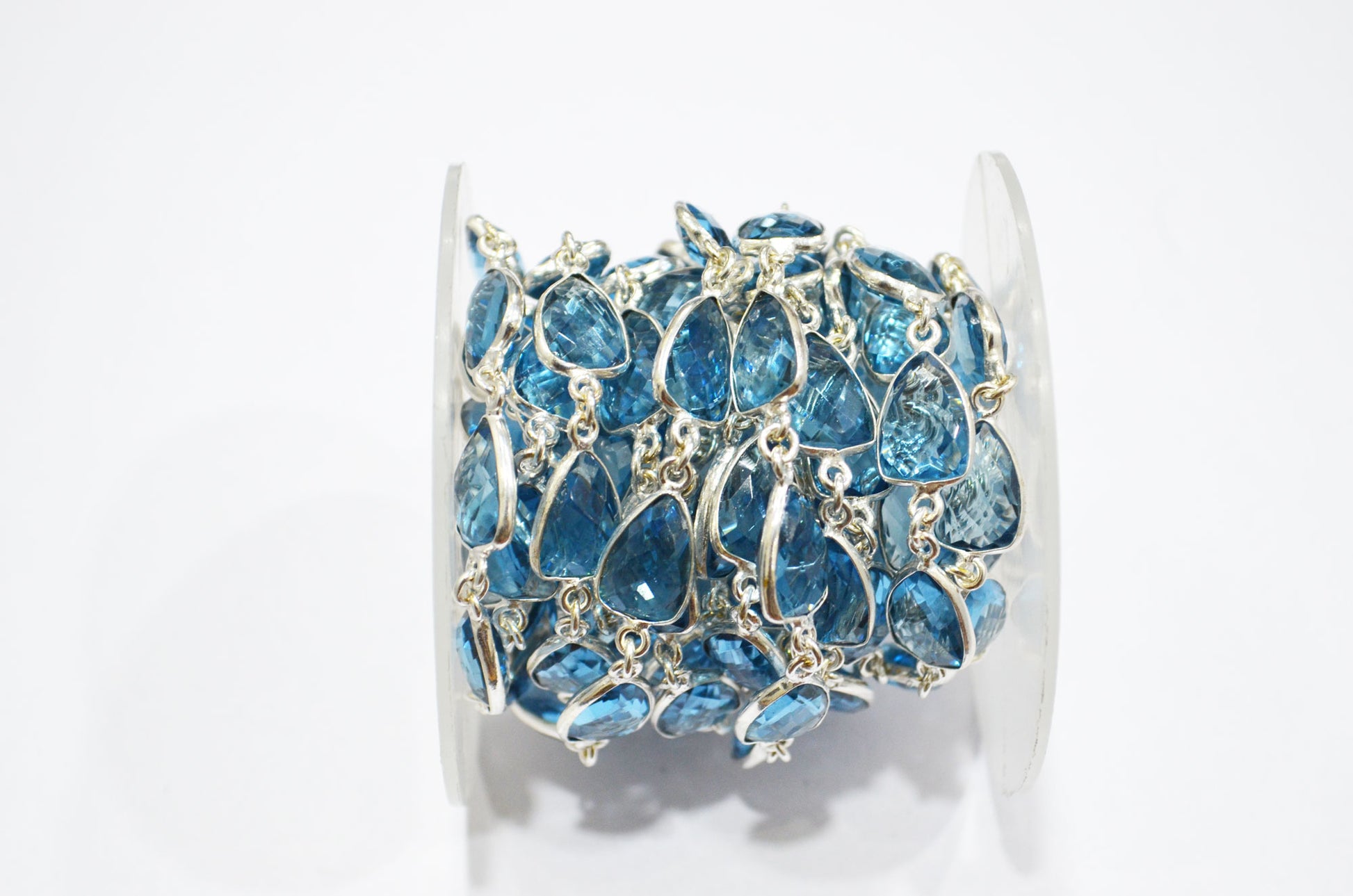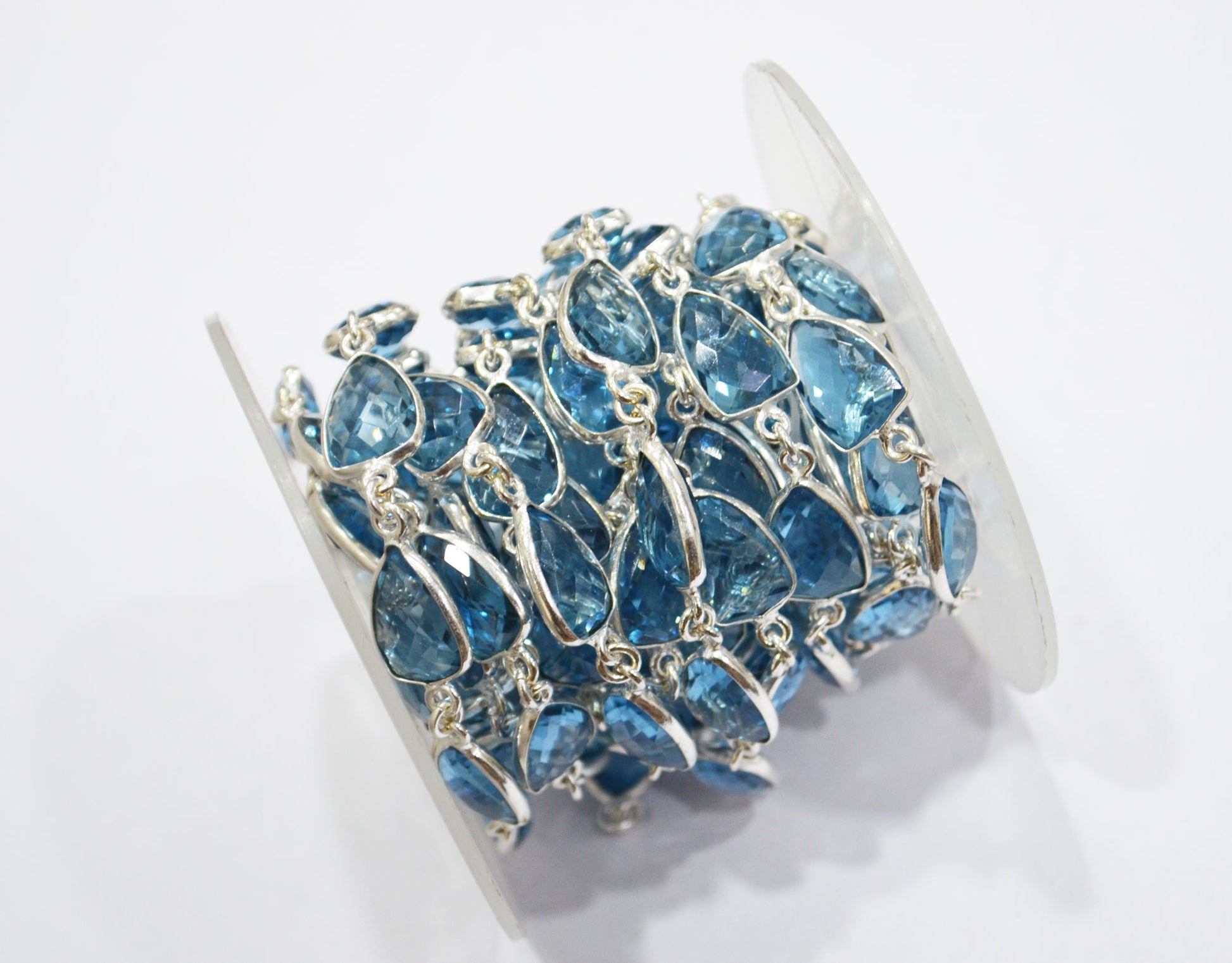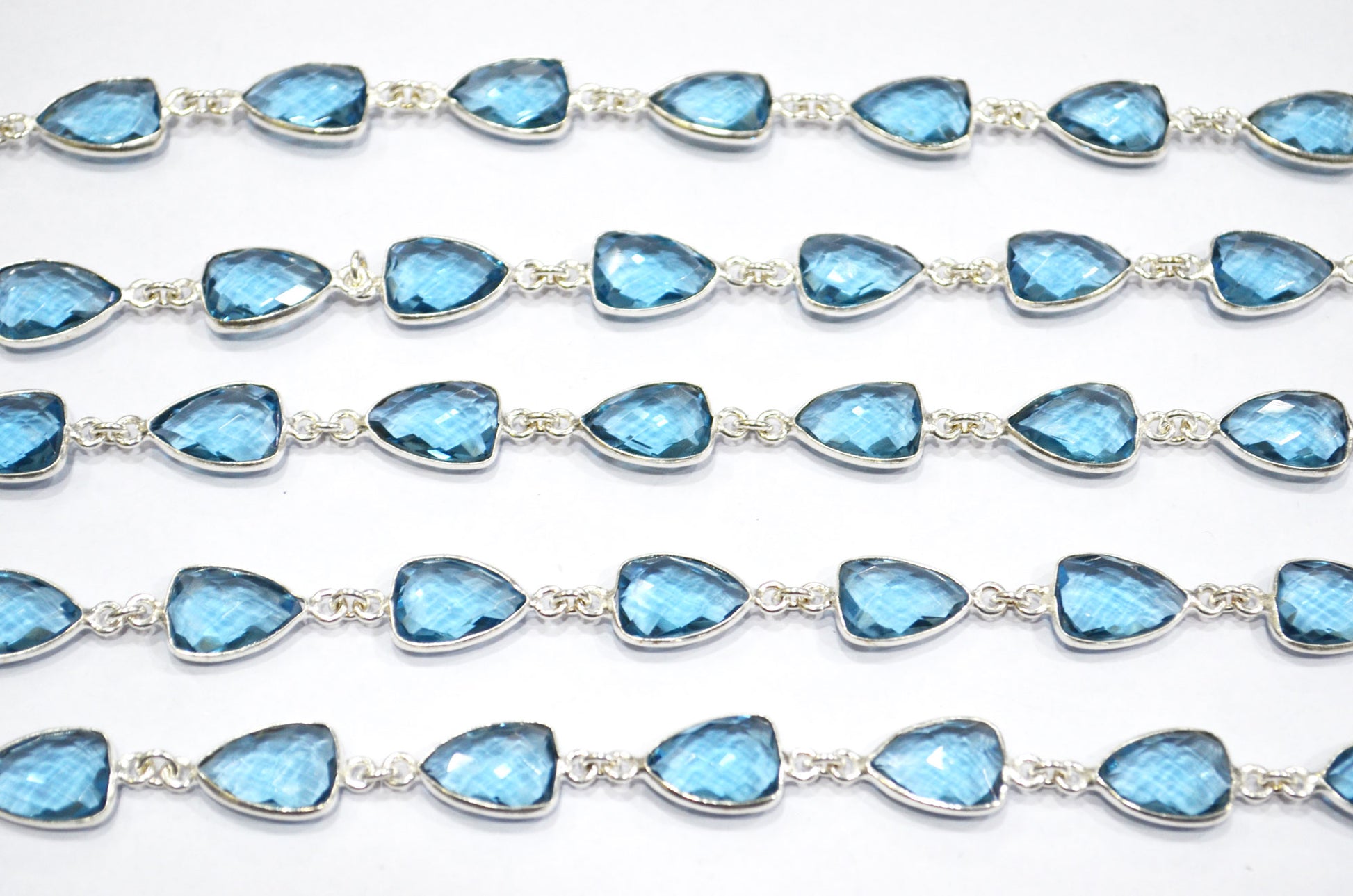London Blue Hydro Quartz Faceted Trillion Shape Connector Chain , London Blue Hydro Quartz Bezel Link Chain , 10x13 mm , RB-5885