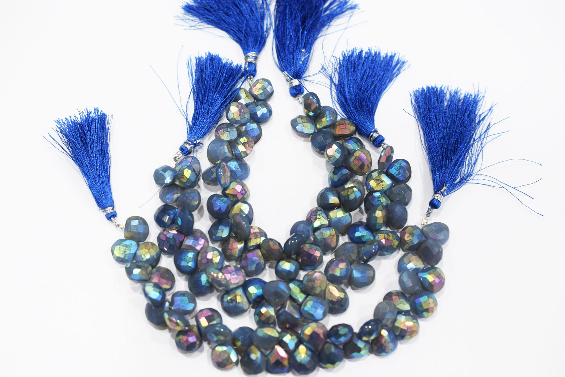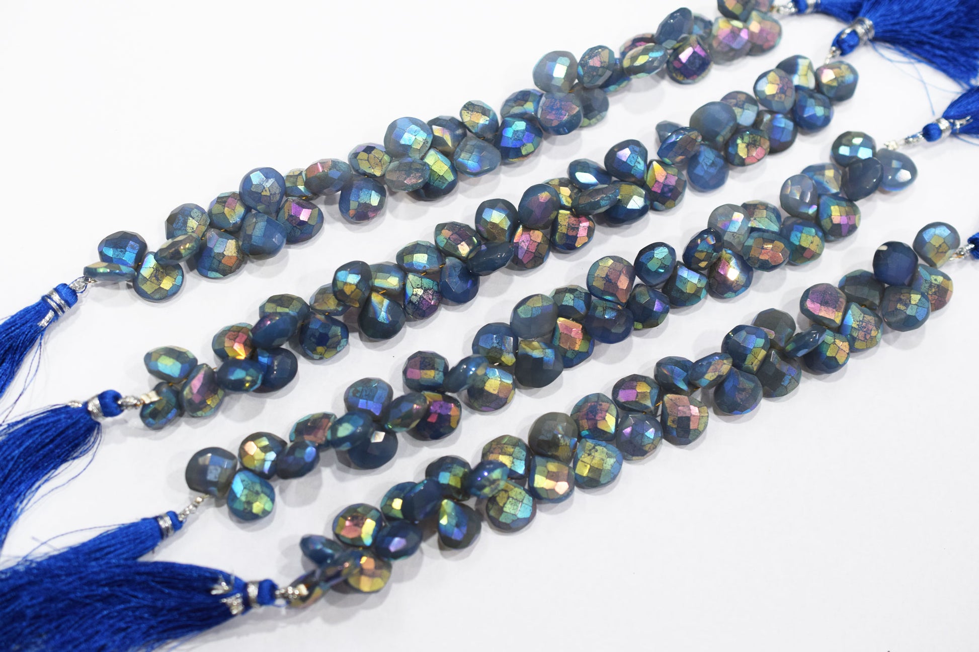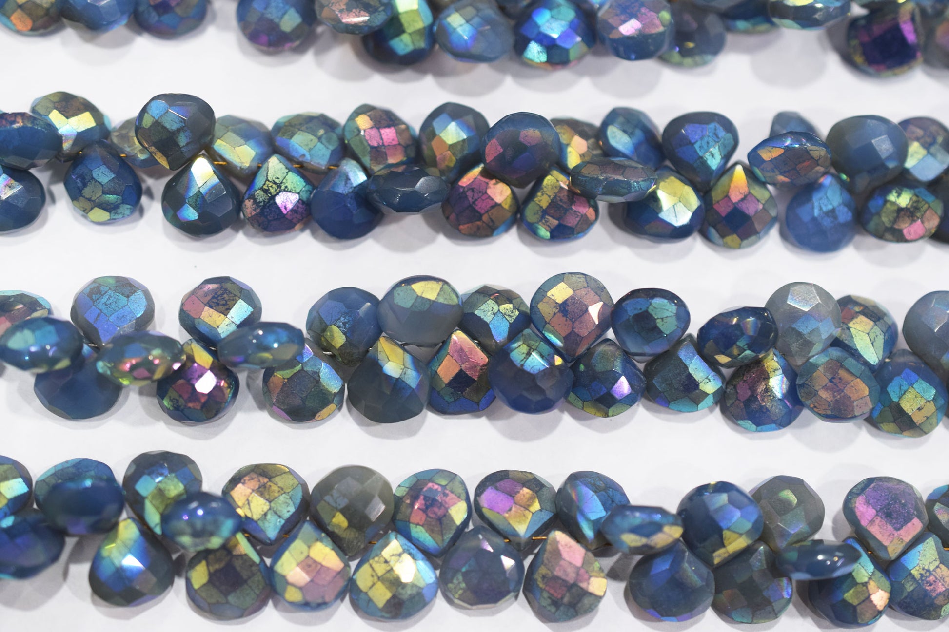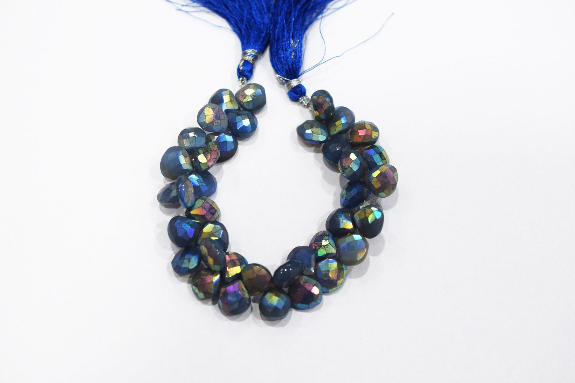 Mystic Metallic Coated Blue Chalcedony Heart Shape Beads , Blue Chalcedony Faceted Briolettes , Sold By Strand , 10 - 11 mm , 7" , 20393